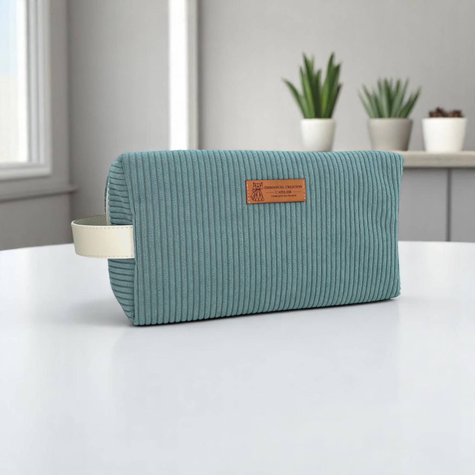 Son design à la fois chic et intemporel, associé à un velours côtelé au toucher doux, en fait un accessoire unisexe aussi beau que fonctionnel. Elle accueille facilement l’ensemble de vos essentiels de toilette et de soin.