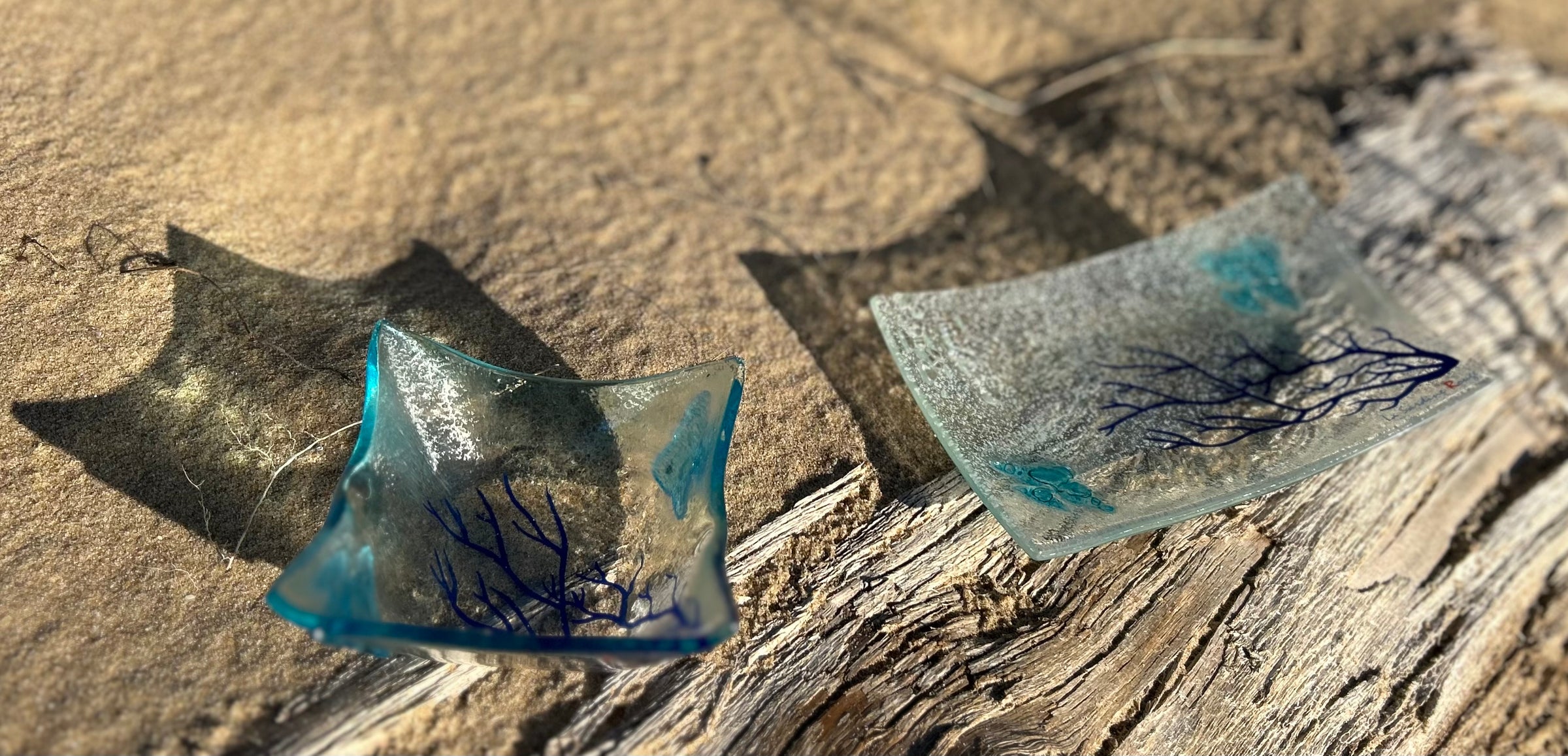 Réalisées selon la technique du verre de fusion, ces coupelles naissent de la superposition de verre coloré fondu au four, puis sont mises en forme lors d'une seconde cuisson. Les reliefs, les textures et les variations de couleur rendent chaque pièce véritablement unique.