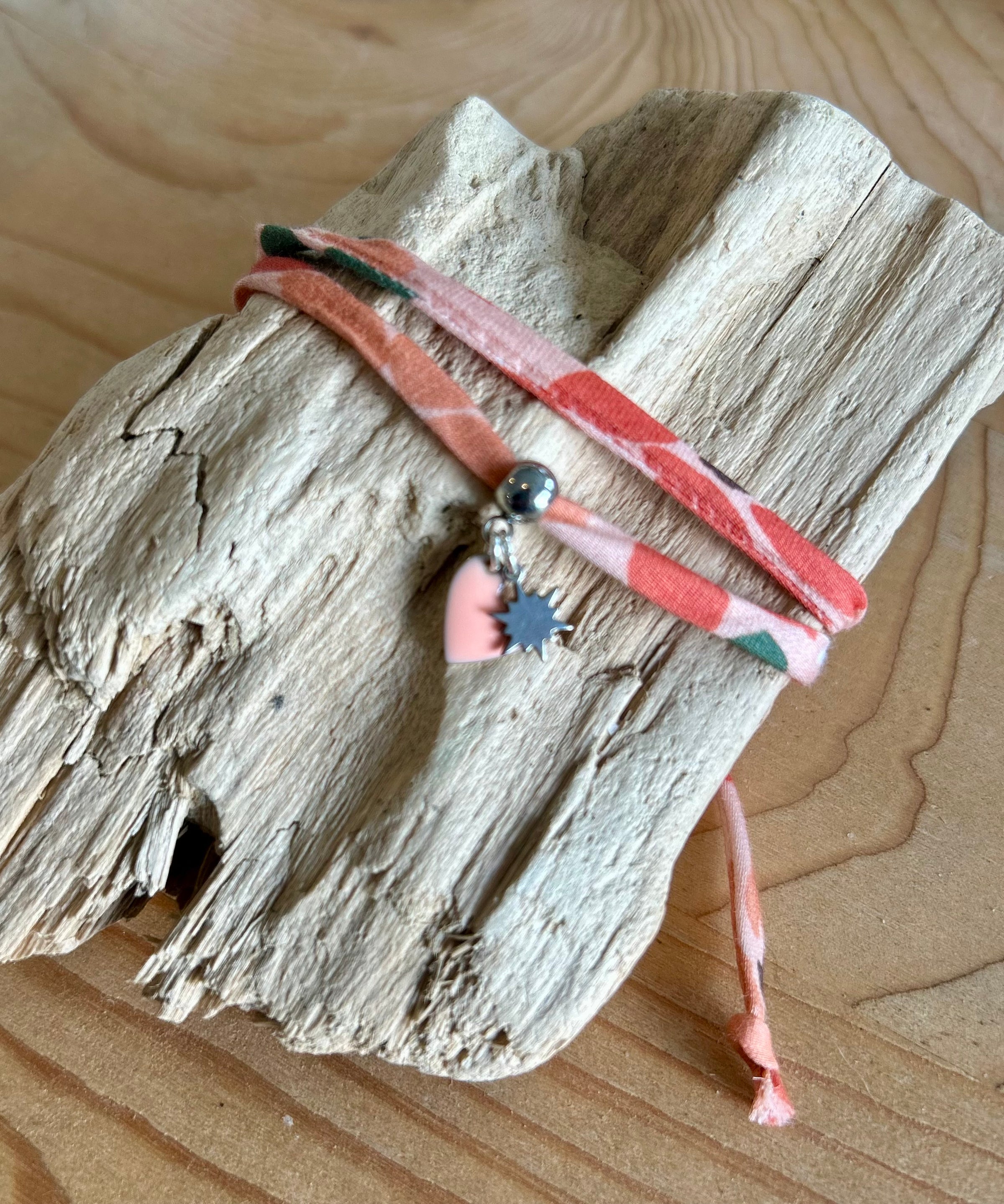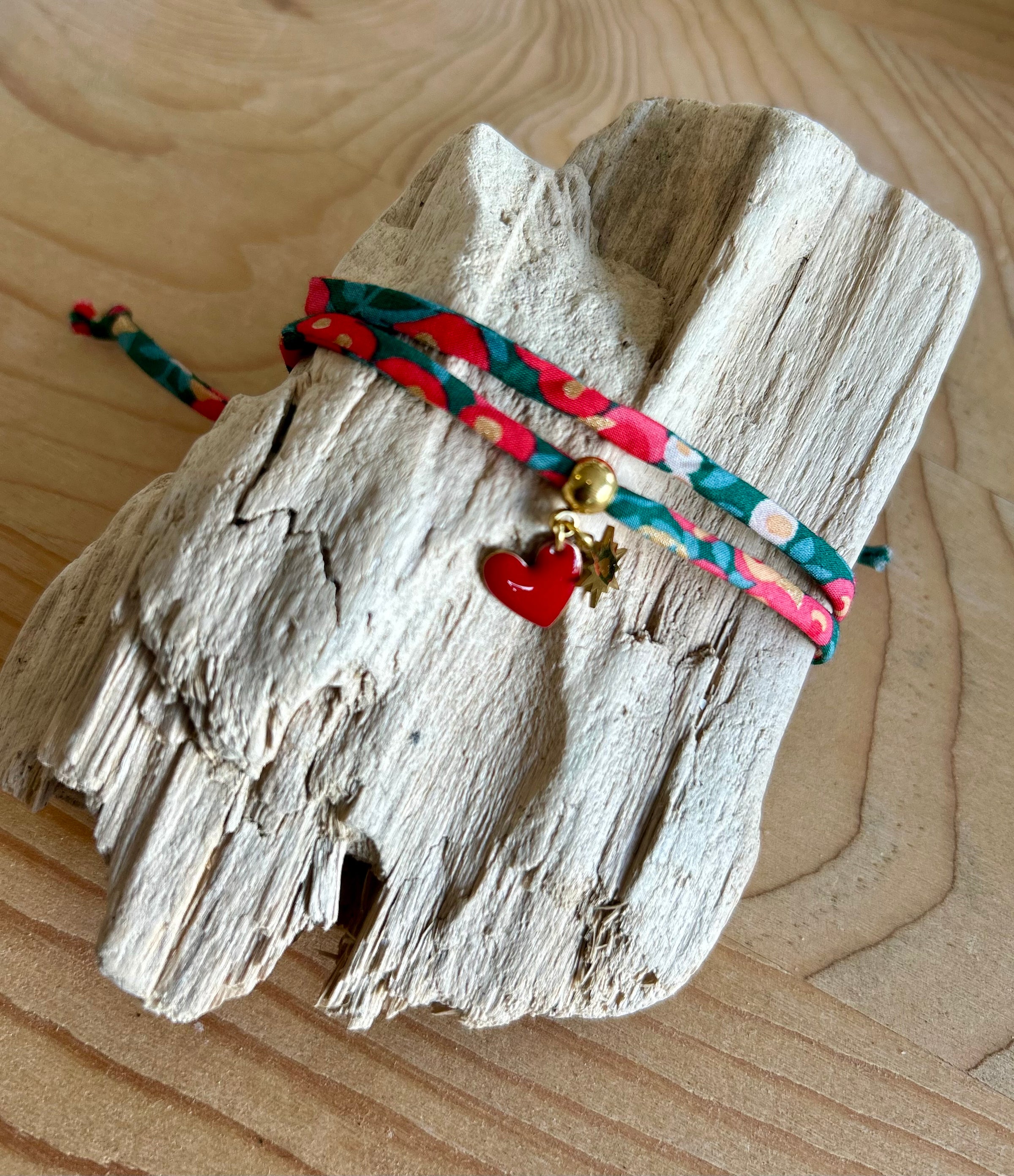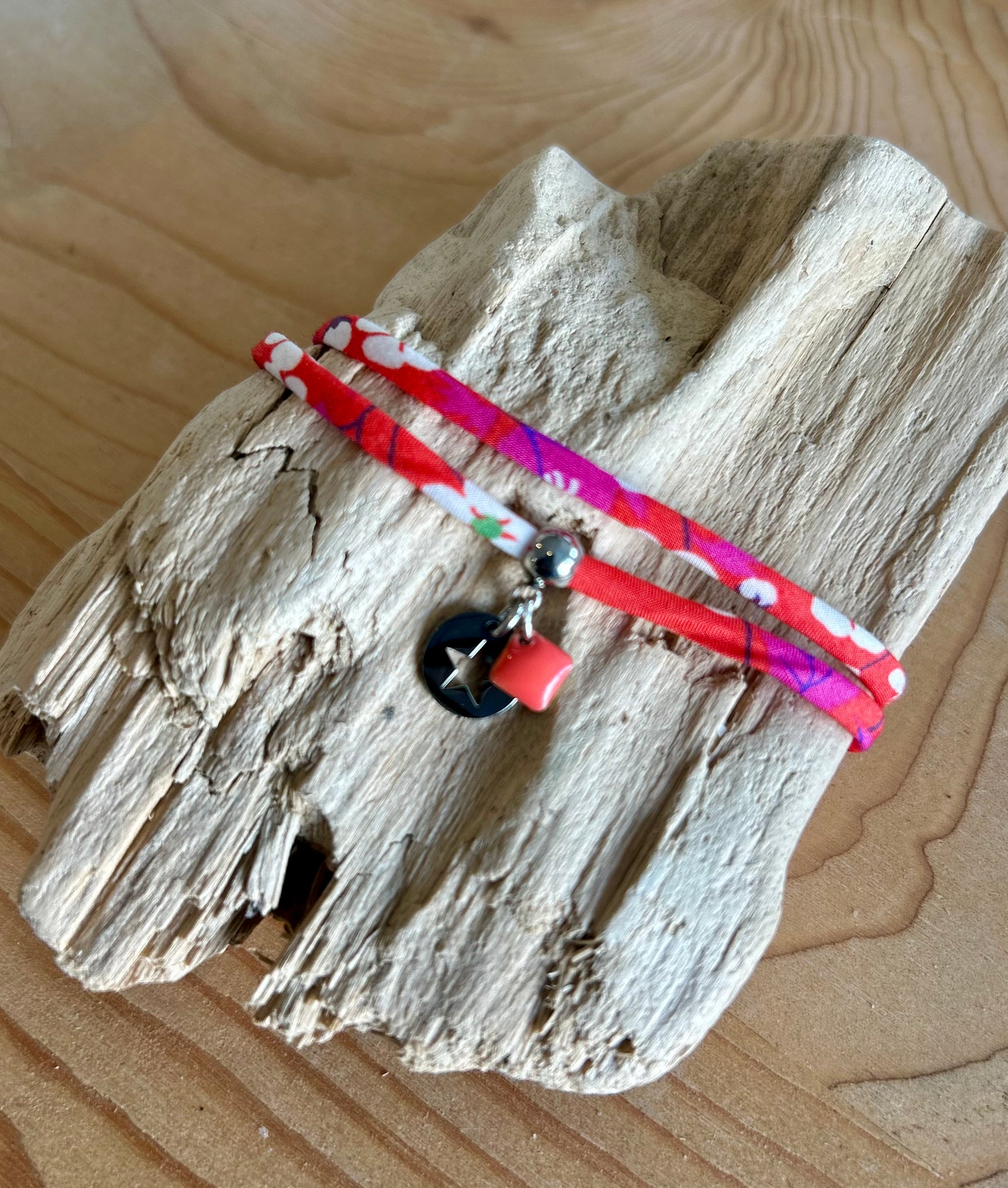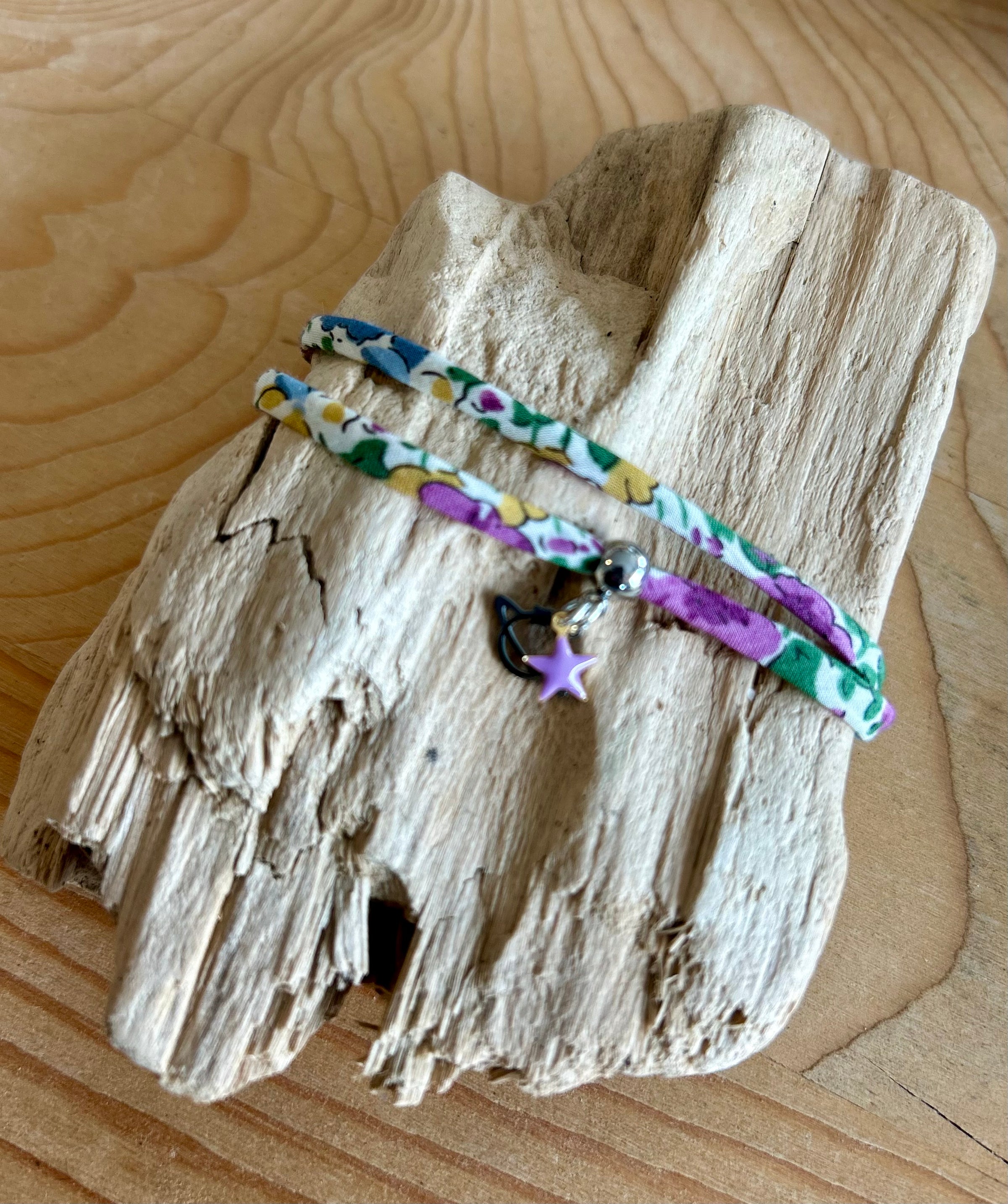 Apportez une touche de fraîcheur et de gaieté à vos tenues avec les bracelets Liberty faits main, inspirés par l’esprit léger des vacances en bord de mer et signés Céline FRANCOIS. Chaque modèle est unique, réalisé à partir de tissus Liberty aux motifs floraux ou graphiques, et agrémenté de charmes dorés (cœur, étoile, œil, médaille, fleur...) qui ajoutent une note bohème et chic.