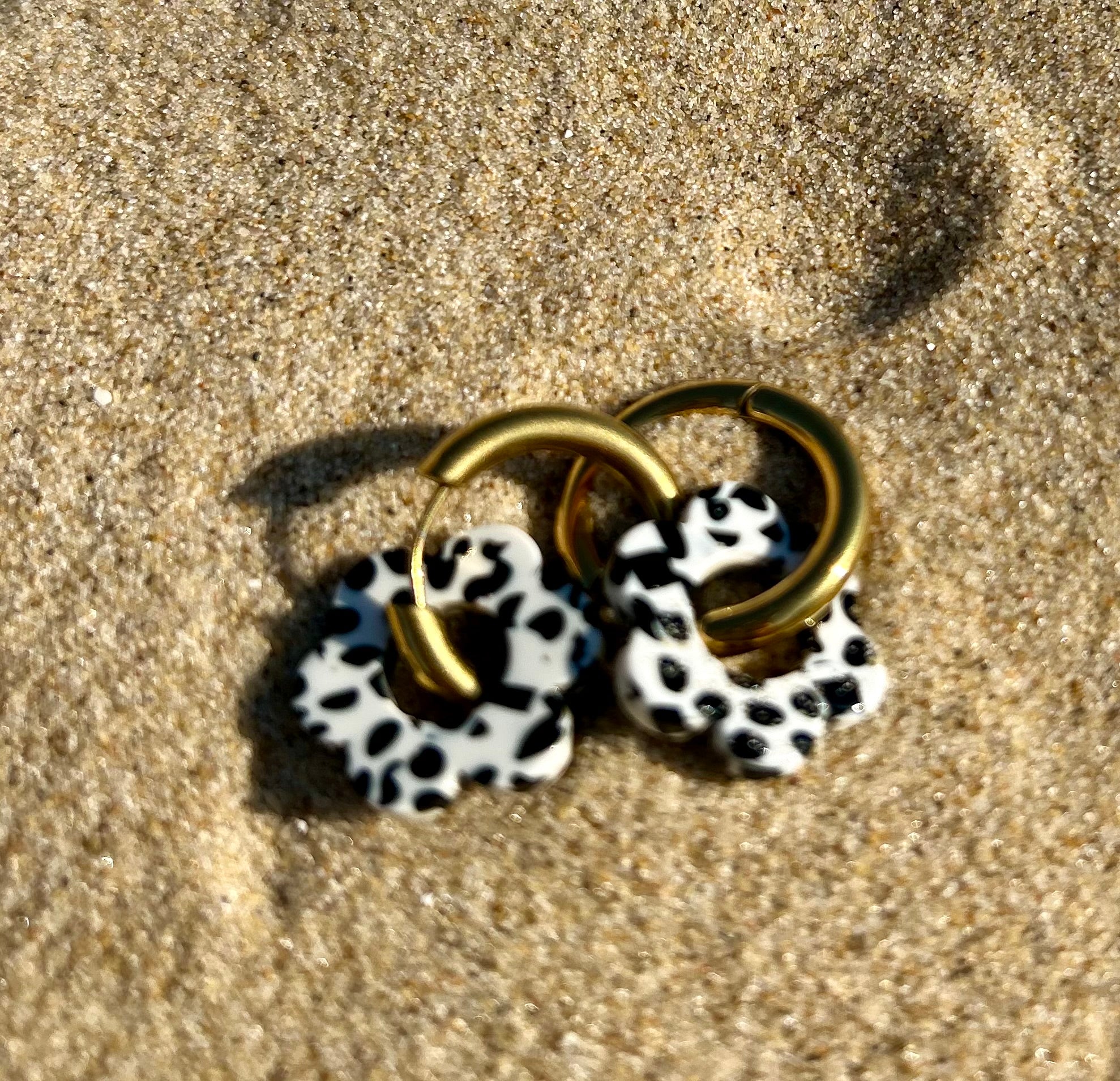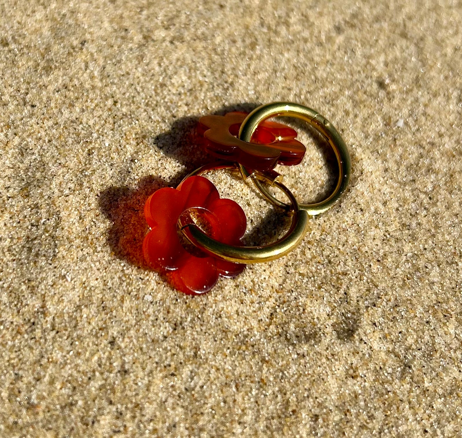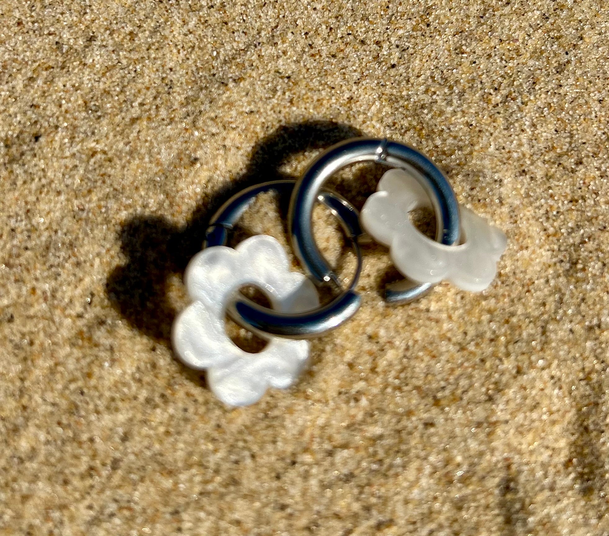 Matériaux: fleur en résine, créole en acier inoxydable (doré plaqué or 18K ou argenté), hypoallergénique – garanti sans nickel, sans chrome, sans cadmium