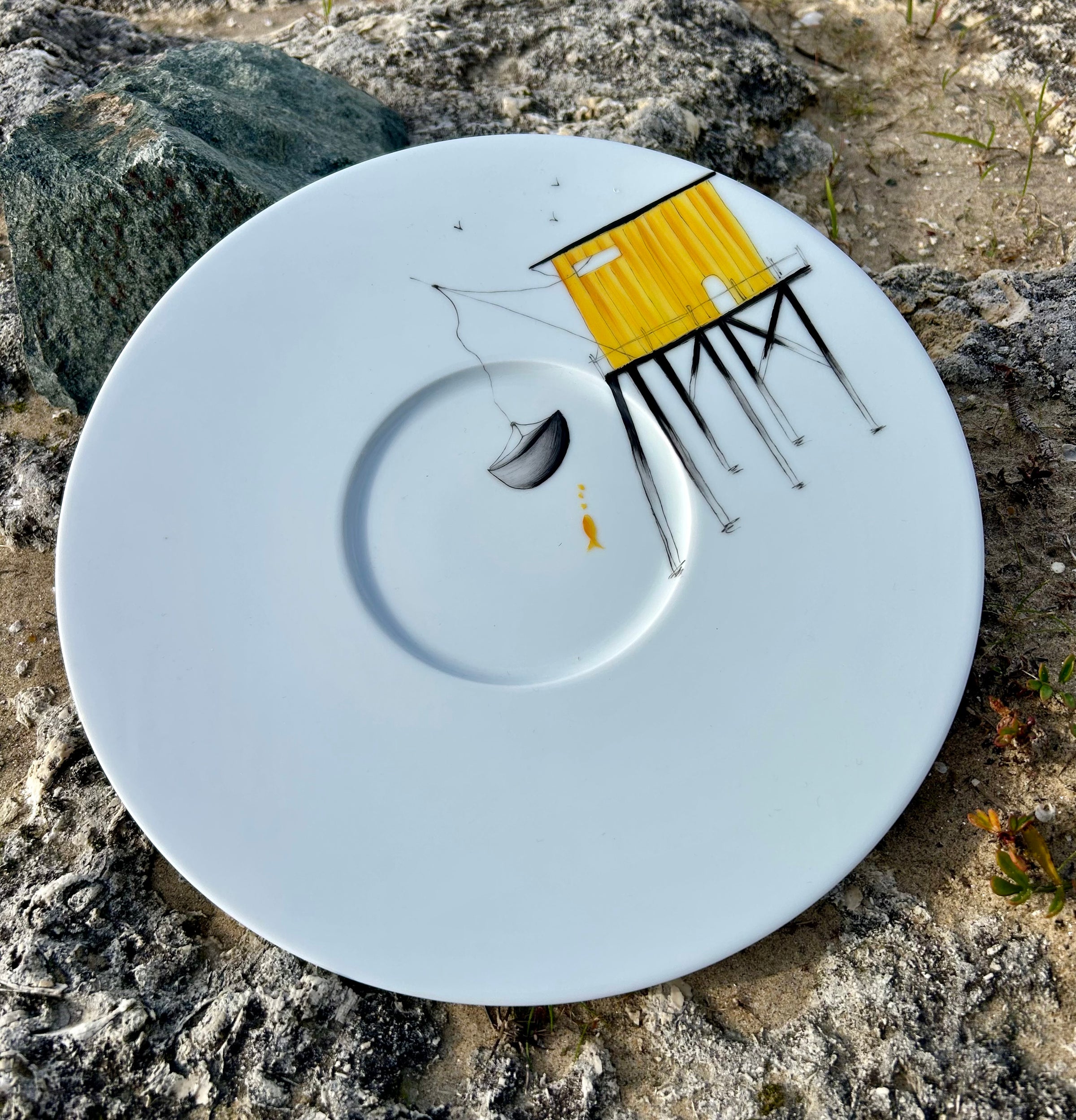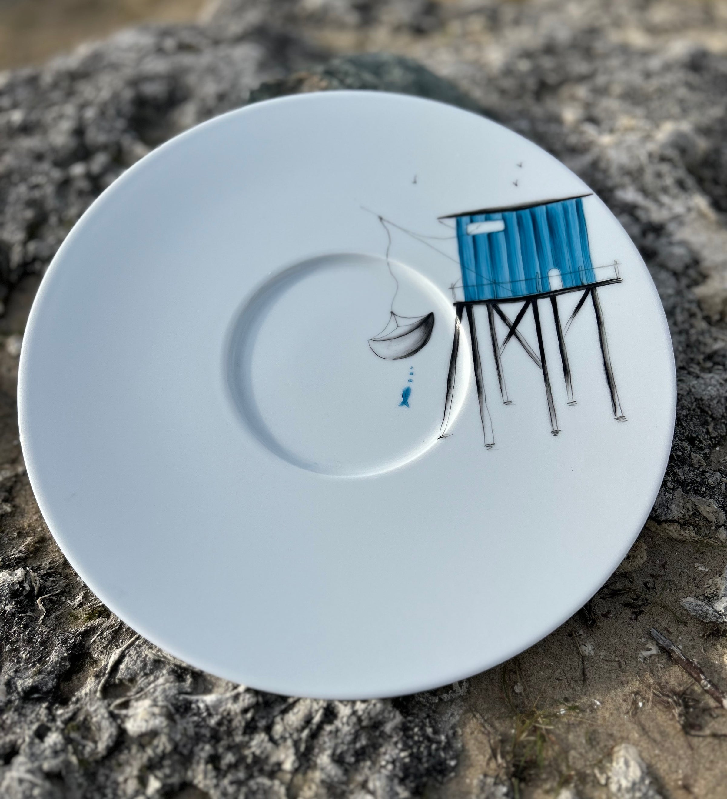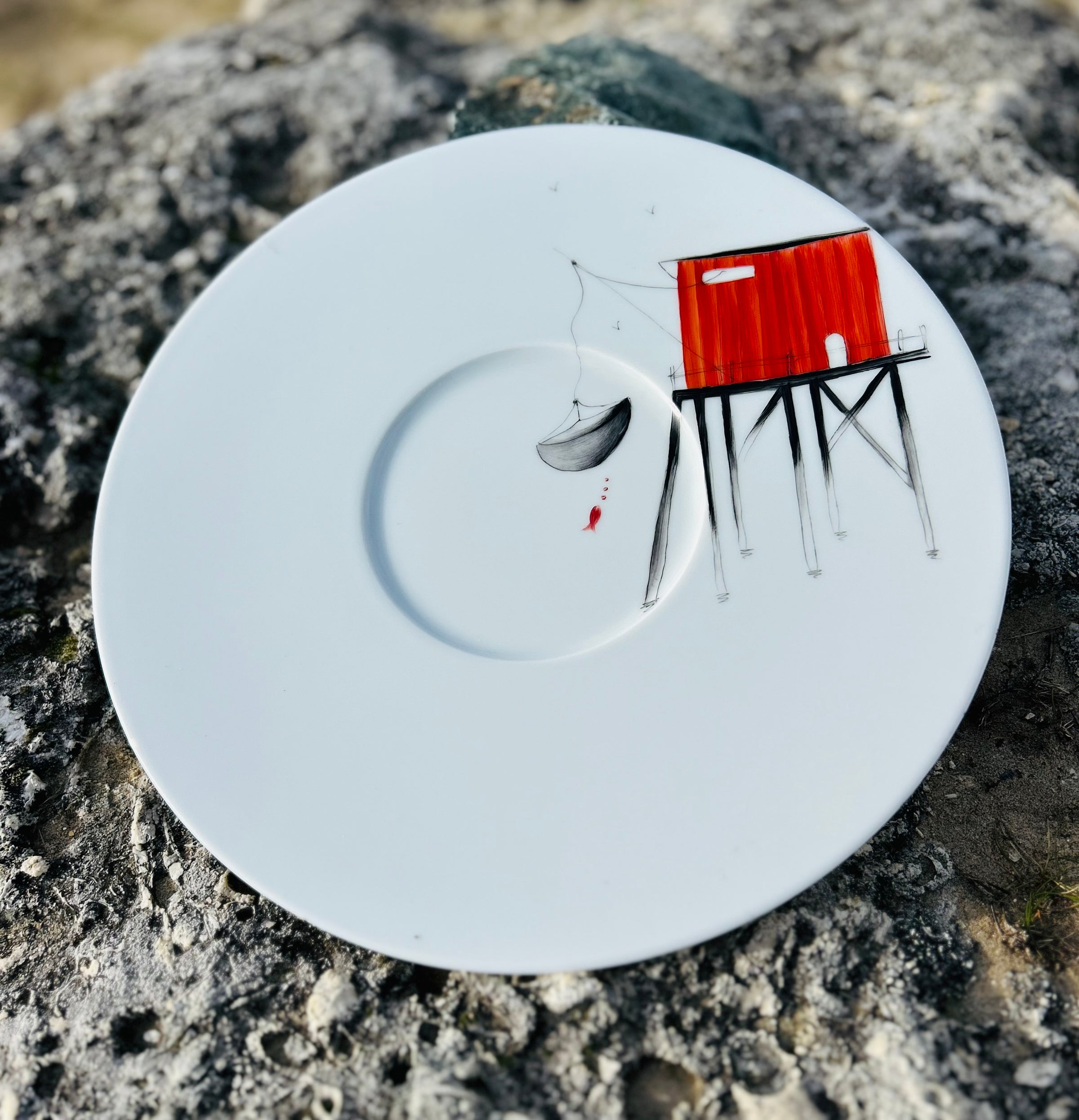 Sublimez votre table avec ces grandes assiettes en porcelaine, illustrées d’un carrelet emblématique de nos côtes, signé Alibabeth & les 40 couleurs. Chaque pièce est peinte à la main, faisant de chaque assiette une création unique qui allie savoir-faire artisanal et esthétisme contemporain.