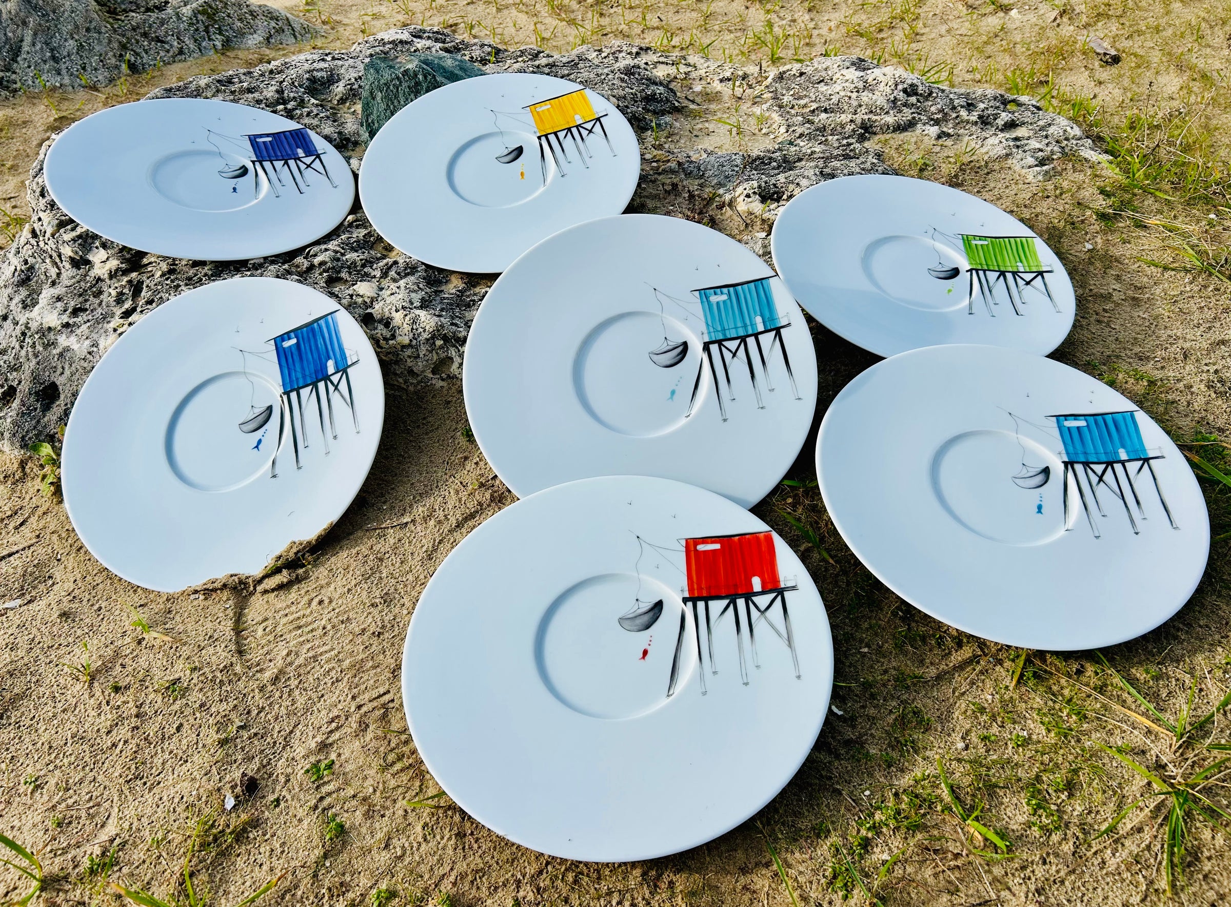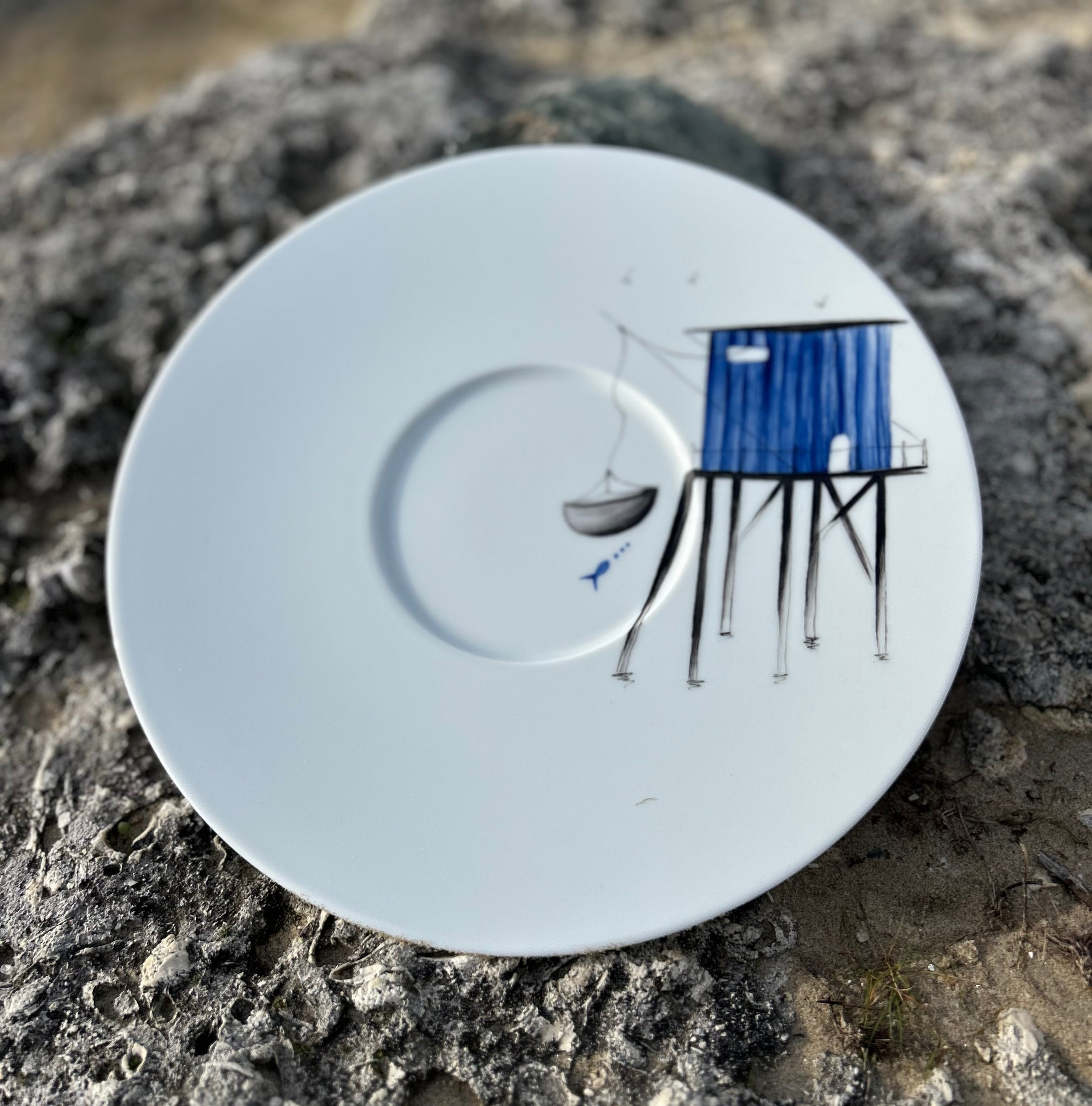 L’illustration du carrelet, délicate et pleine de charme, apporte une touche littorale à votre décoration de table. Les détails fins et les couleurs vibrantes donnent vie à ces cabanes de pêcheurs sur pilotis, symbole authentique du bord de mer.