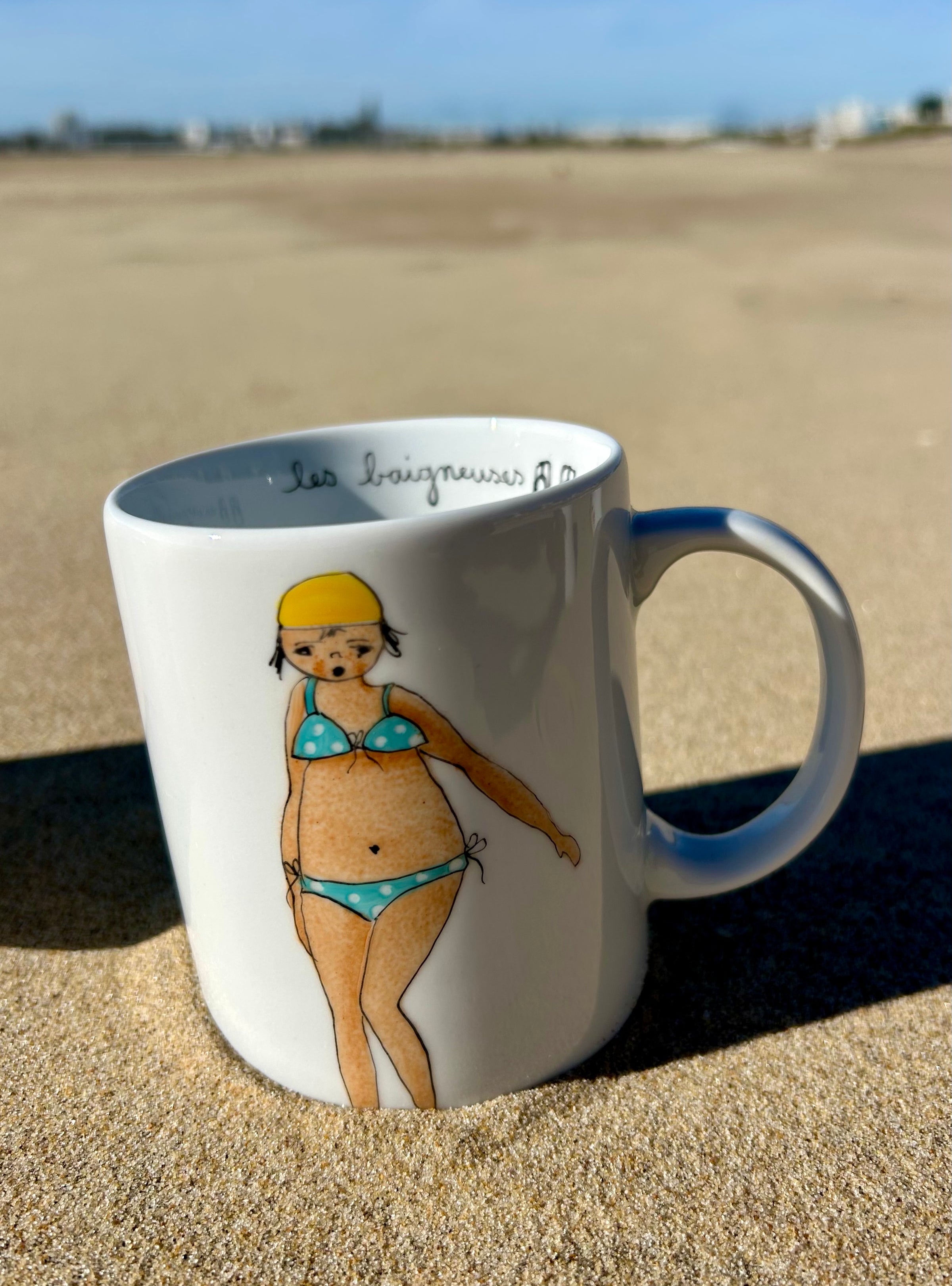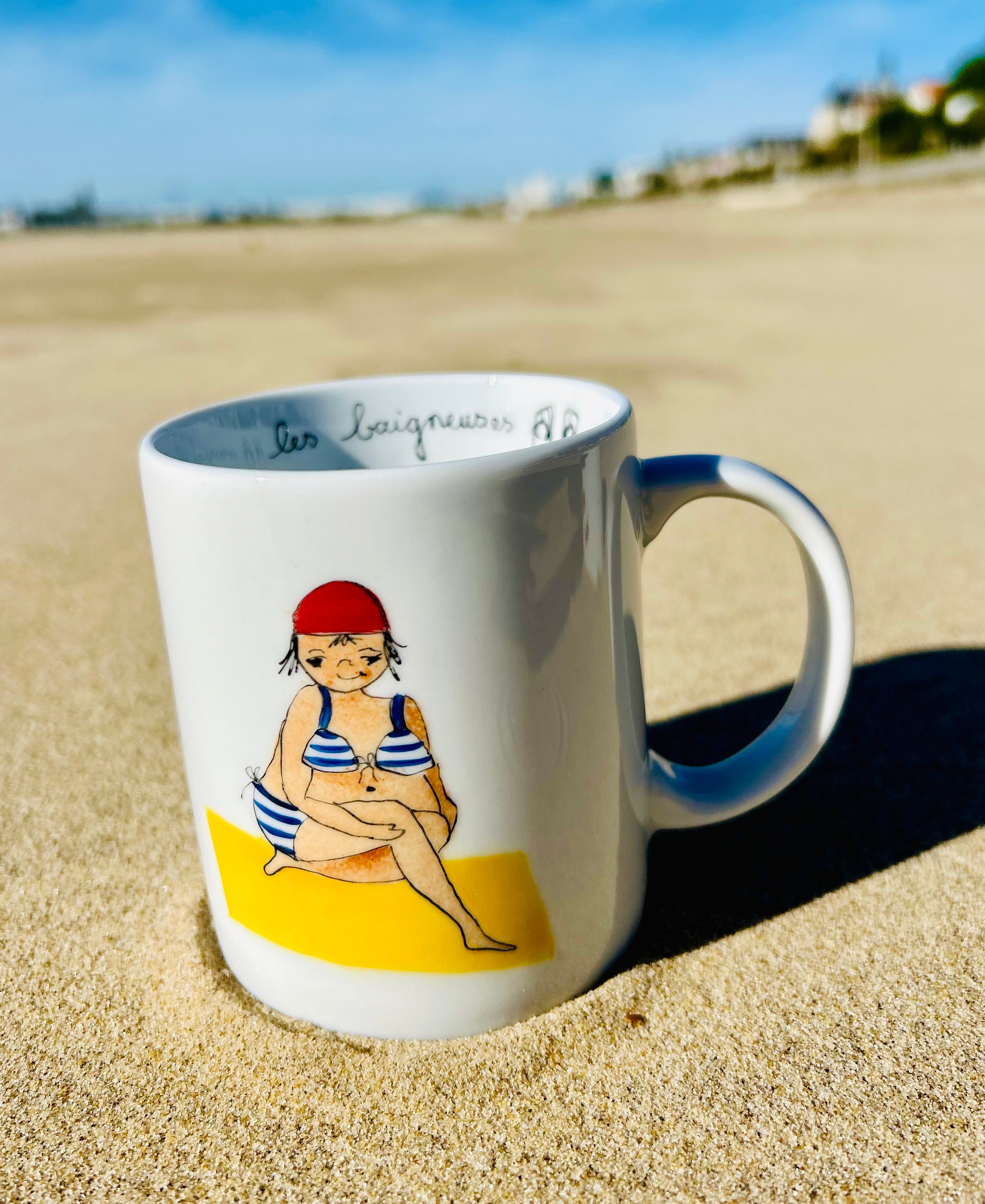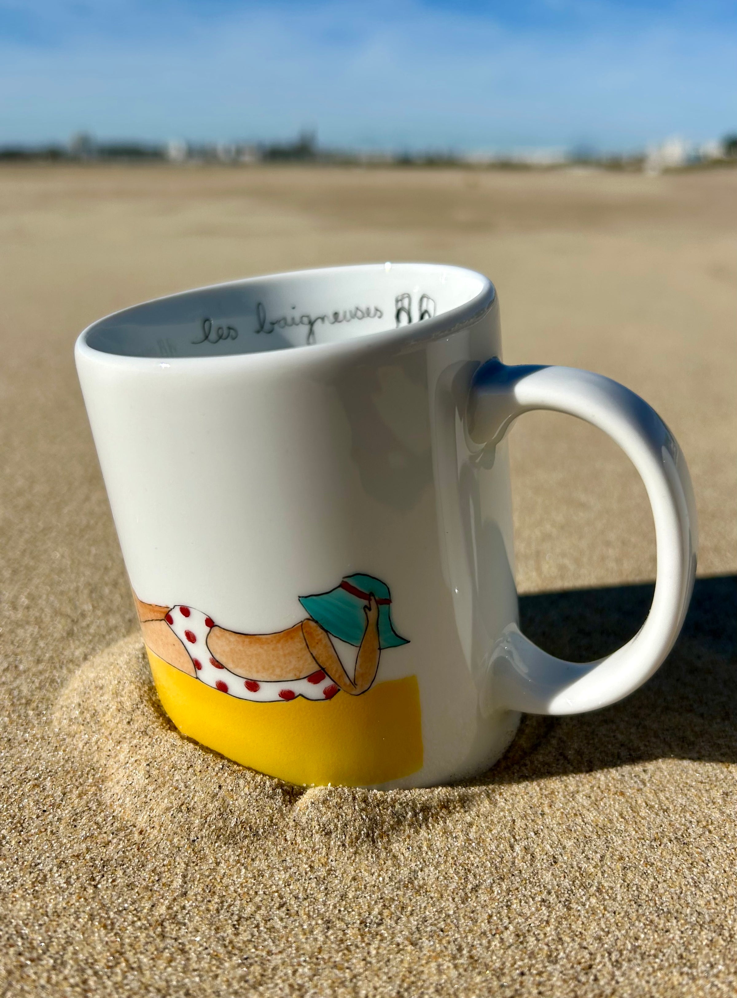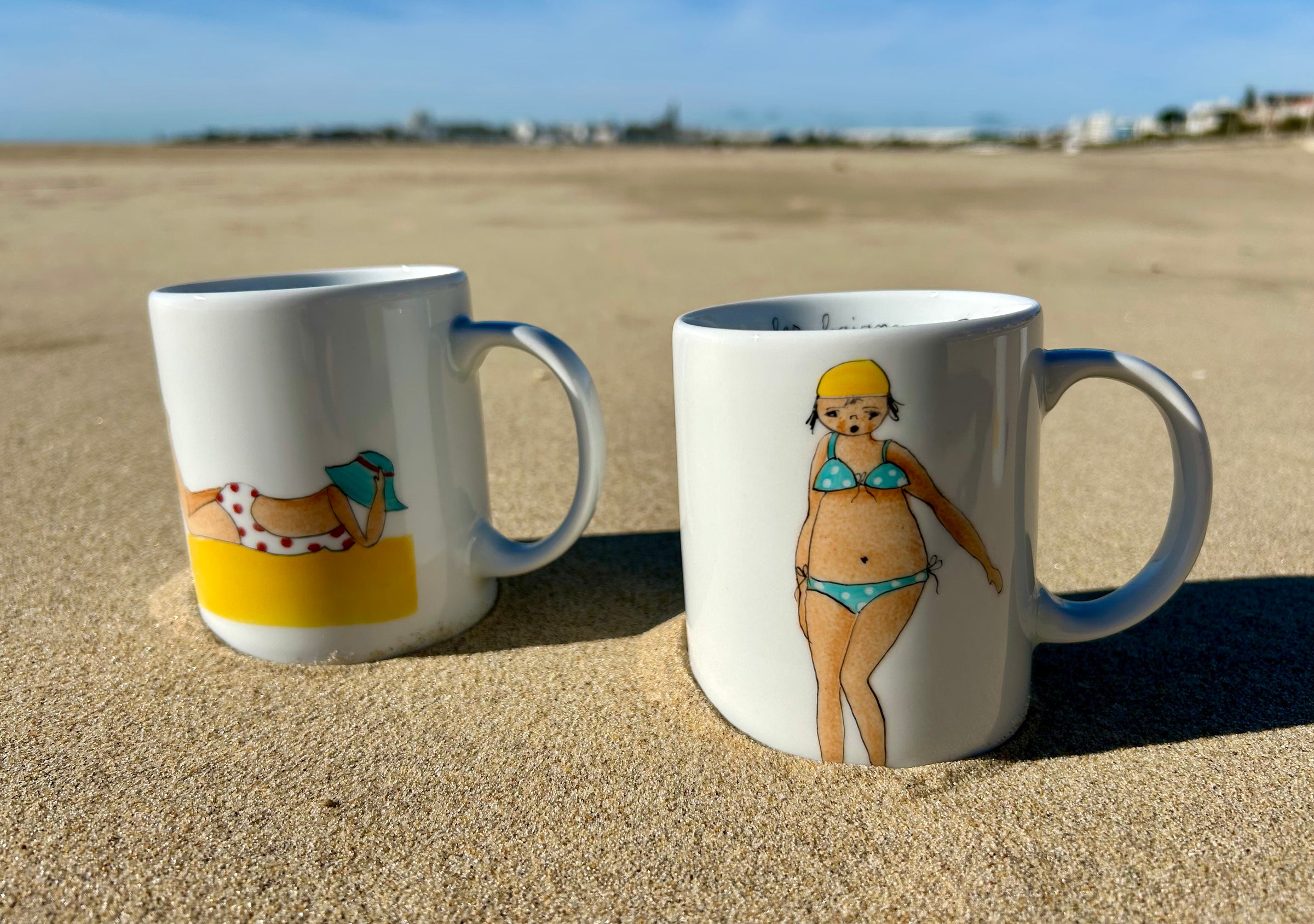 Ces mugs en porcelaine artisanale célèbrent l’élégance intemporelle des années balnéaires : maillots rayés, bonnets de bain colorés et sourires d’été. Chaque modèle capture un instant de légèreté, une scène de plage empreinte de nostalgie et de douceur.