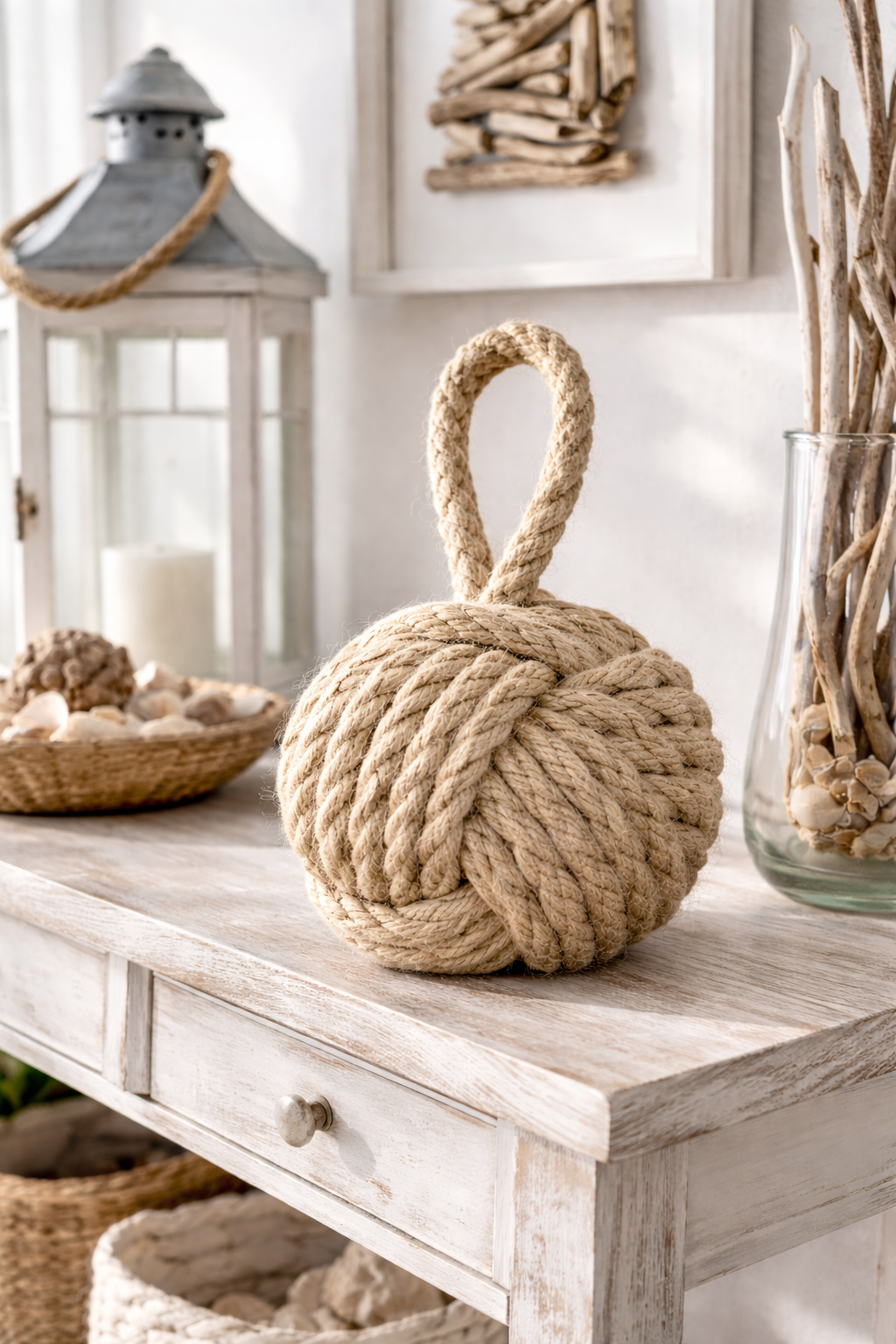Alliez praticité et authenticité avec ce cale-porte en chanvre naturel, fabriqué à la main par Les Nœuds de Marsala. Conçu avec une boule de pétanque intégrée, il pèse environ 1,2 kg et garantit une excellente stabilité pour maintenir vos portes ouvertes en toute sécurité.