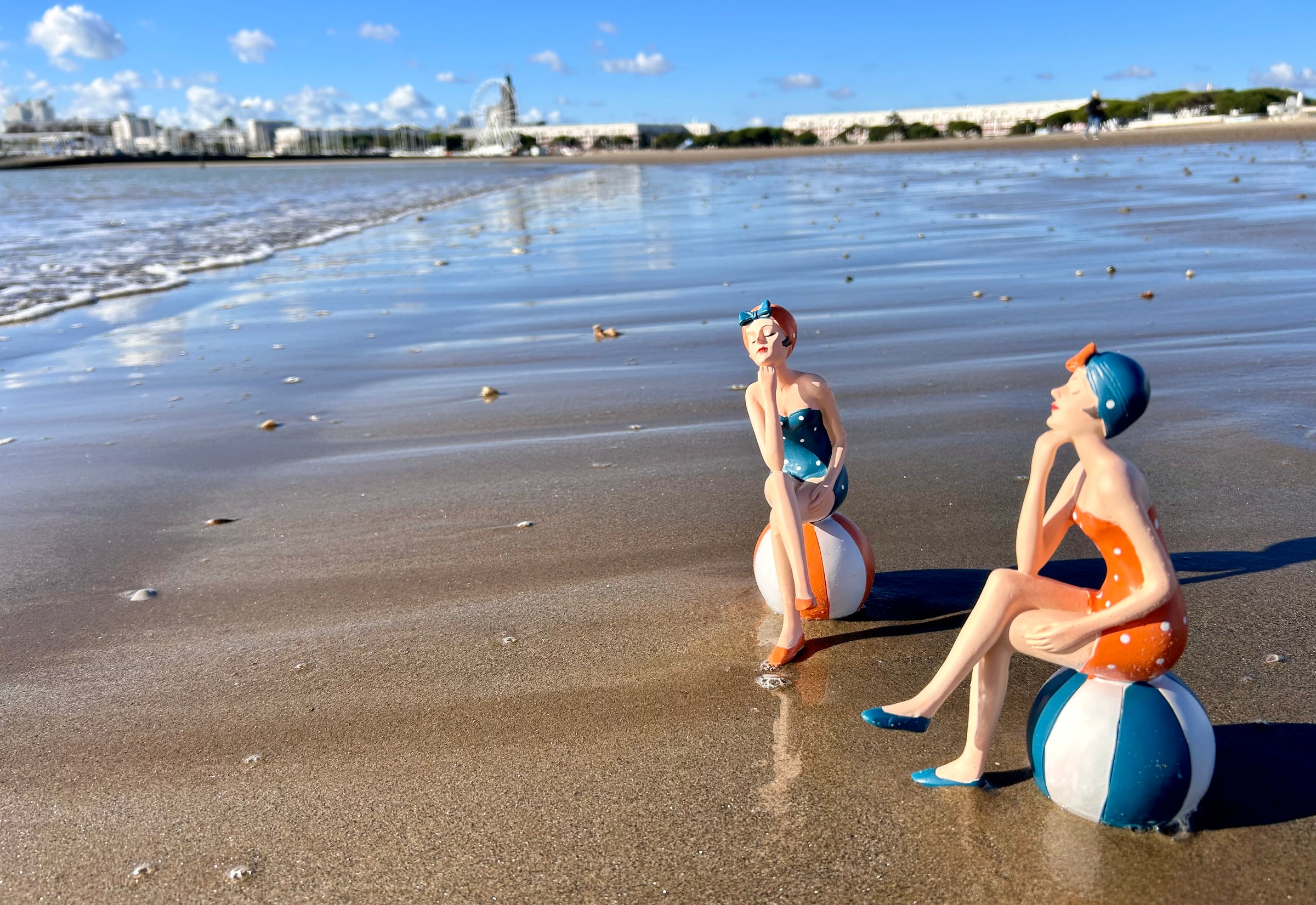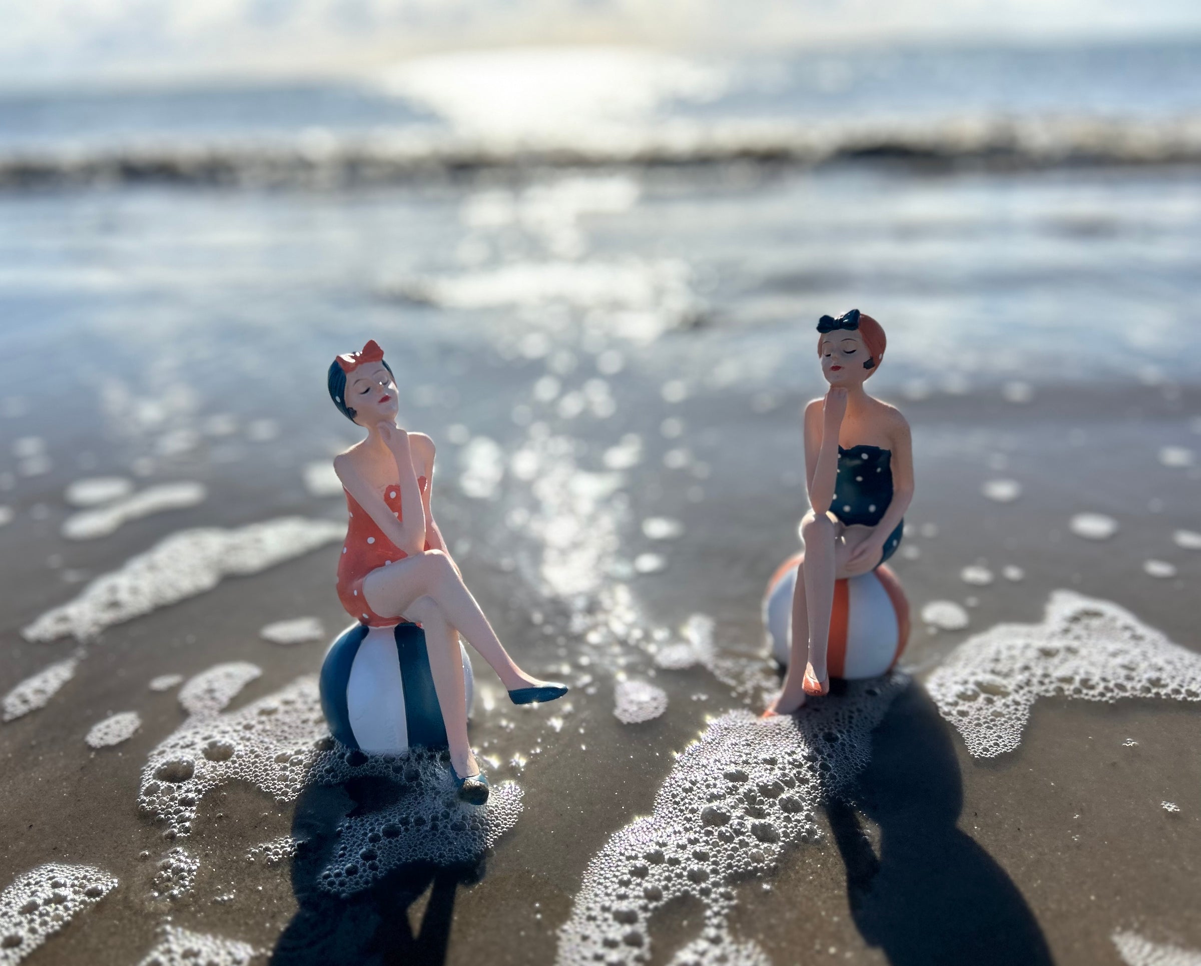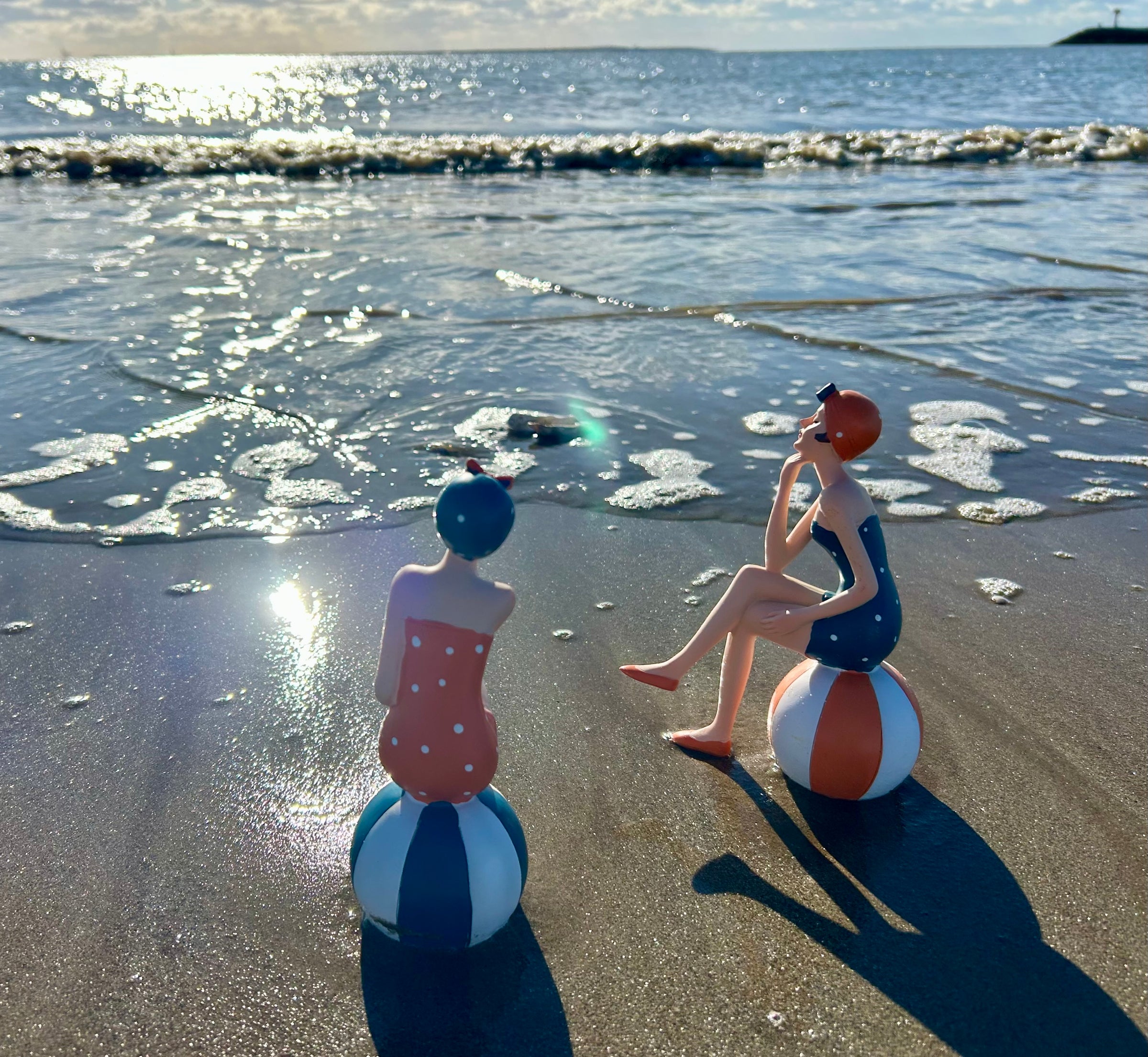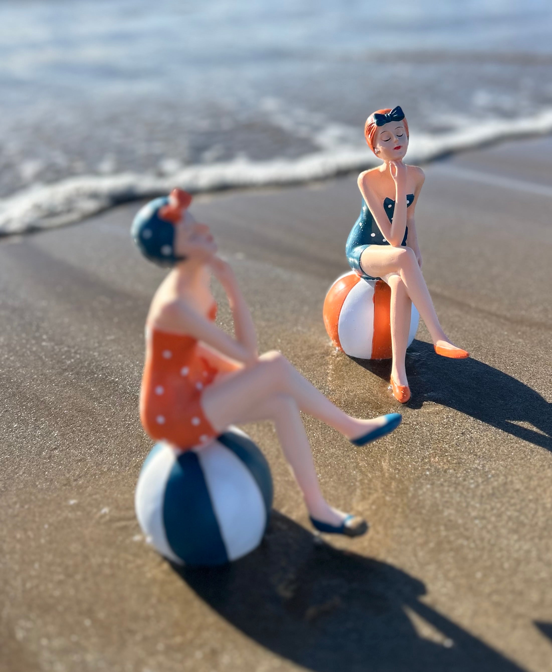 Apportez une touche dâĂ©lĂ©gance rĂ©tro Ă votre dĂ©coration avec les figurines Josette et Denise, deux baigneuses rĂȘveuses assises sur leur ballon de plage. Issues de la Collection June de la marque FAYE, elles Ă©voquent le charme intemporel des stations balnĂ©aires dâautrefois, les aprĂšs-midis ensoleillĂ©s et lâesthĂ©tique raffinĂ©e des annĂ©es 40â50.