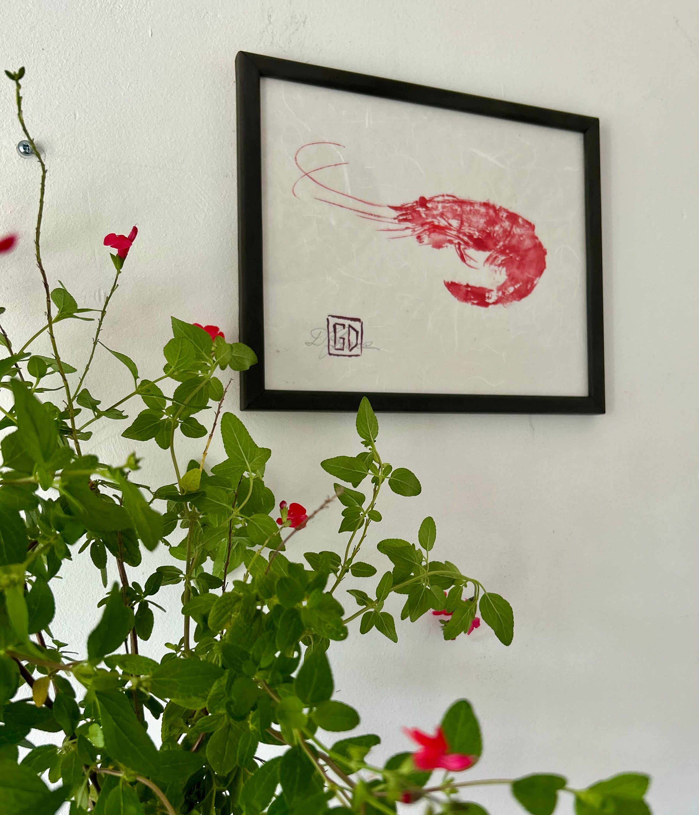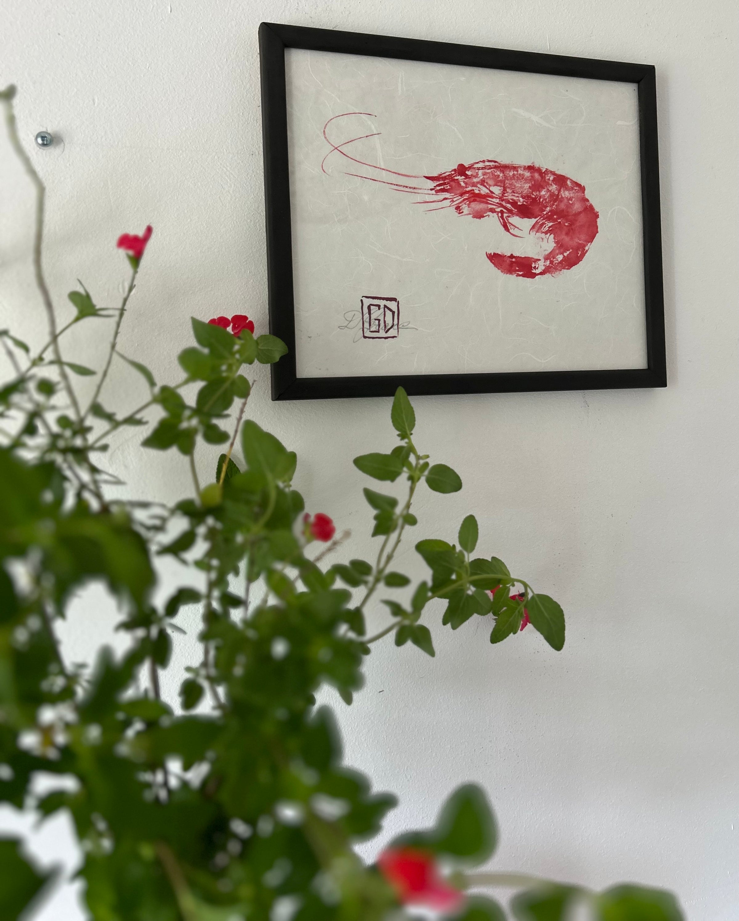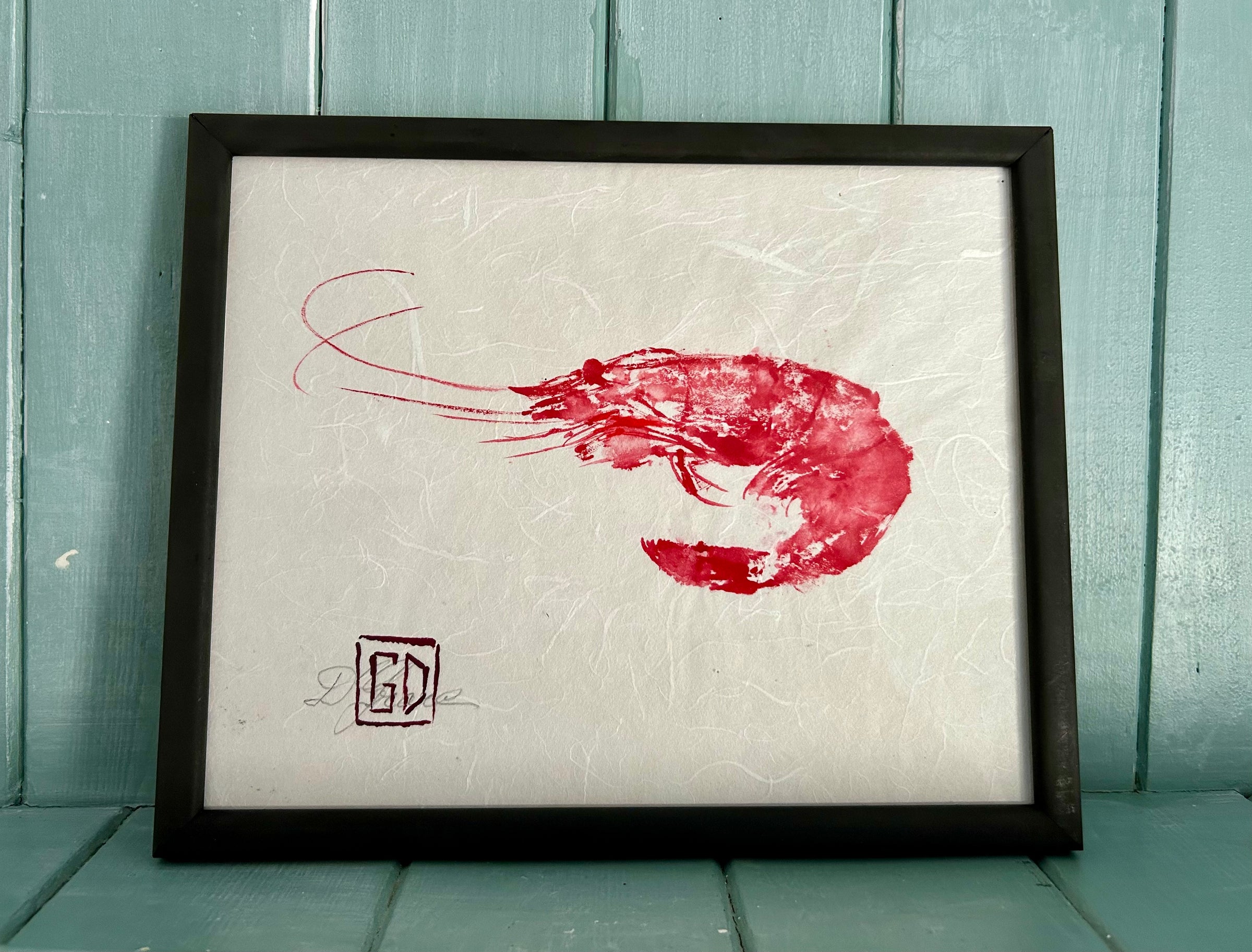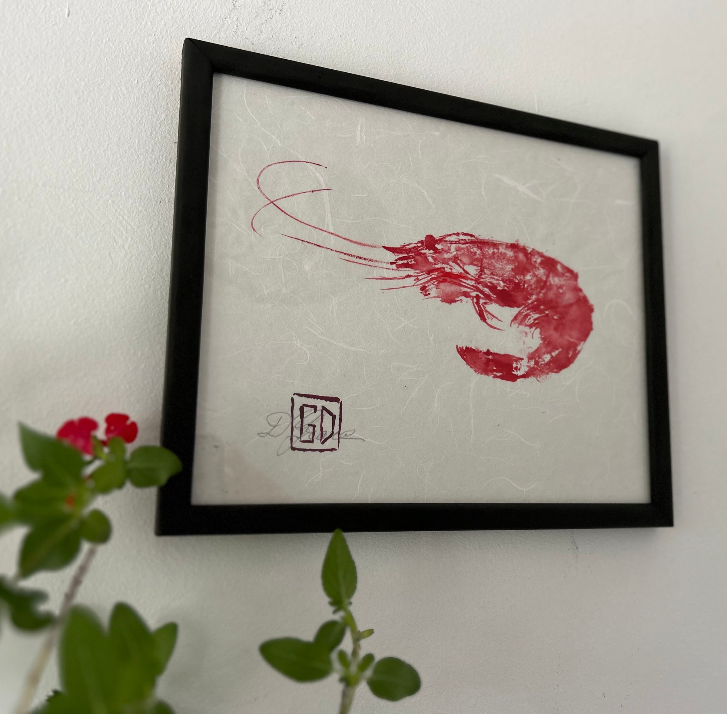 Crevette Mayo réalisée selon la technique du Gyotaku, signée Didier Grare