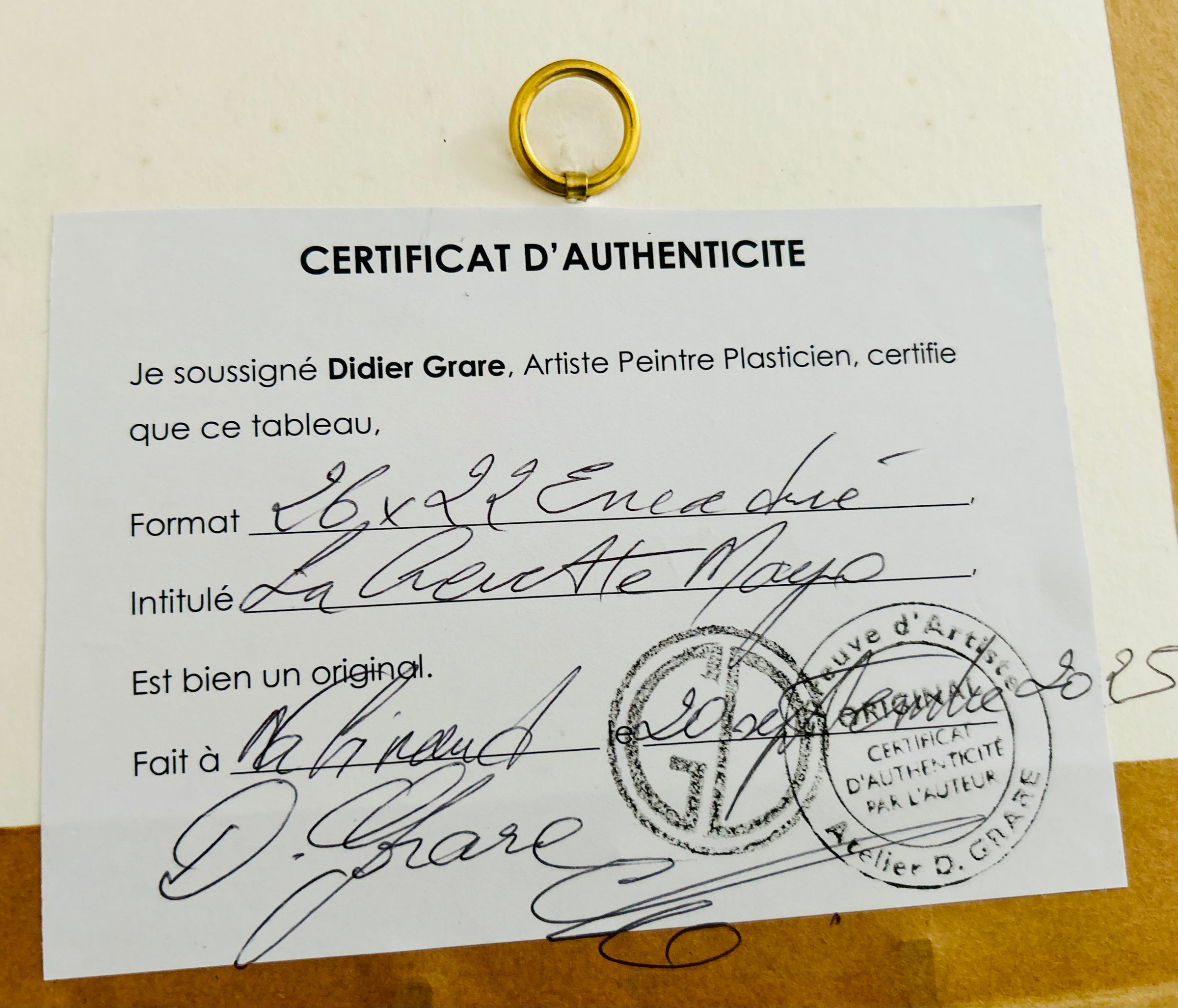 Oeuvre Unique vendue avec son certificat d'authenticité