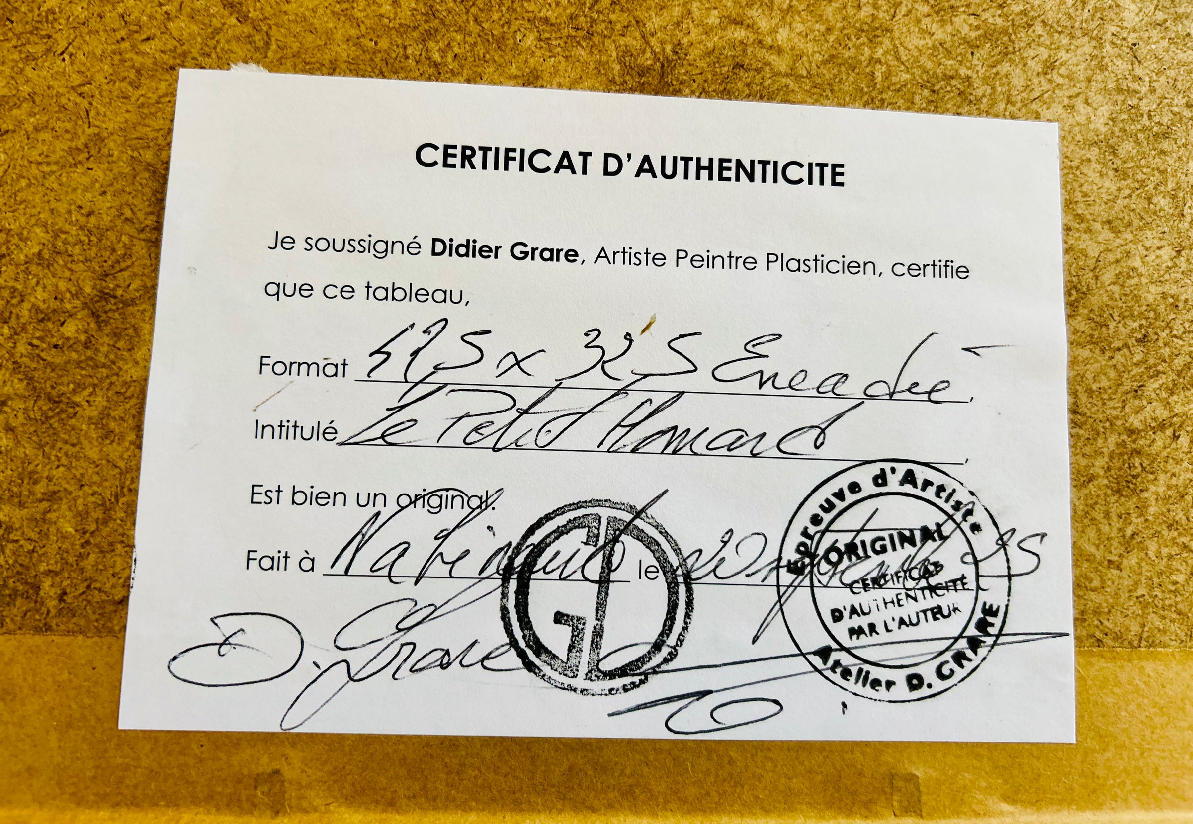Oeuvre Unique vendue avec son certificat d'authenticité
