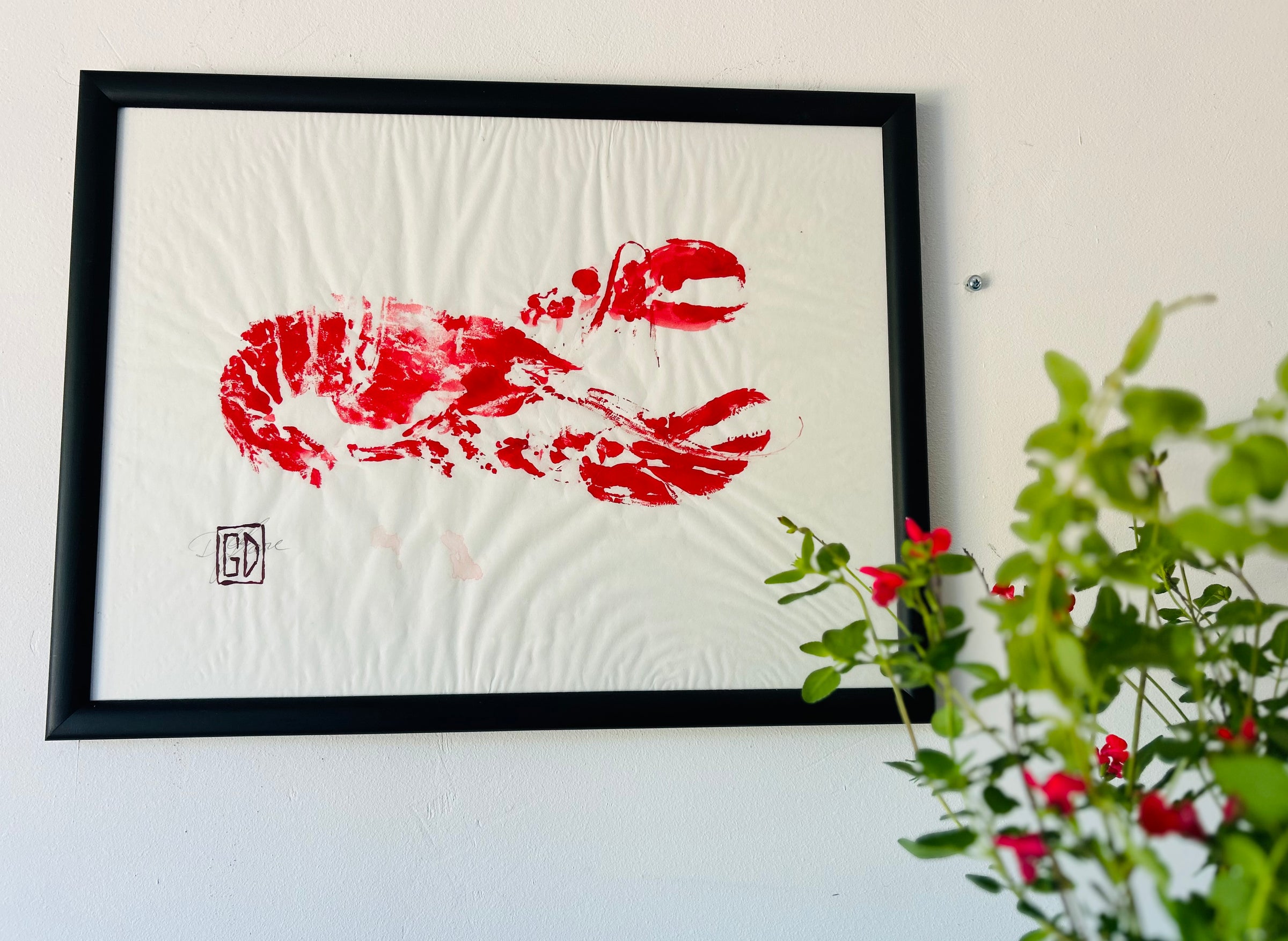 Petit homard réalisé selon la technique du Gyotaku, signée Didier Grare