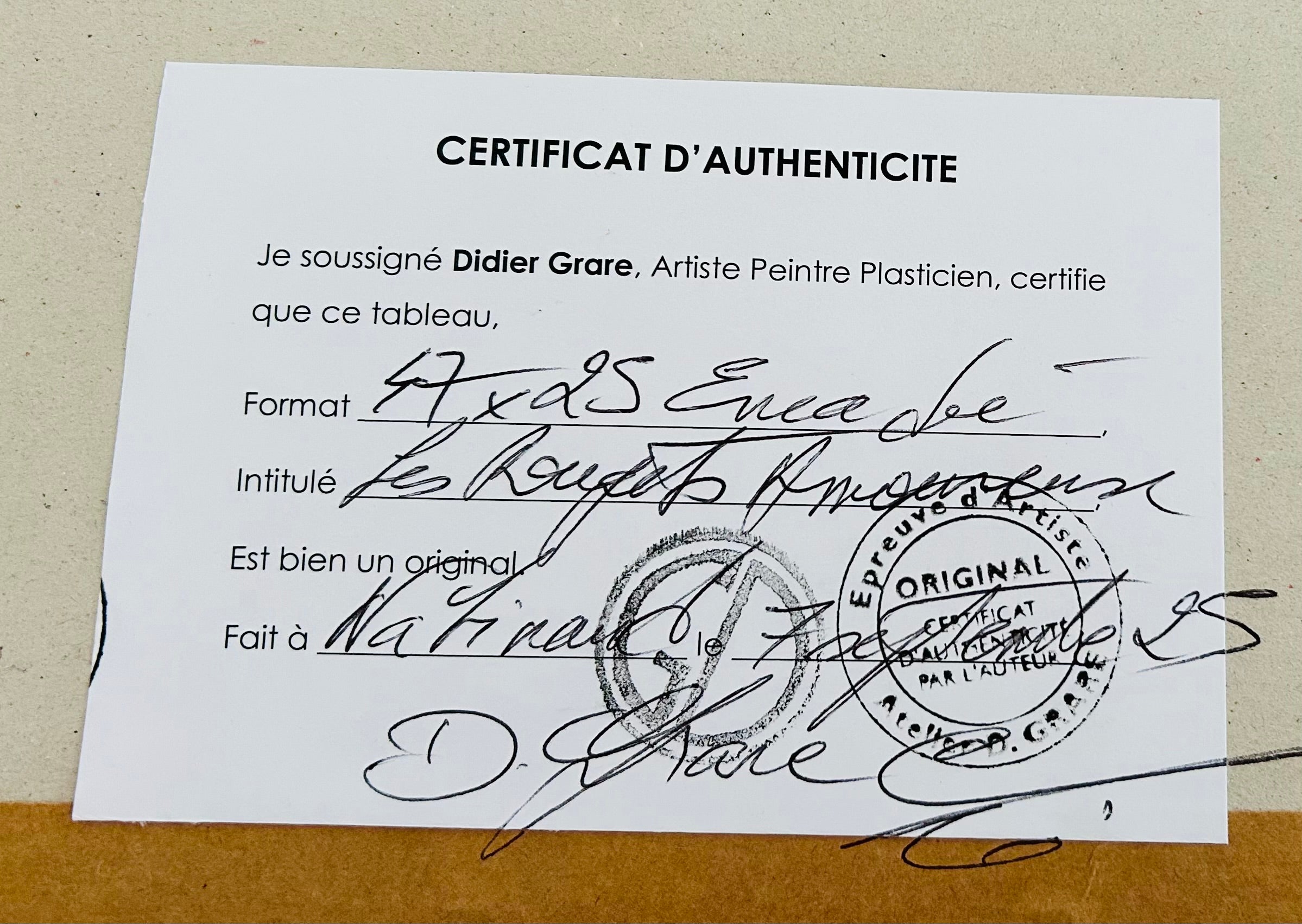 Oeuvre Unique vendue avec son certificat d'authenticité