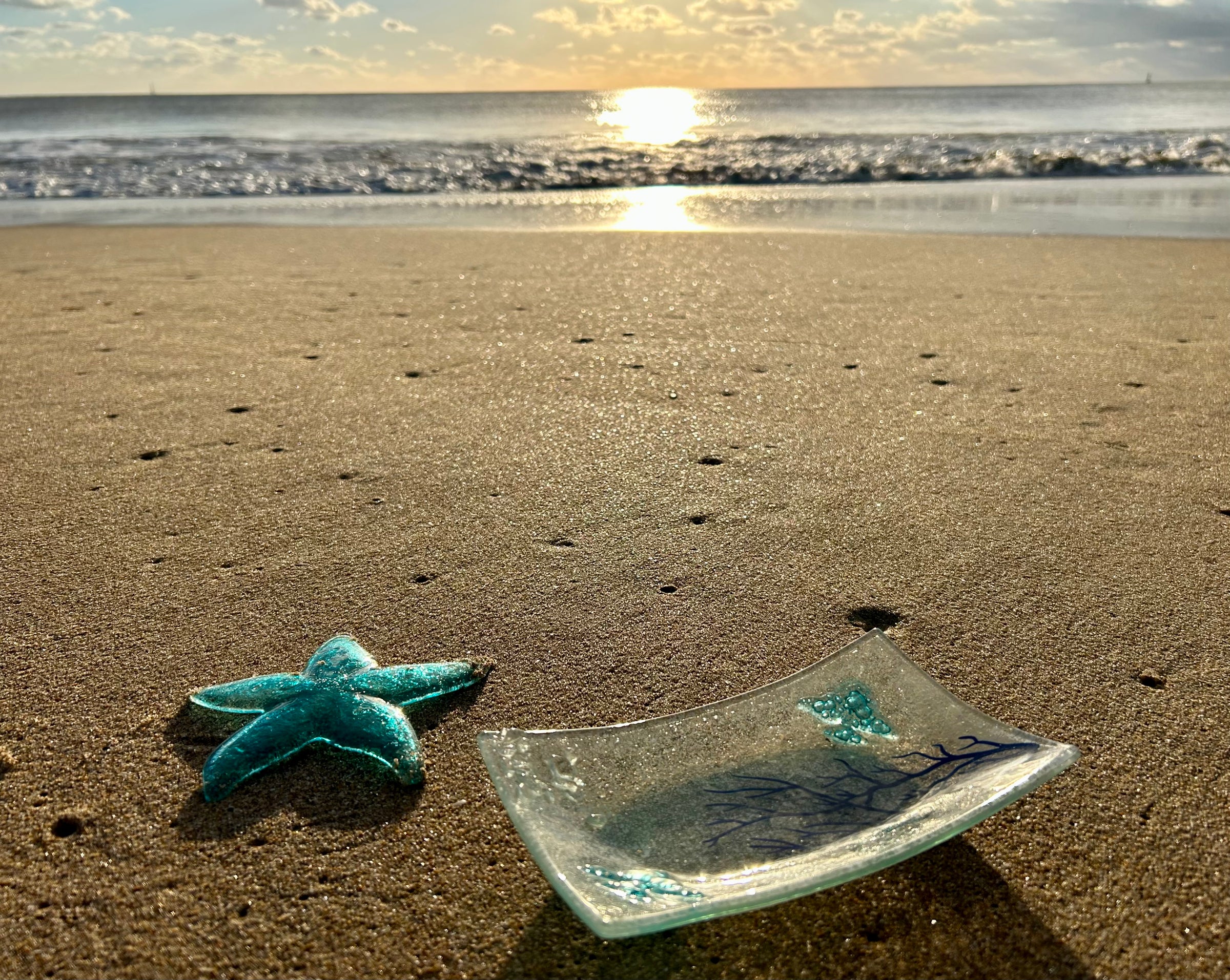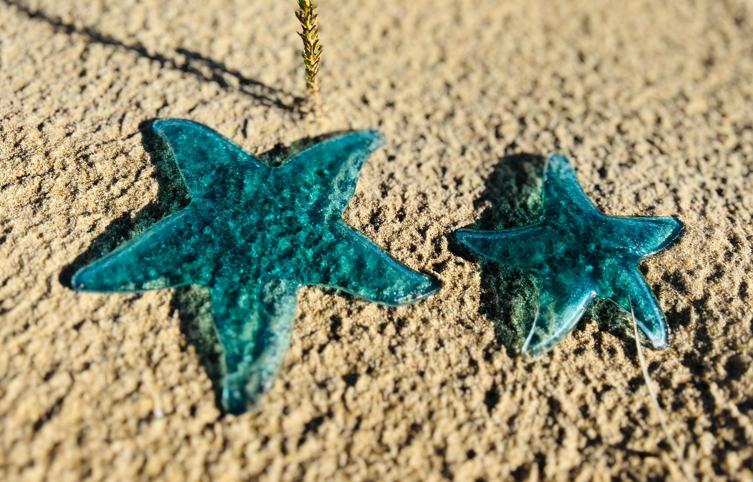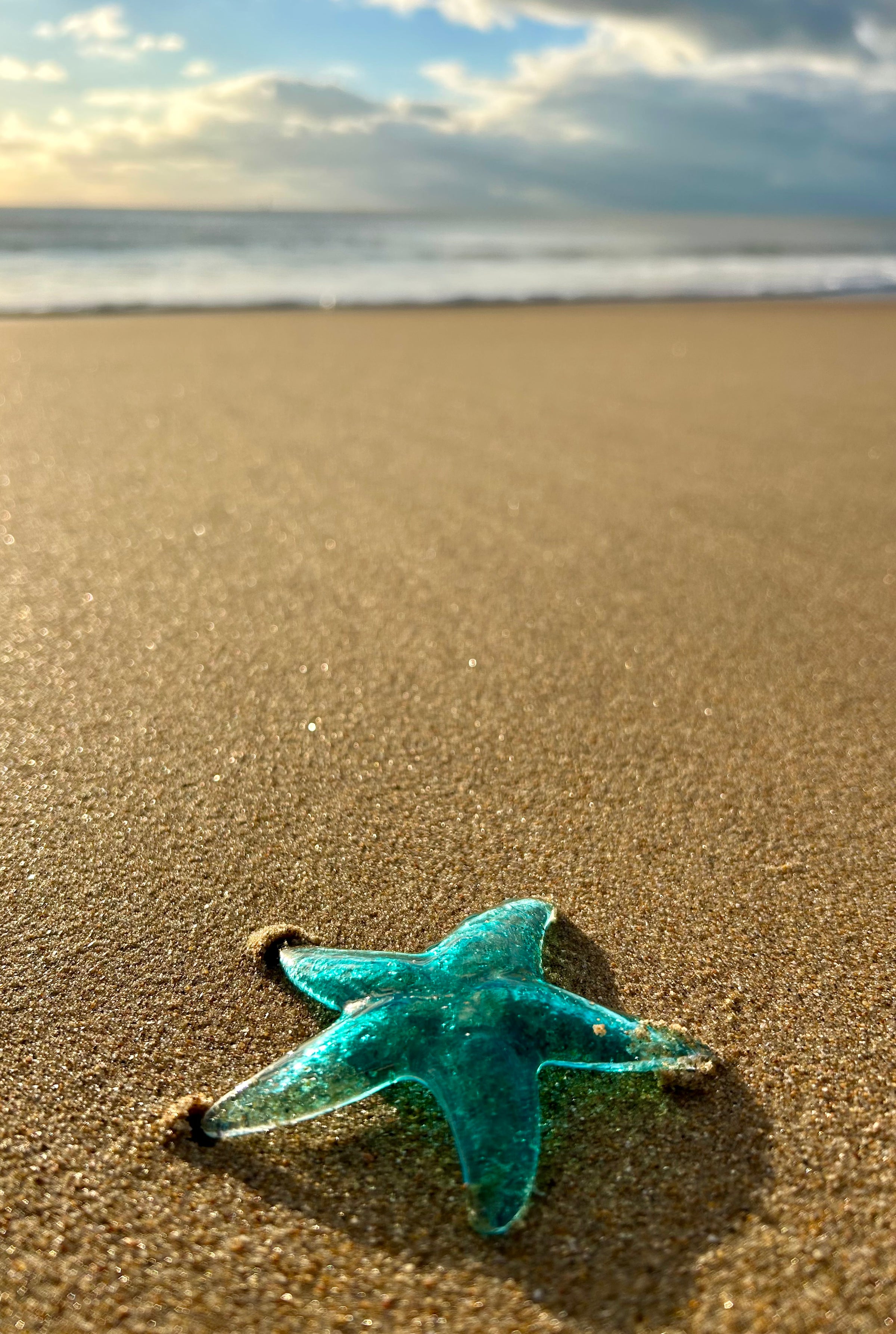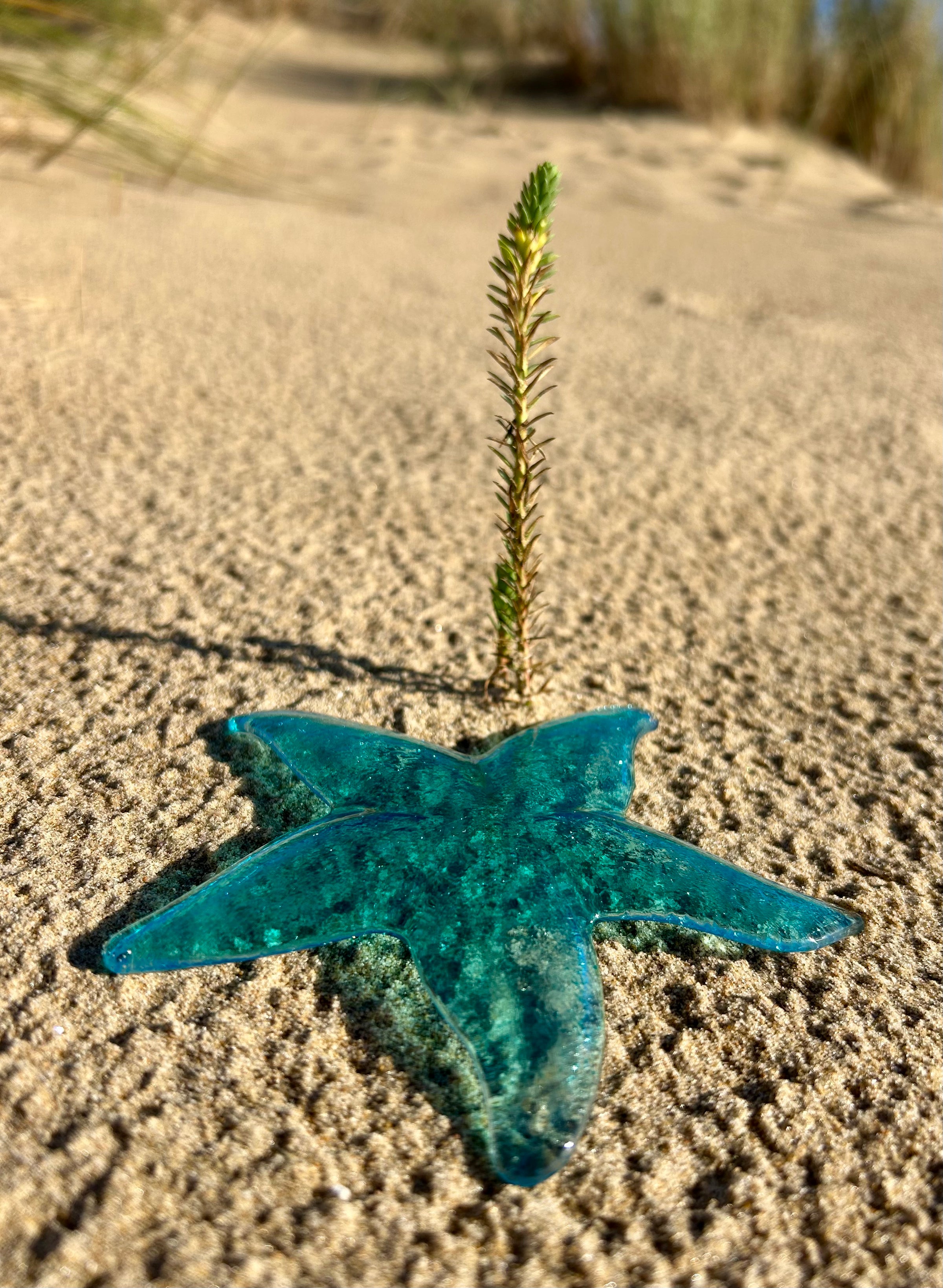 L’étoile de mer VIKI est une création en verre de fusion réalisée artisanalement dans l’atelier La Sardine Rouge. Sa texture profonde et ses nuances de bleu-vert évoquent la transparence et les mouvements de l’océan. Ses formes organiques et légèrement irrégulières renforcent son charme naturel, faisant de VIKI une pièce décorative poétique et contemporaine.