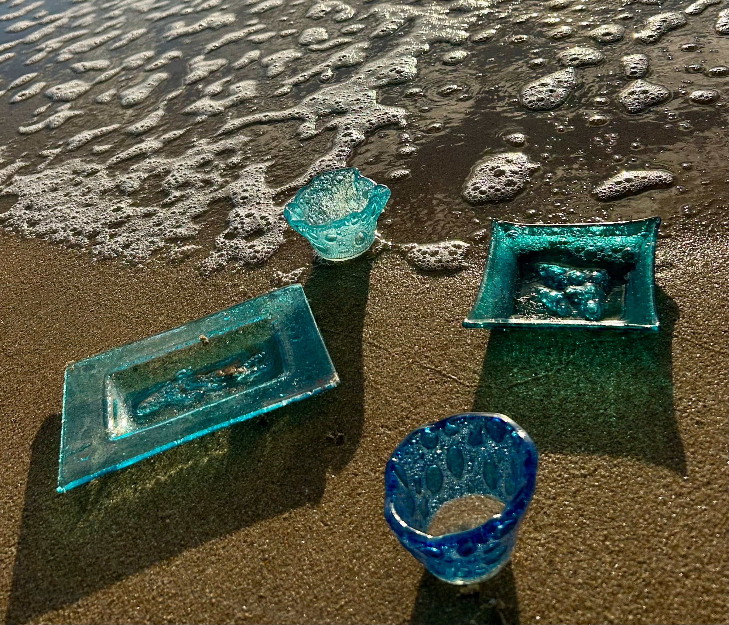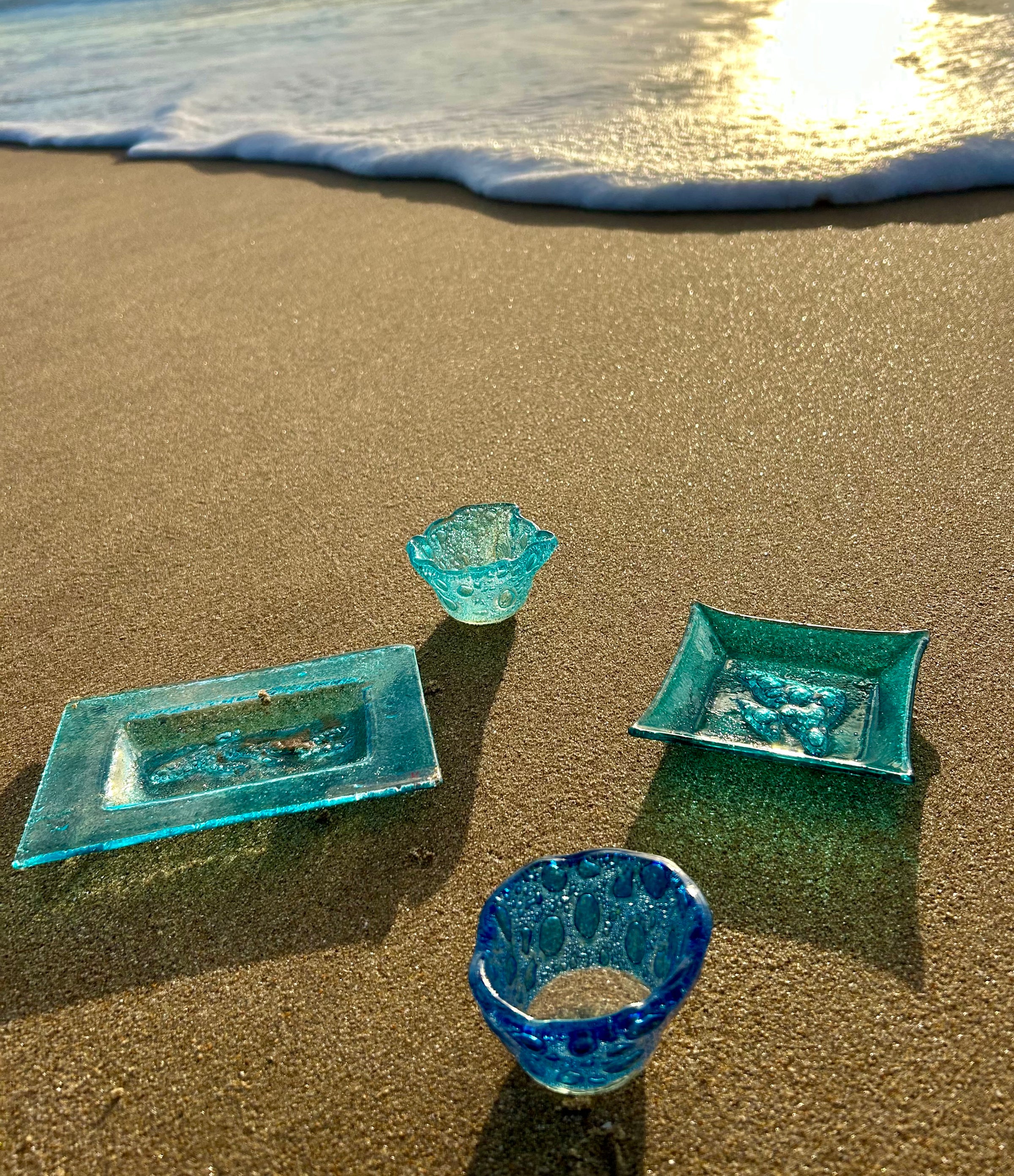 Façonnées selon la technique du verre de fusion, elles résultent de la superposition, fusion et modelage du verre à haute température. Chaque pièce présente des variations naturelles de texture, de bulles et de couleur, ce qui la rend absolument unique.