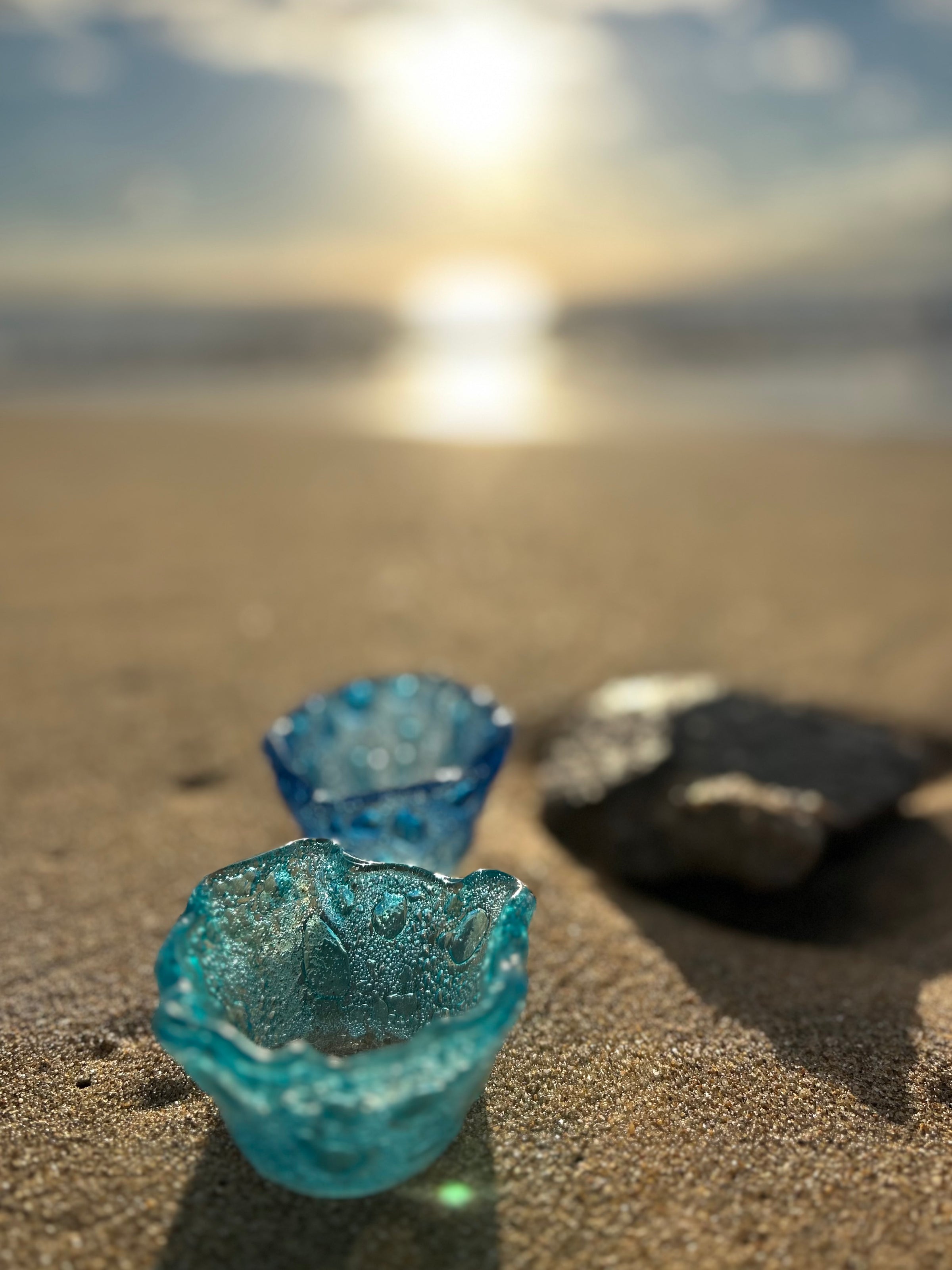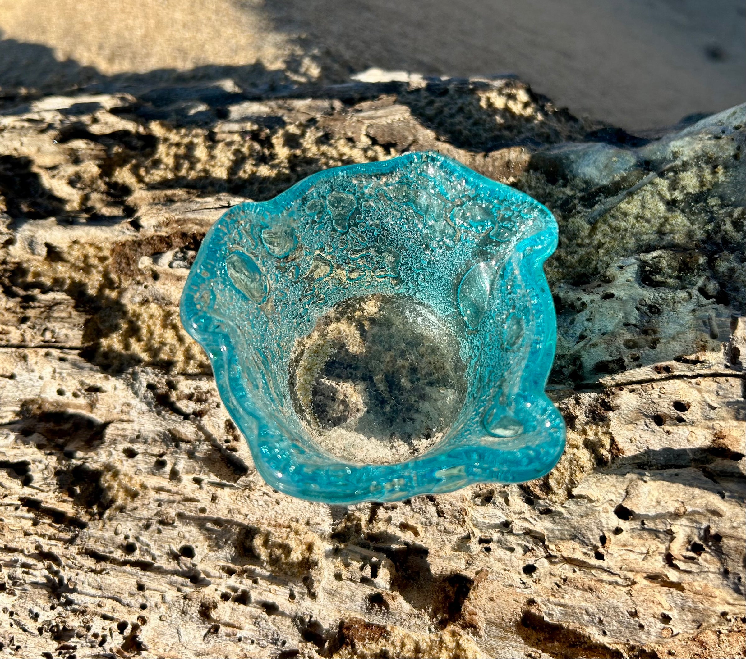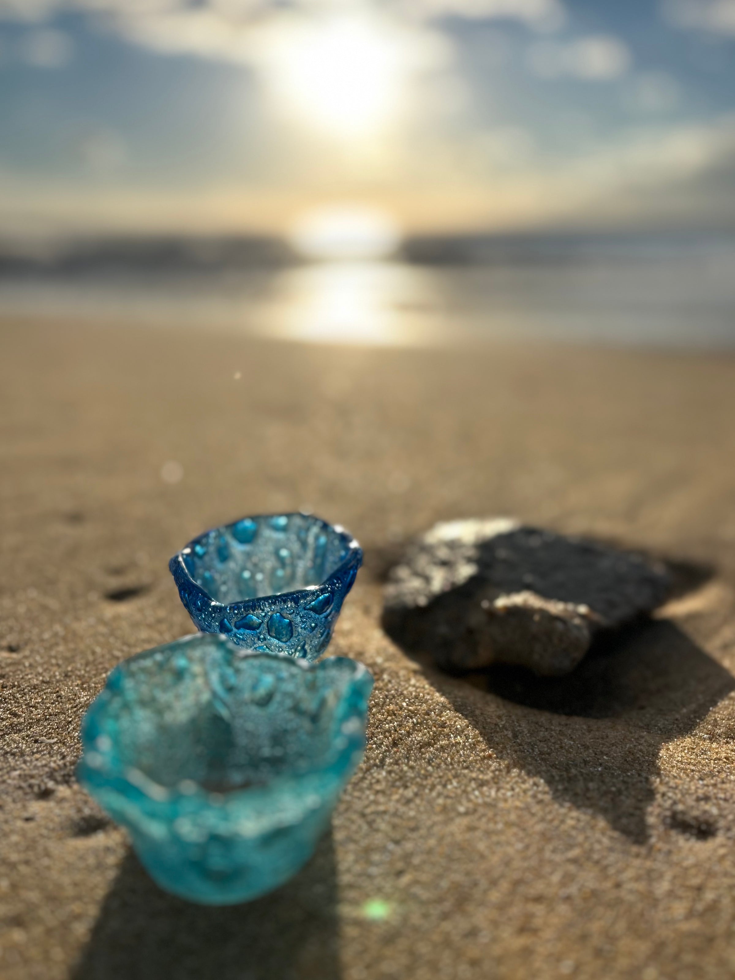 Découvrez ces délicates mini coupelles en verre de fusion, entièrement façonnées à la main dans l’atelier La Sardine Rouge. Leur forme organique, tout en courbes irrégulières, évoque de petits coquillages sculptés par les vagues.