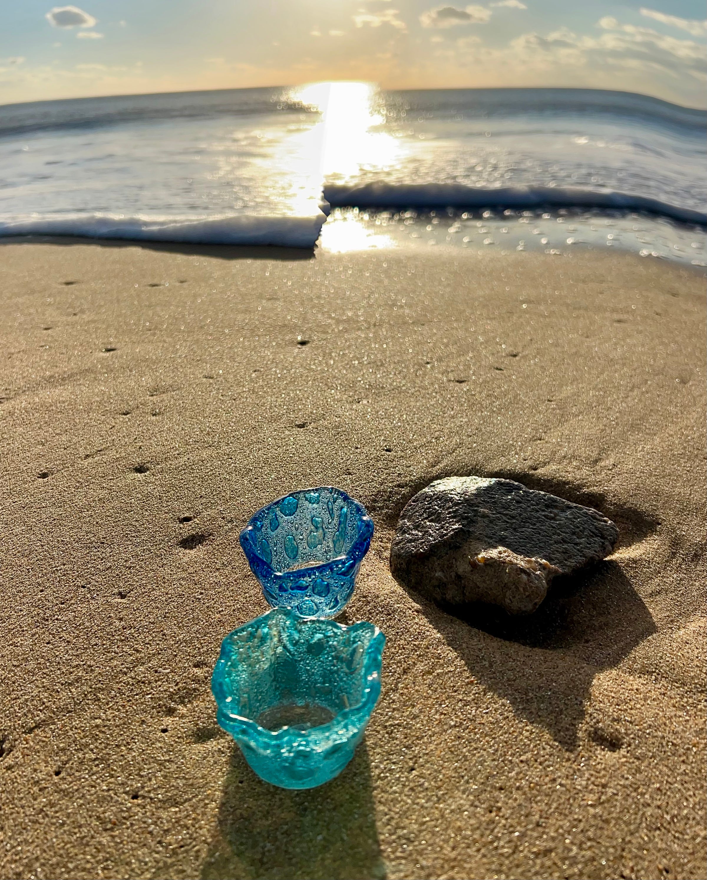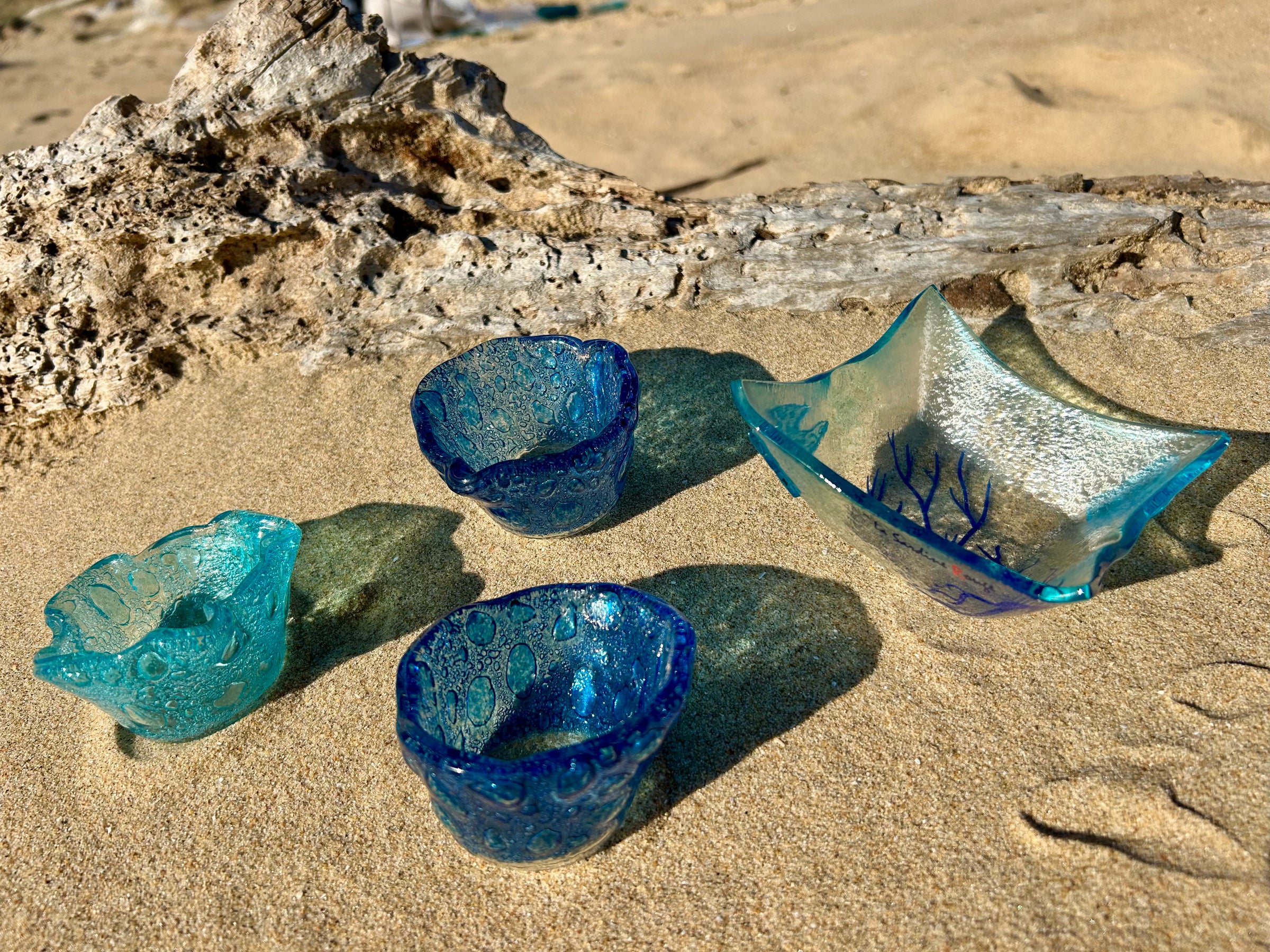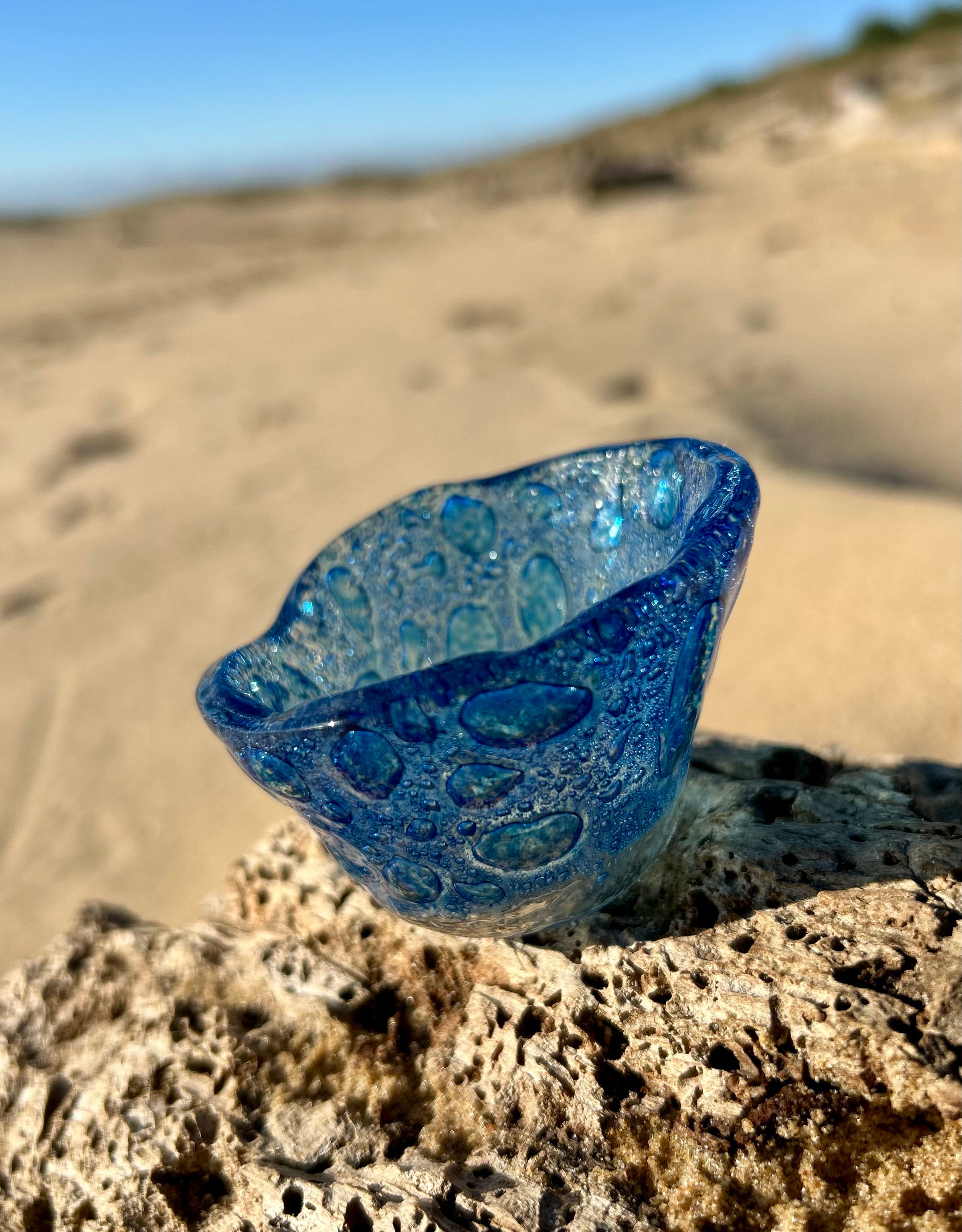 Découvrez ces délicates mini coupelles en verre de fusion, entièrement façonnées à la main dans l’atelier La Sardine Rouge. Leur forme organique, tout en courbes irrégulières, évoque de petits coquillages sculptés par les vagues.