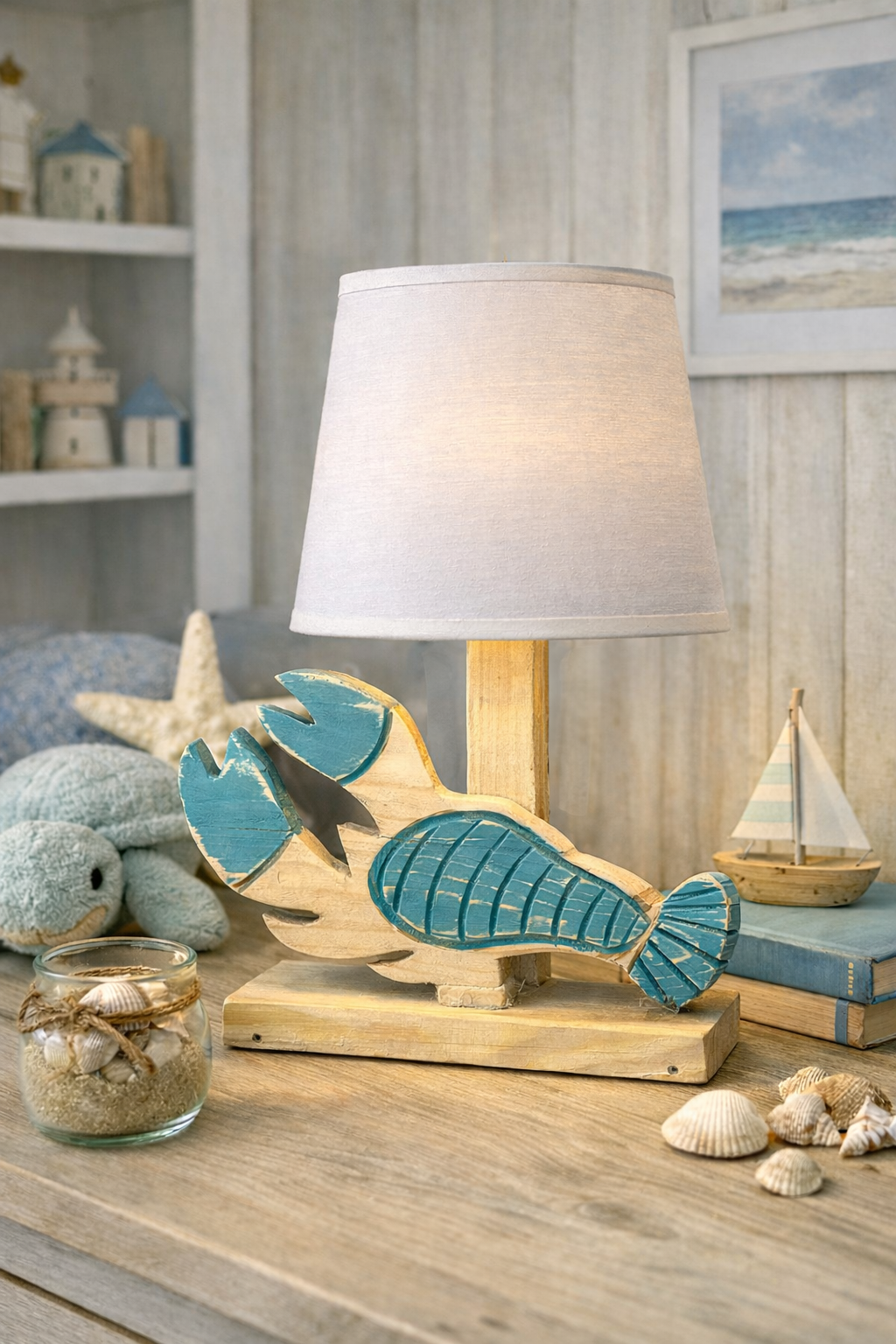 ✨ Une lampe artisanale pleine de douceur et de caractère, parfaite pour illuminer une chambre d’enfant avec une touche marine originale.
