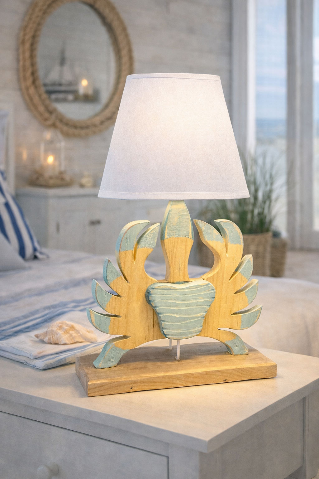 Réalisée à la main en série limitée, cette lampe est une pièce unique au charme authentique, qui apporte une vraie touche bord de mer à la décoration d’une chambre, tout en restant élégante et intemporelle.