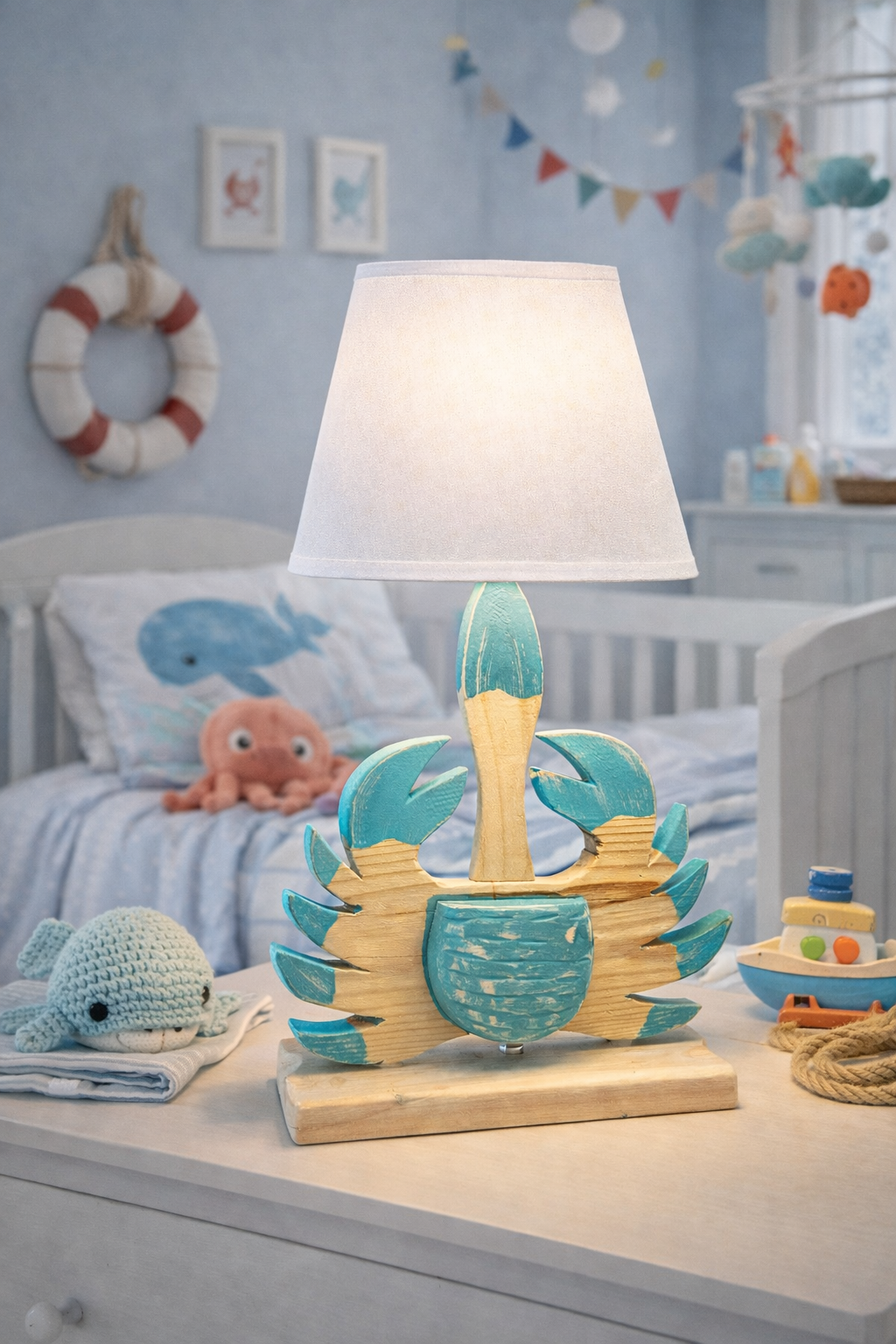 Craquez pour cette lampe artisanale pleine de tendresse, signée Les Créations de Marie, parfaite pour créer une ambiance douce et rassurante dans une chambre d’enfant 🦀✨