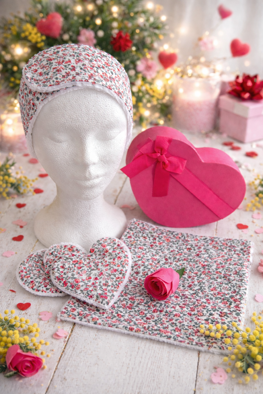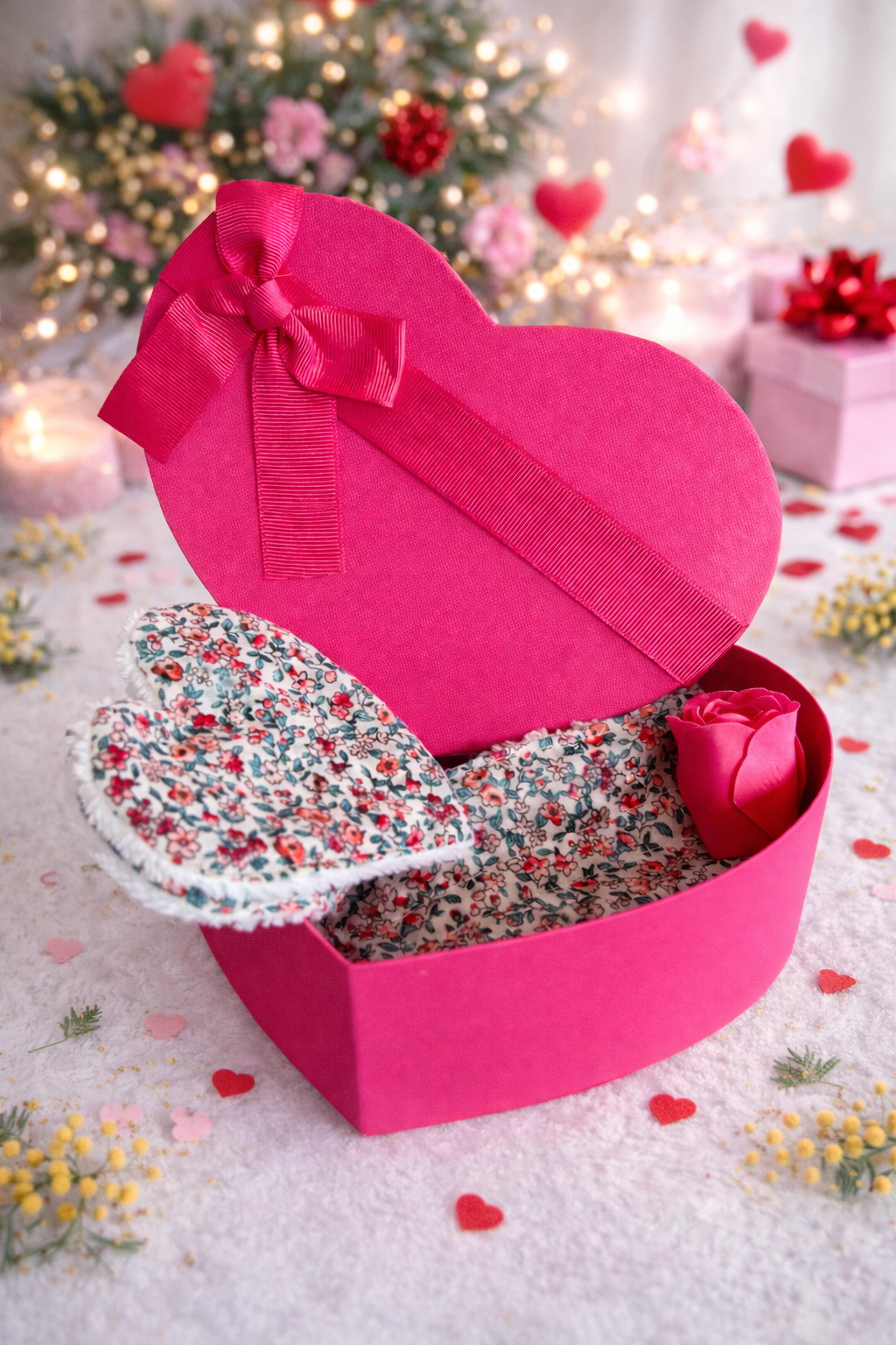 Cette boîte cadeau en forme de cœur renferme un assortiment raffiné d’accessoires doux et utiles, pensés pour transformer les petits gestes du quotidien en un véritable moment de soin.