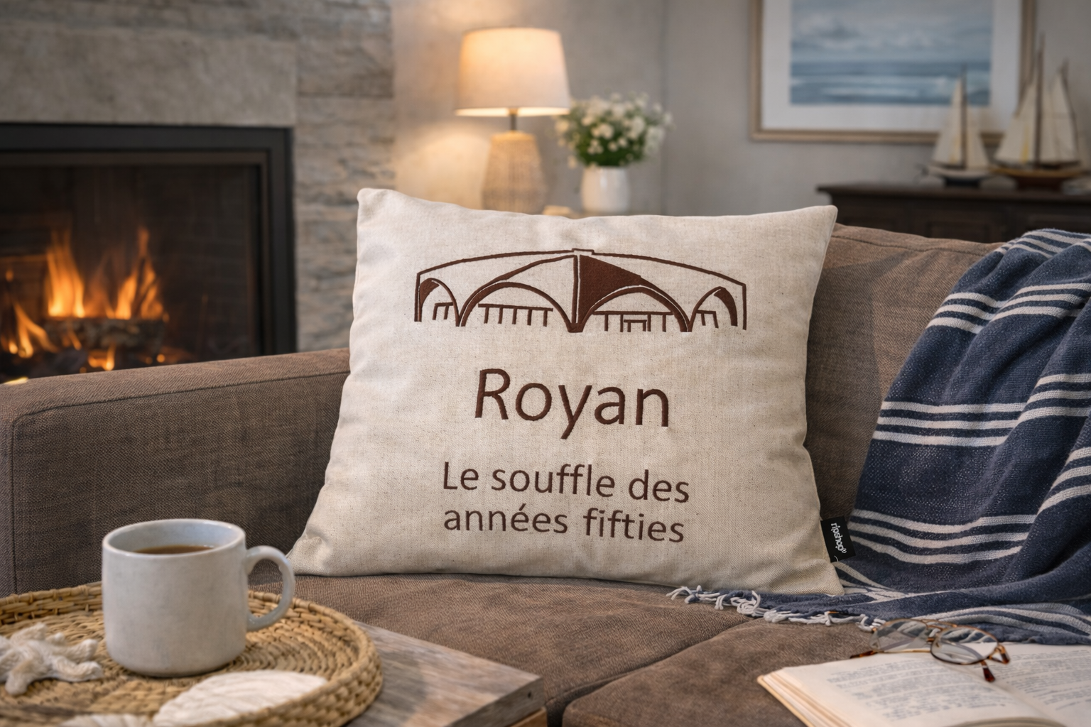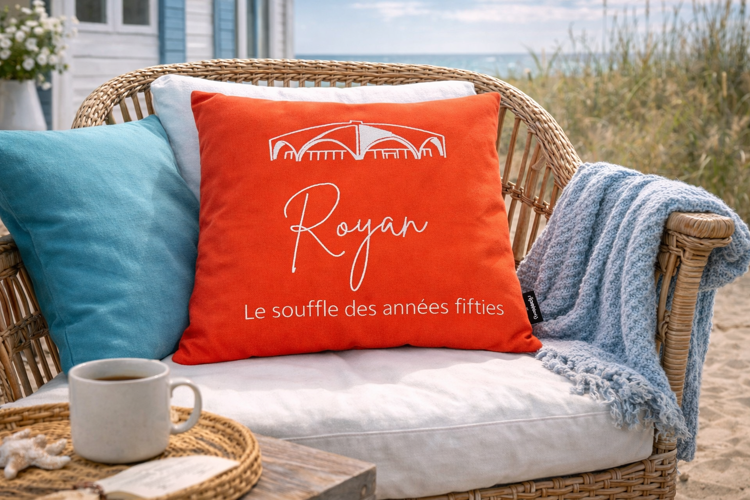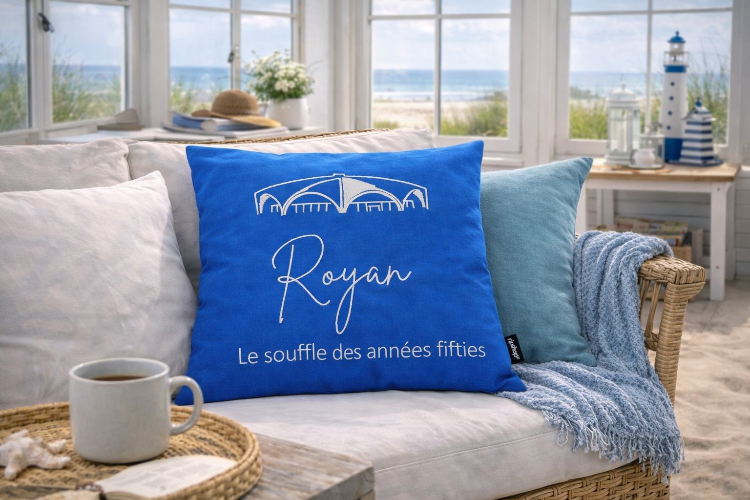 Ce coussin rend hommage Ă lâidentitĂ© artistique et architecturale de Royan. Il apporte instantanĂ©ment :