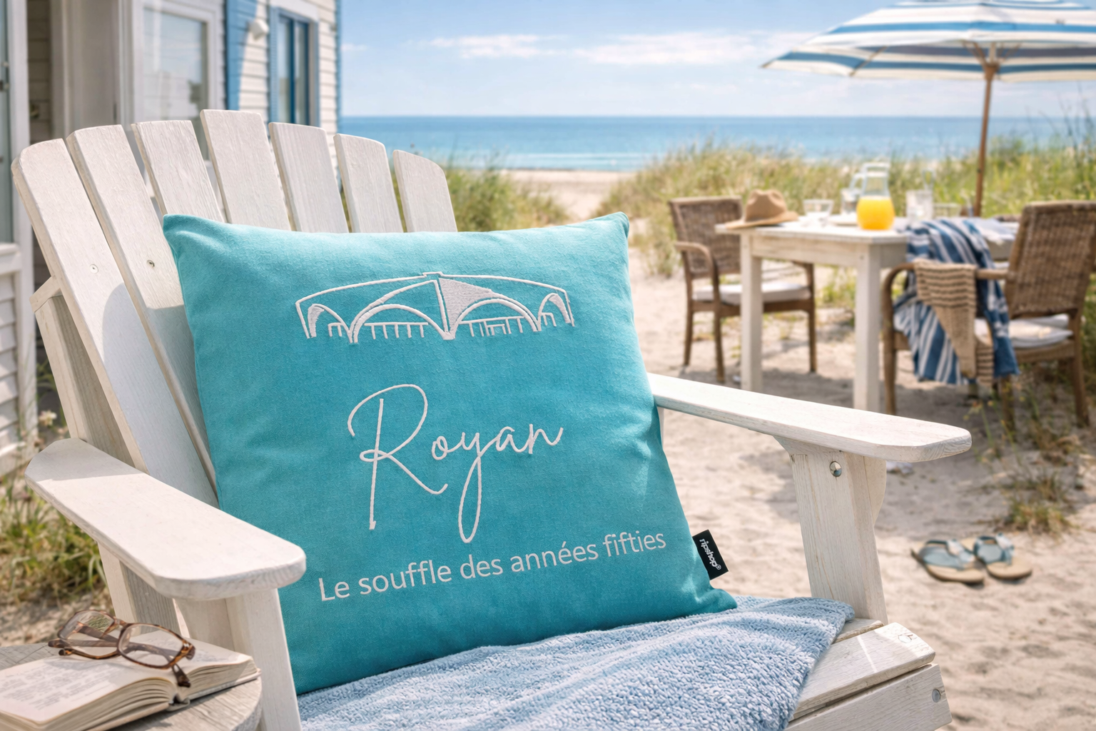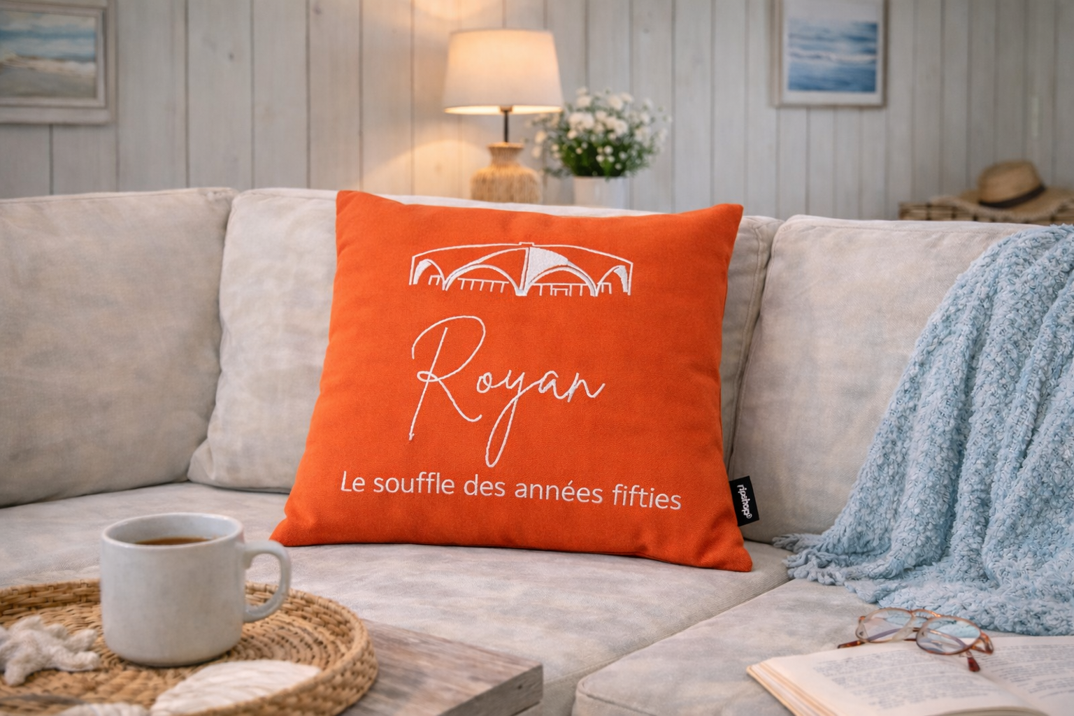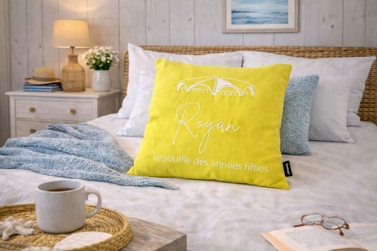 Ce coussin rend hommage Ă lâidentitĂ© artistique et architecturale de Royan. Il apporte instantanĂ©ment :