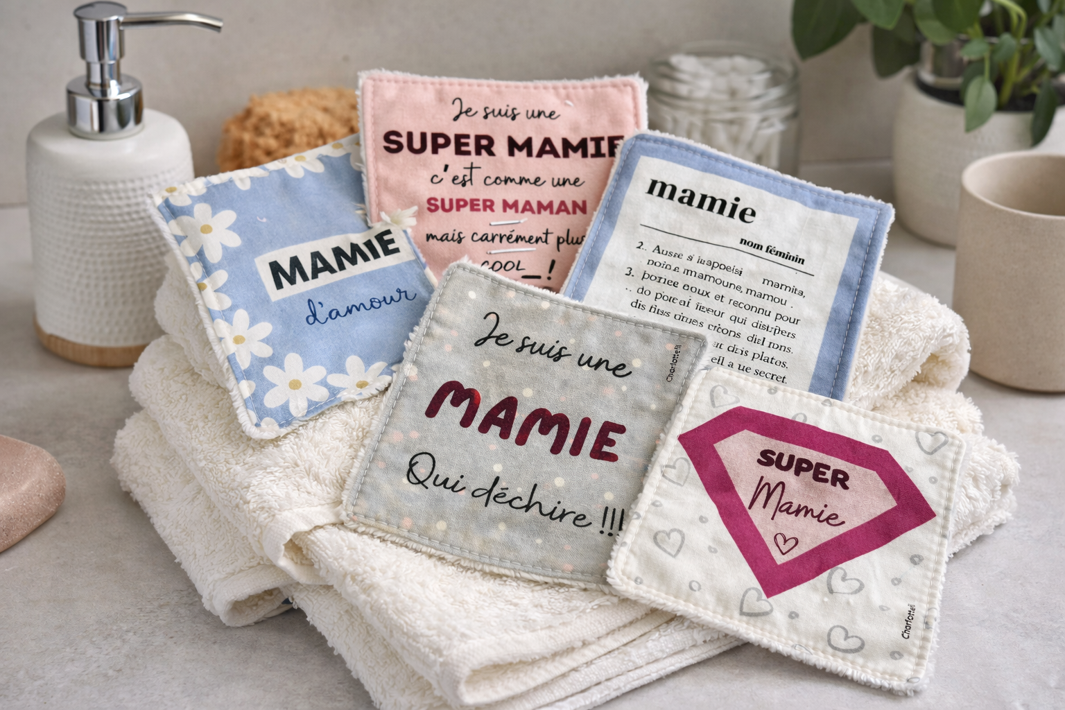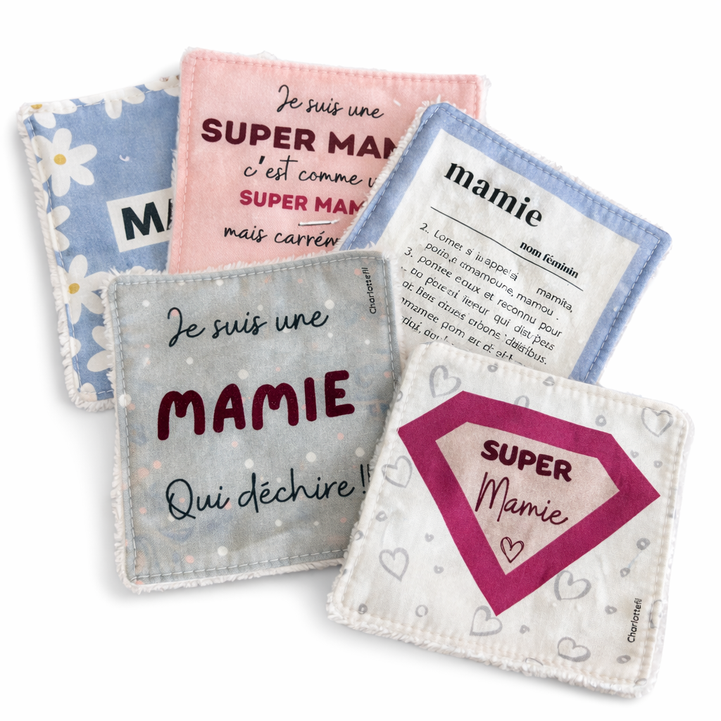 💝 Coffret 5 lingettes lavables - SpĂ©cial Mamie