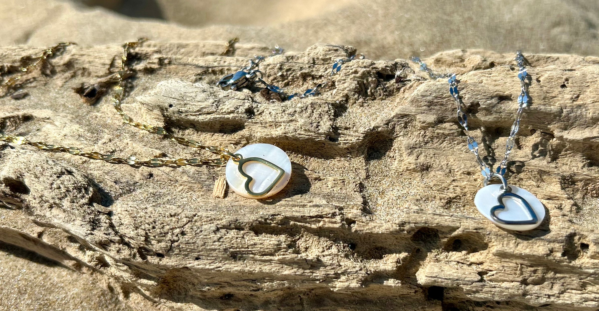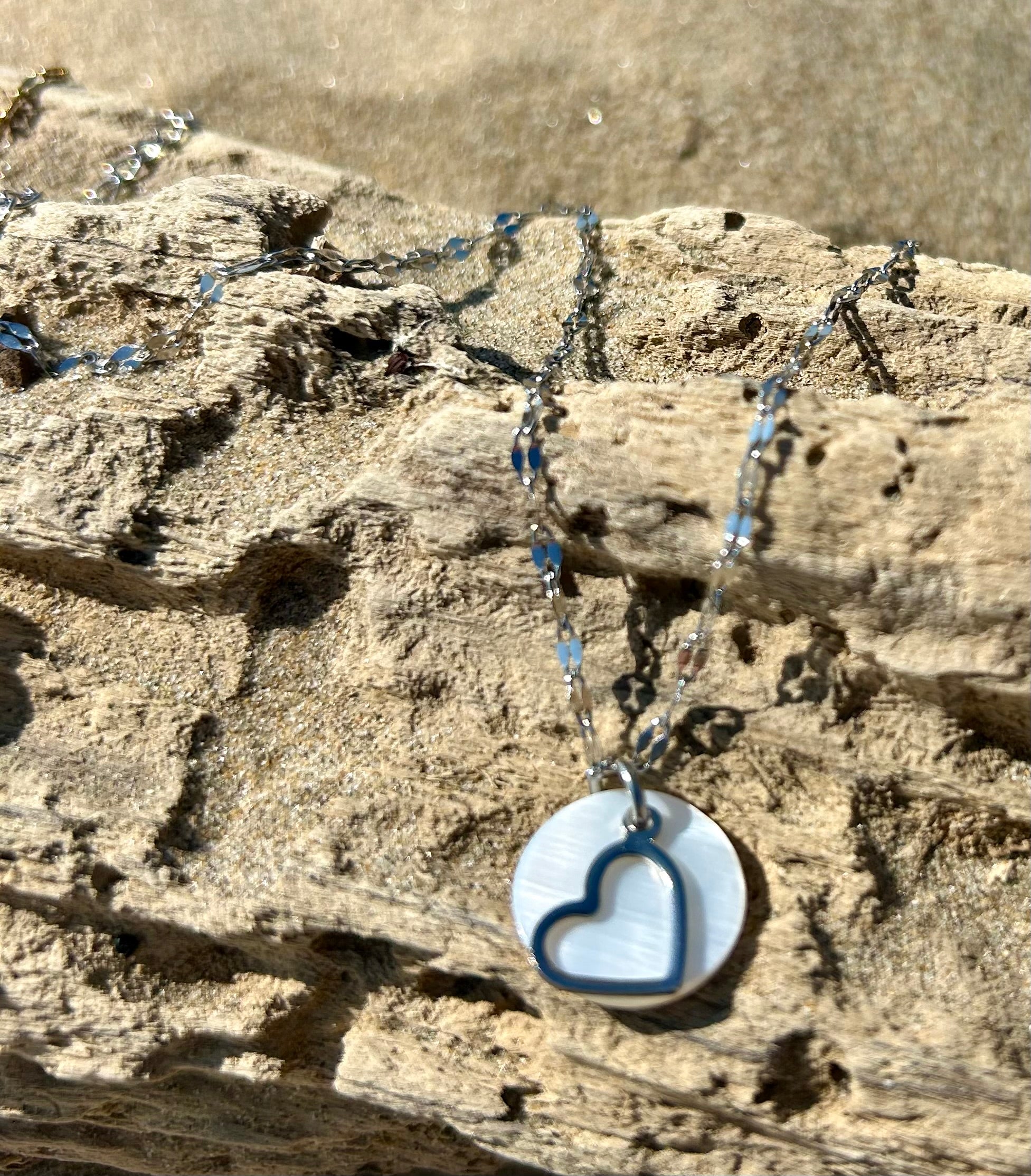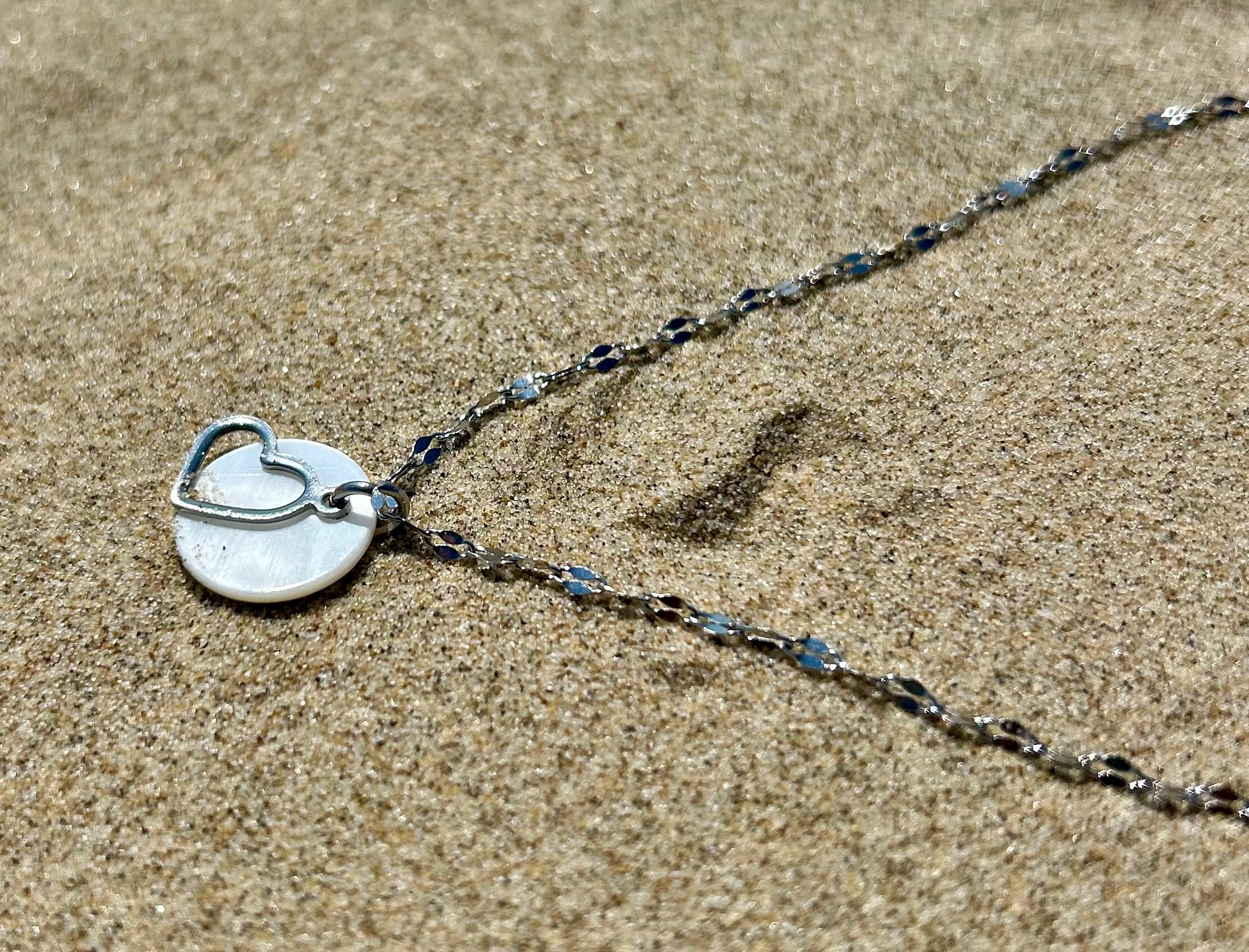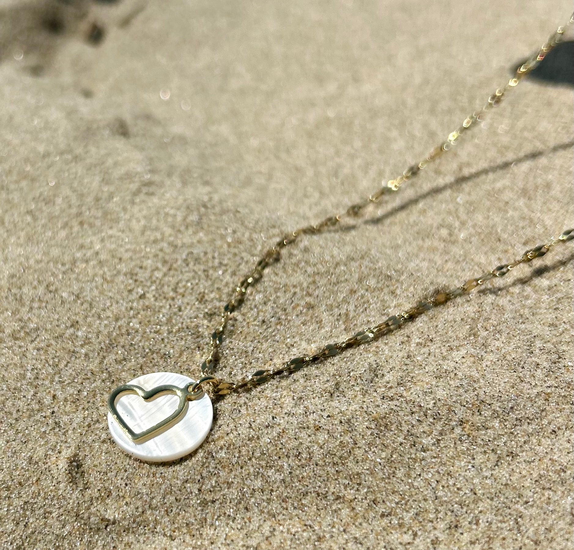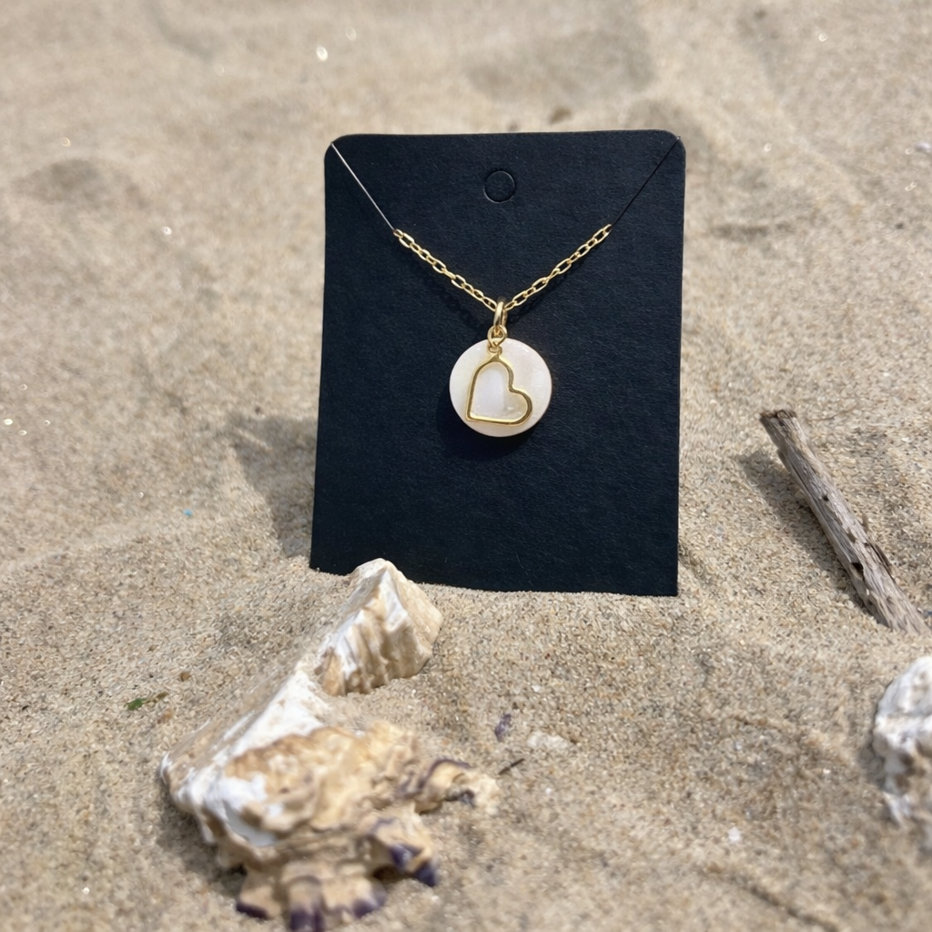 Inspiré par la mer et la lumière des rivages, ce collier associe la pureté de la nacre à la simplicité d’un cœur, pour un bijou intemporel et plein de sens.