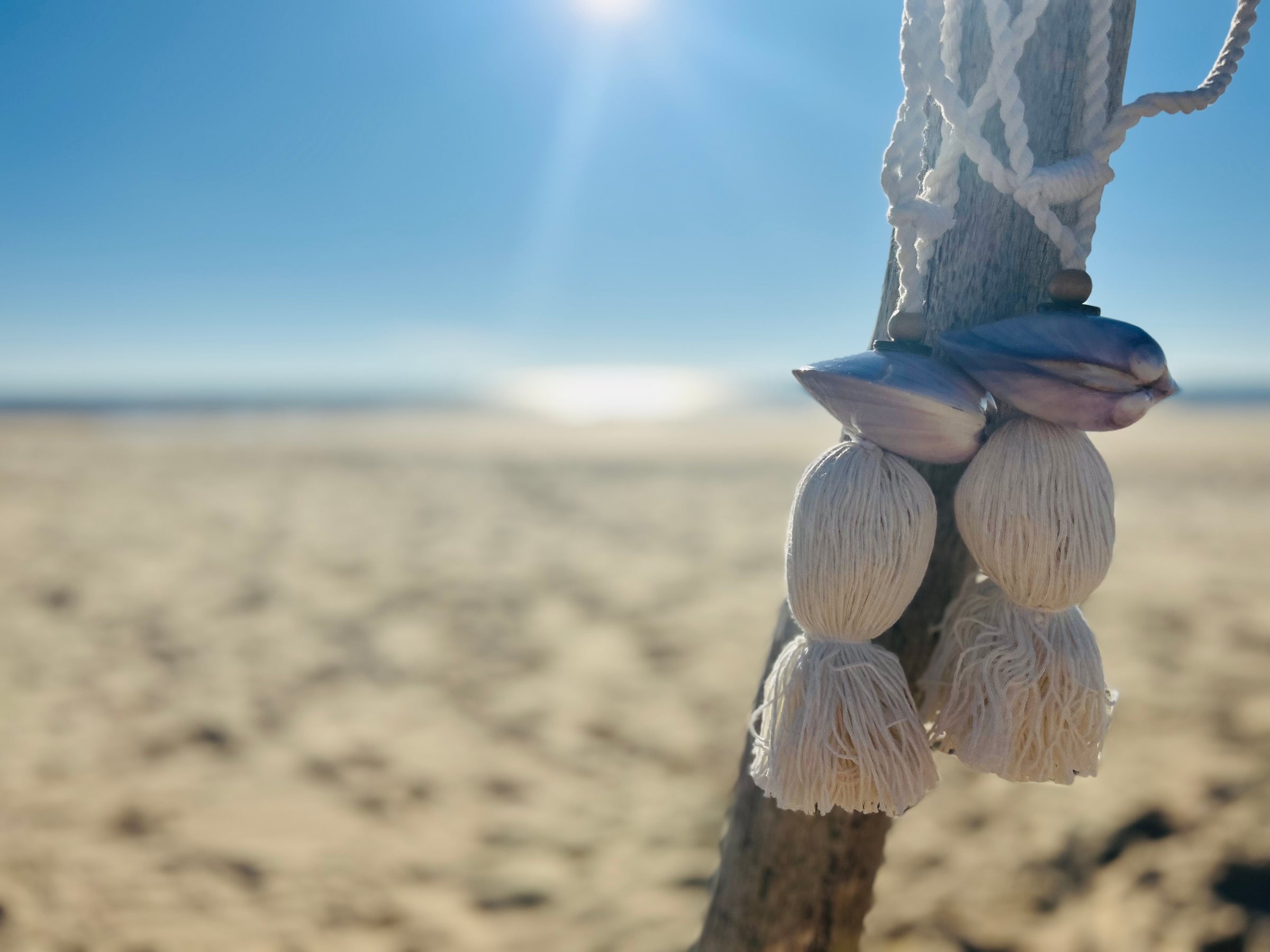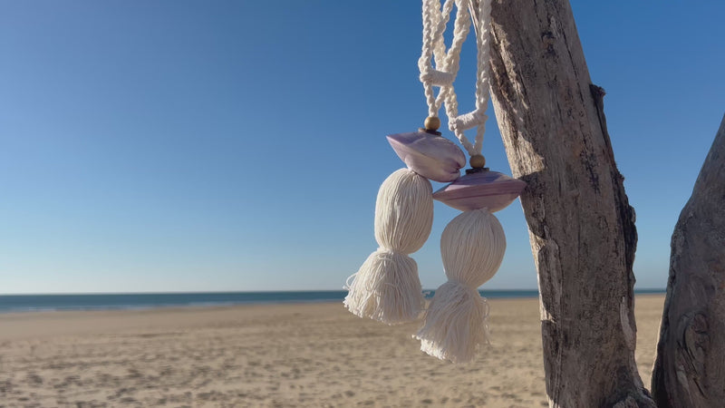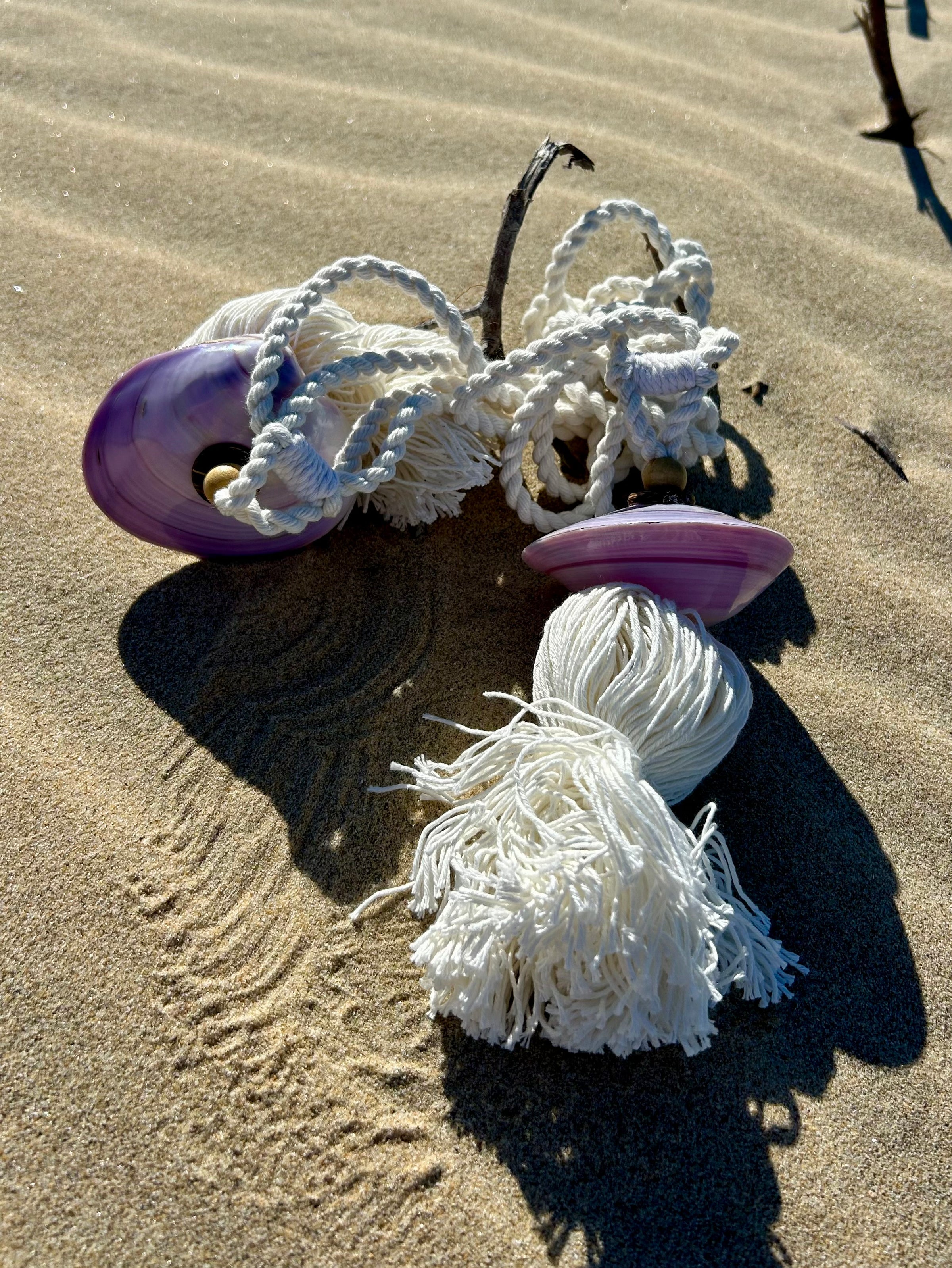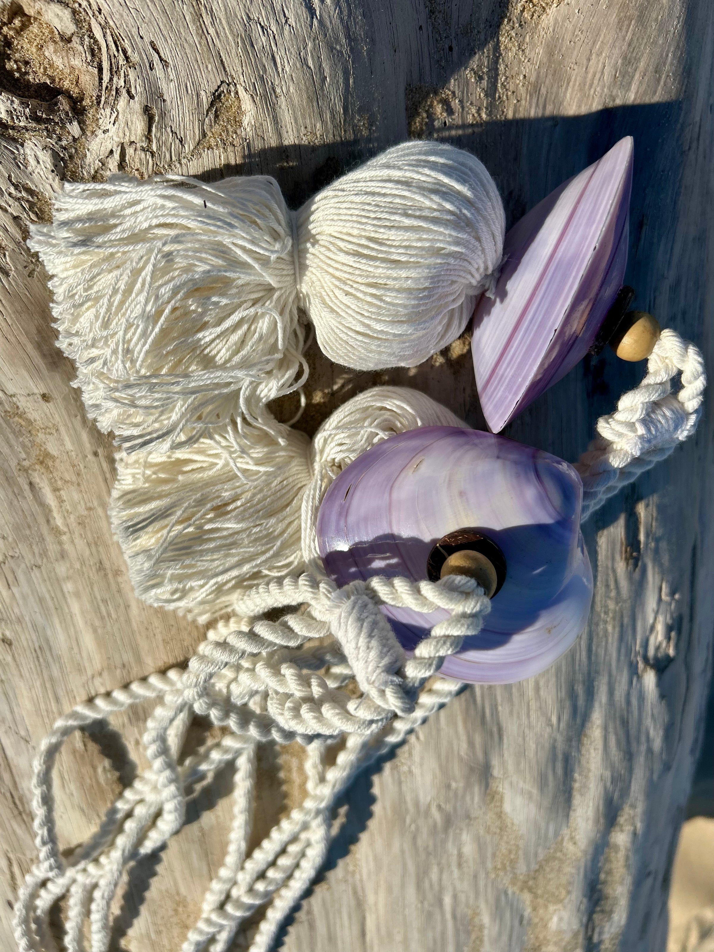 Le coquillage bivalve, aux reflets violets et nacrés uniques, s’allie à la corde en coton tressé pour créer une décoration marine élégante et authentique, parfaite pour sublimer vos rideaux ou ajouter une note bord de mer à votre déco.