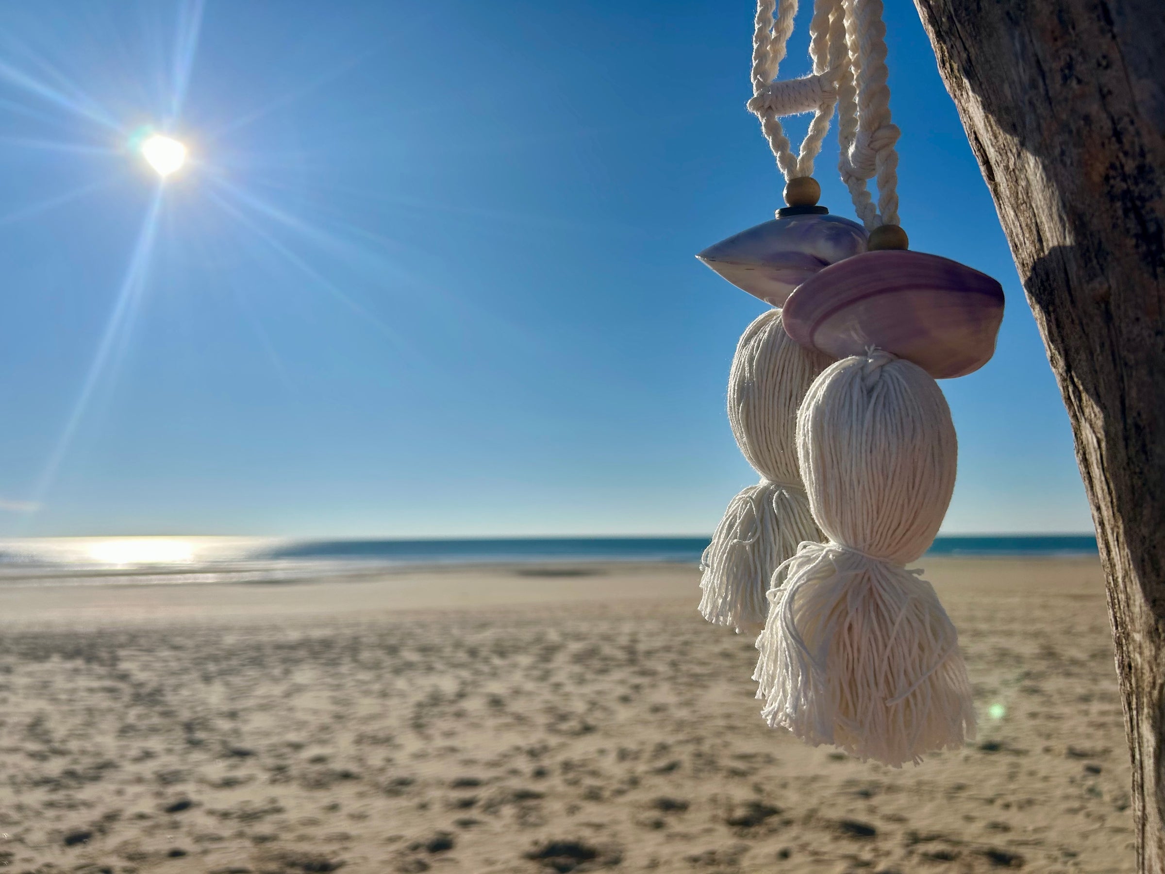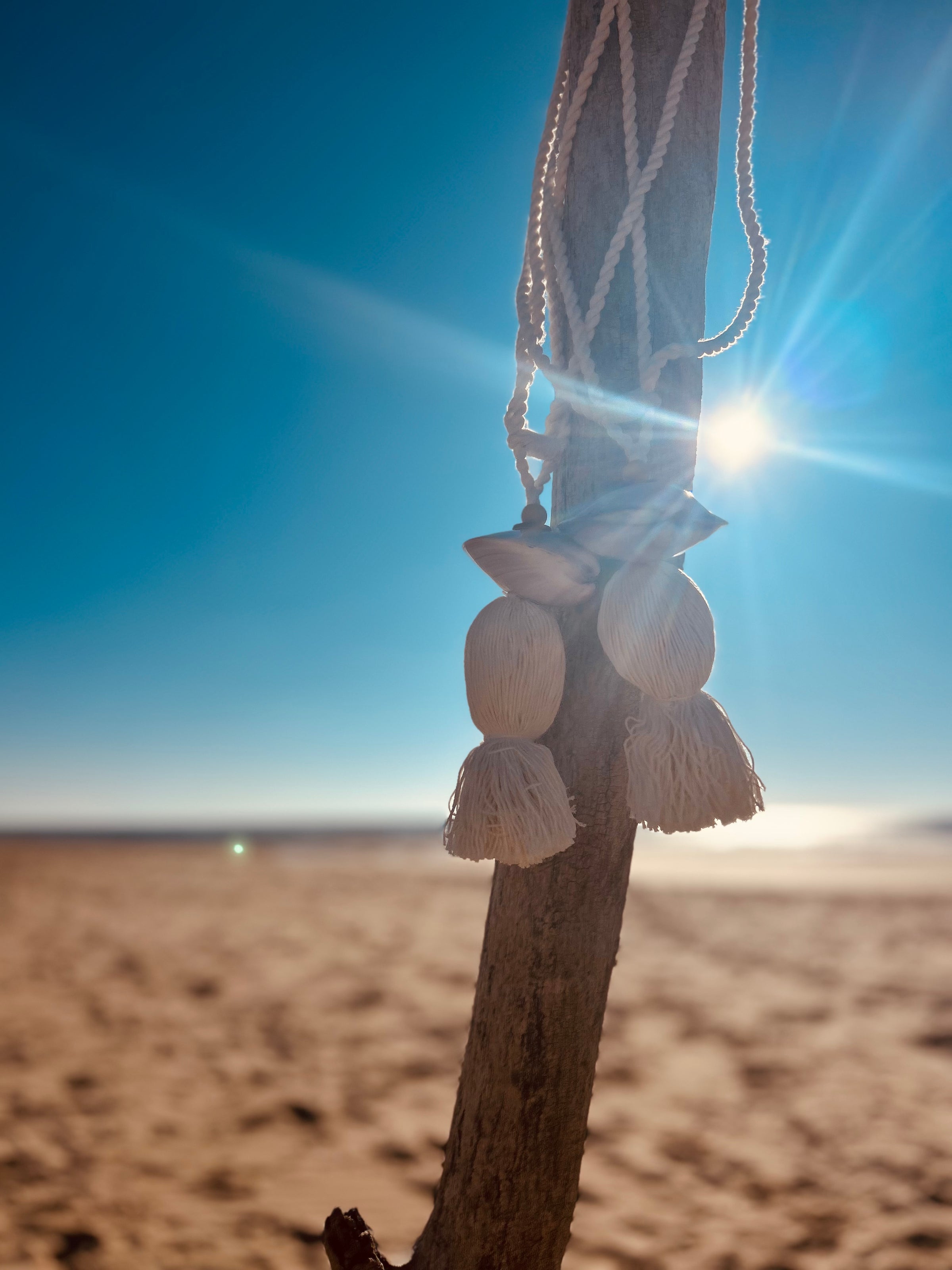 🌿 Matériaux : Coquillage naturel, corde coton tressée, perles en bois