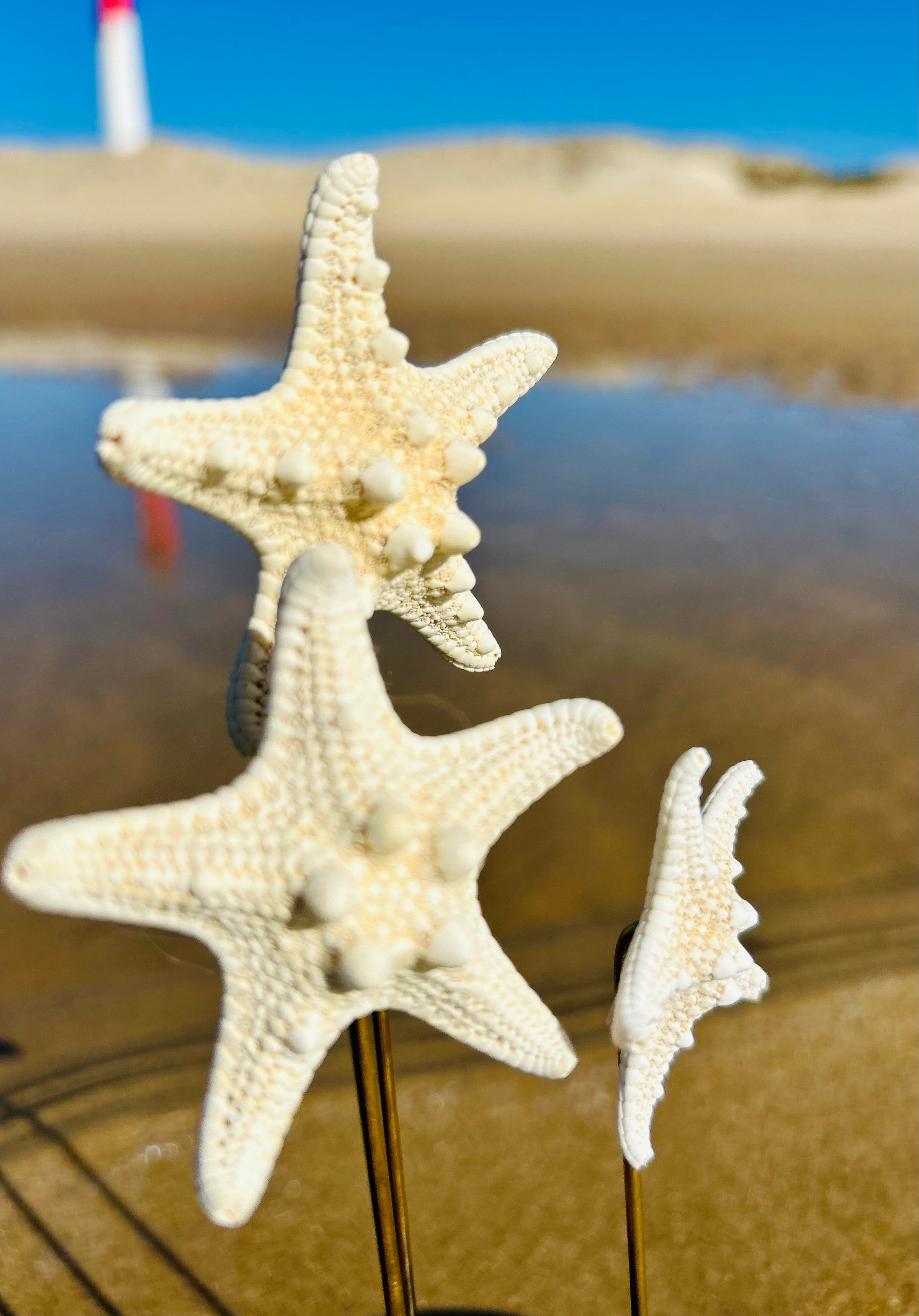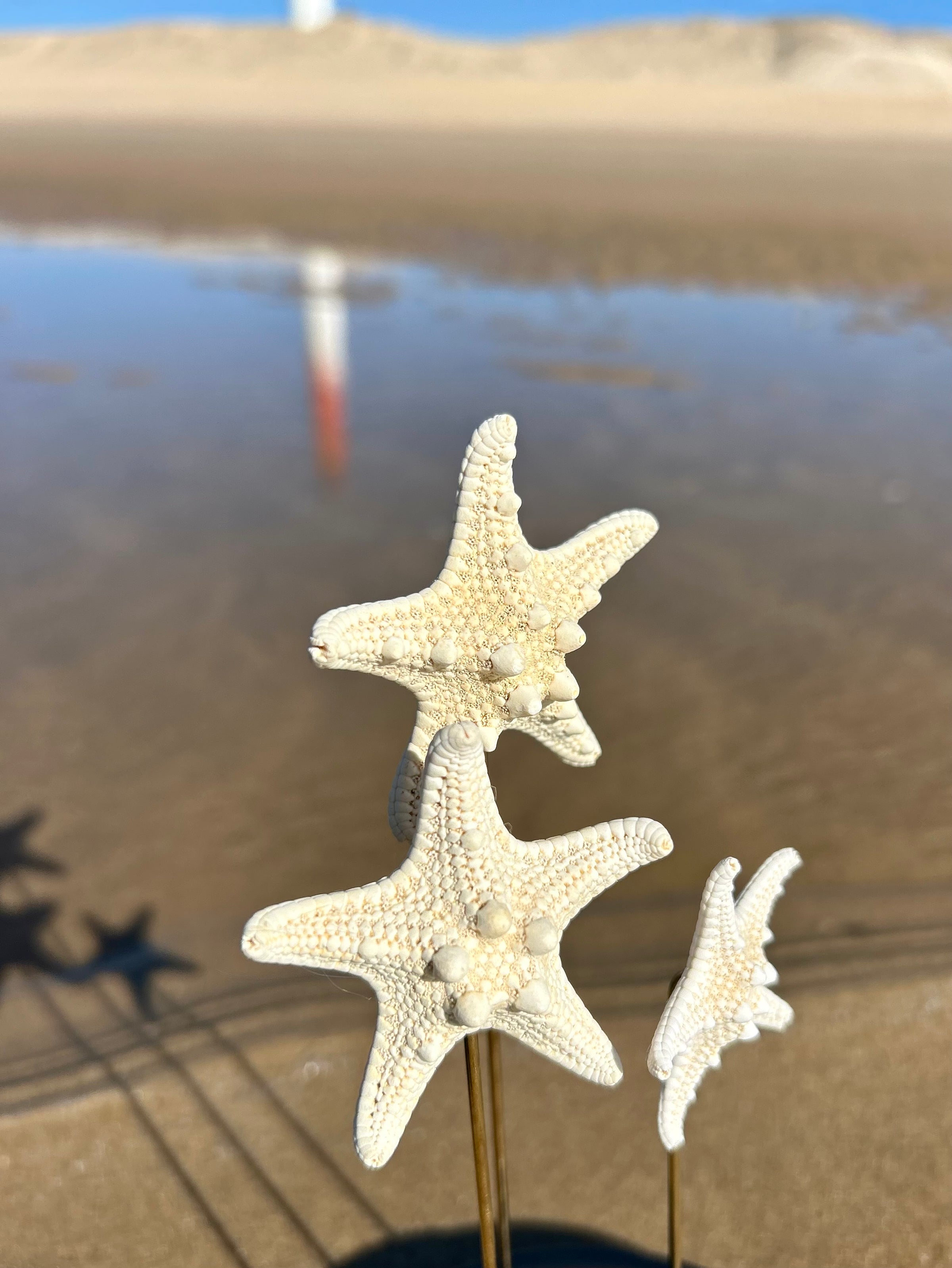 Façonnée à la main par AN ATOLL, cette création artisanale marie le charme brut de la nature marine à l’élégance d’un design épuré. Sur son socle en bois noir, chaque étoile semble flotter, figée dans l’instant, pour inviter le regard au voyage.
