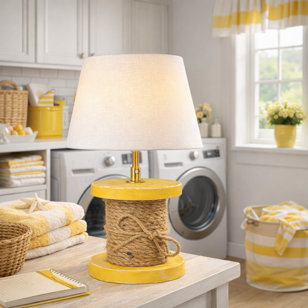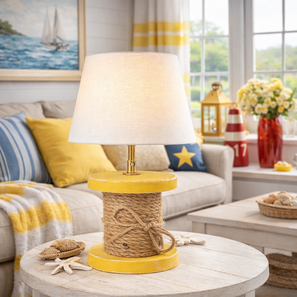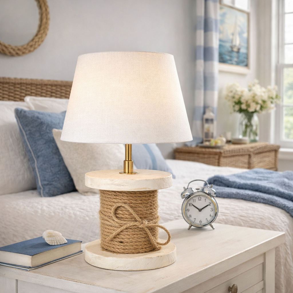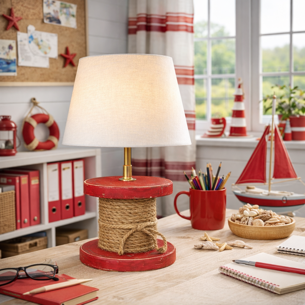 Apportez une touche authentique et chaleureuse à votre intérieur avec la lampe artisanale « Bobine marine », une création unique inspirée de l’univers bord de mer.