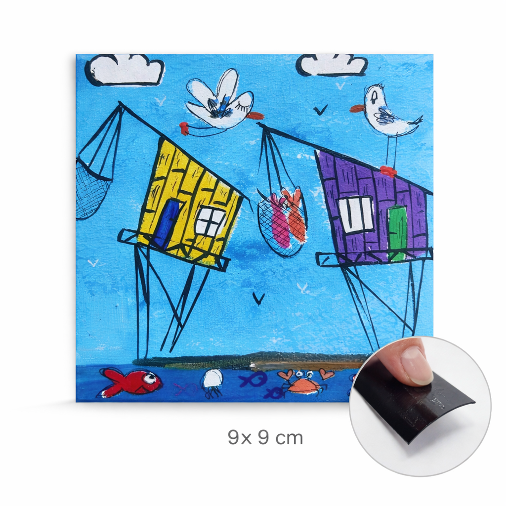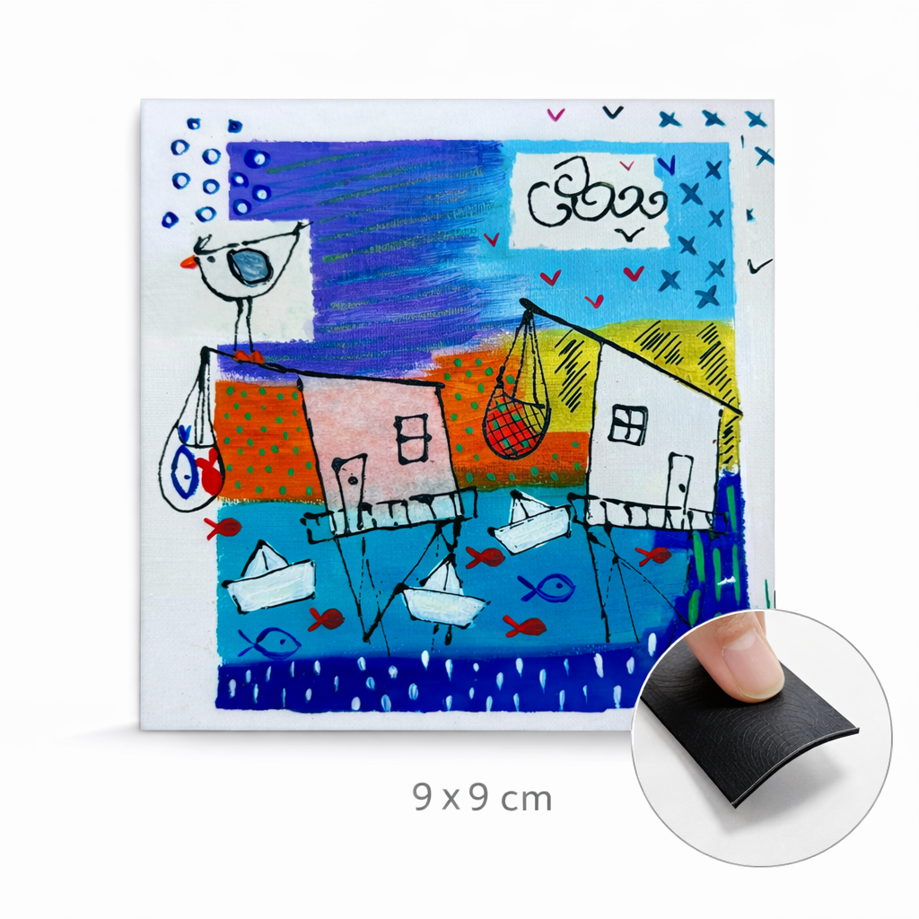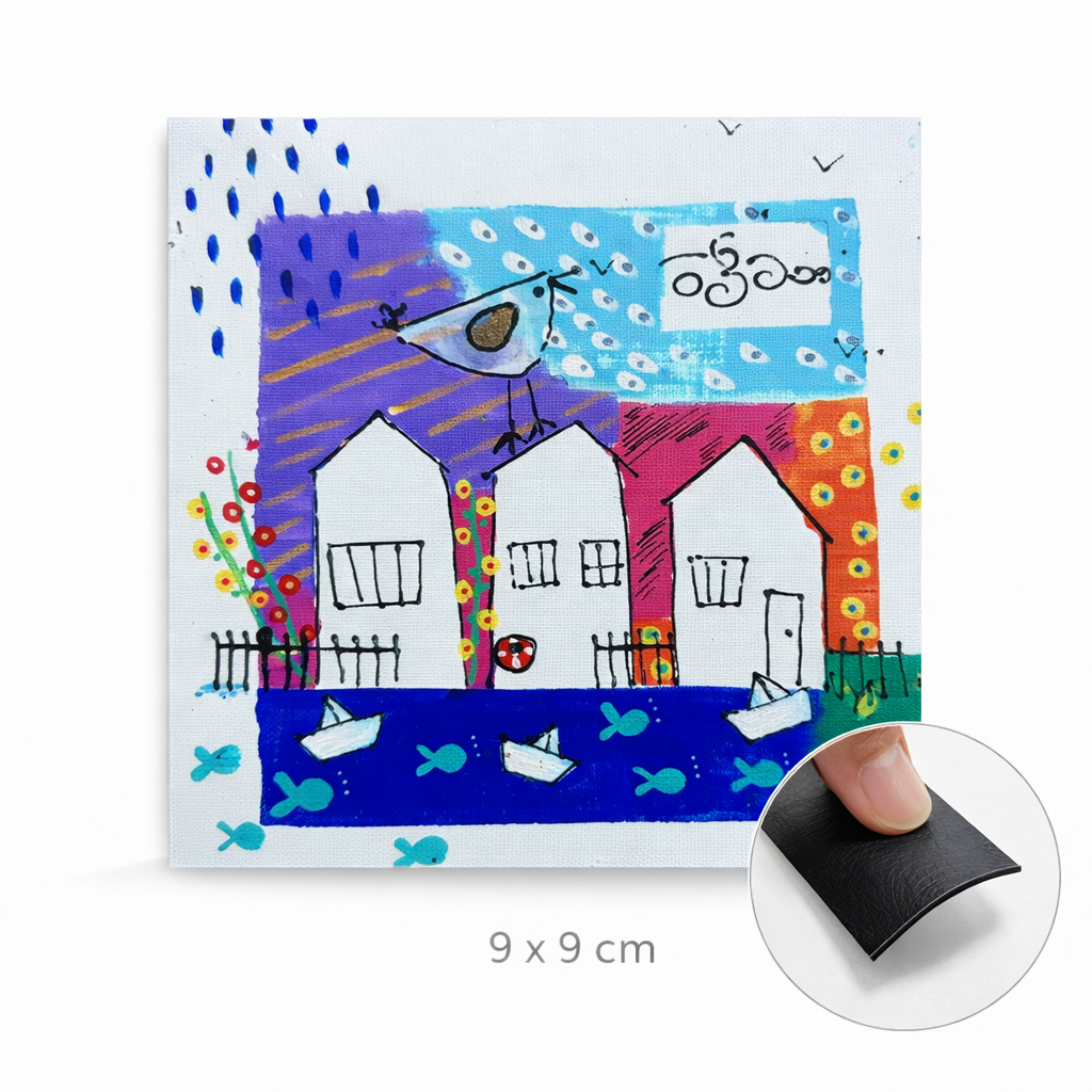 Inspirés de l’univers poétique et coloré de l’artiste, ces petits formats concentrent toute la fantaisie et la fraîcheur de ses œuvres : maisons stylisées, poissons malicieux, oiseaux tendres ou scènes marines pleines de vie.
