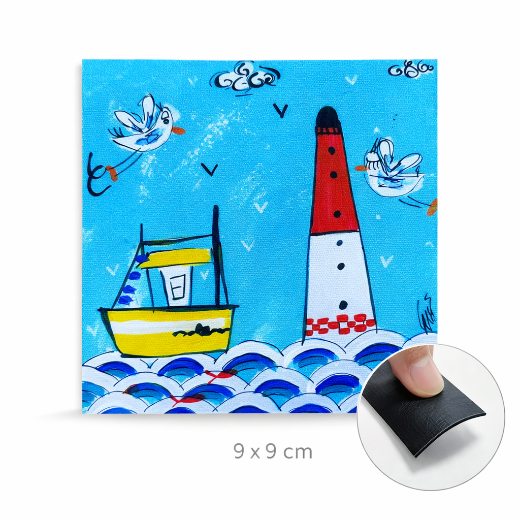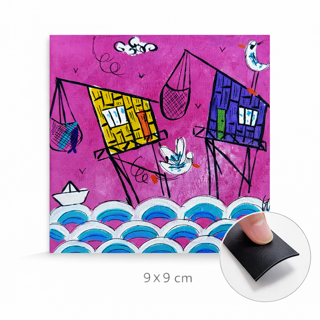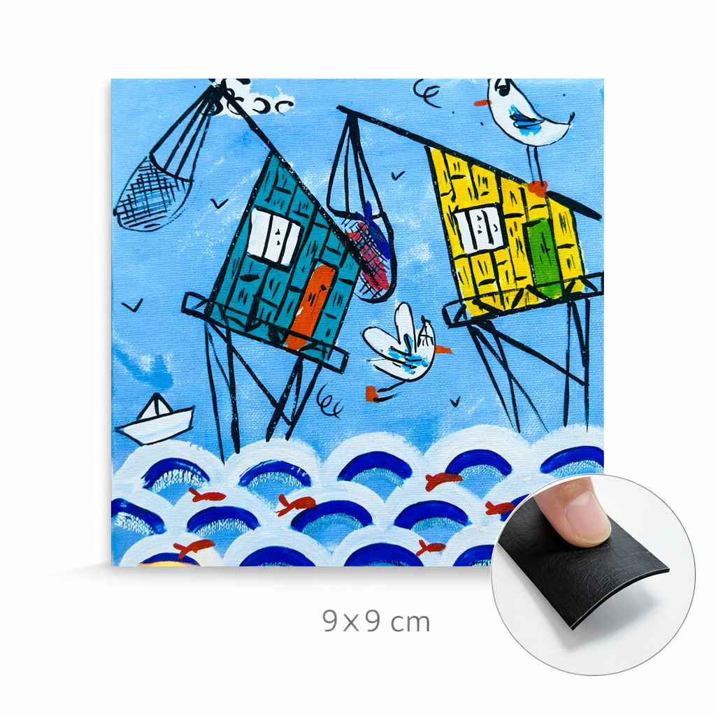 Inspirés de l’univers poétique et coloré de l’artiste, ces petits formats concentrent toute la fantaisie et la fraîcheur de ses œuvres : maisons stylisées, poissons malicieux, oiseaux tendres ou scènes marines pleines de vie.