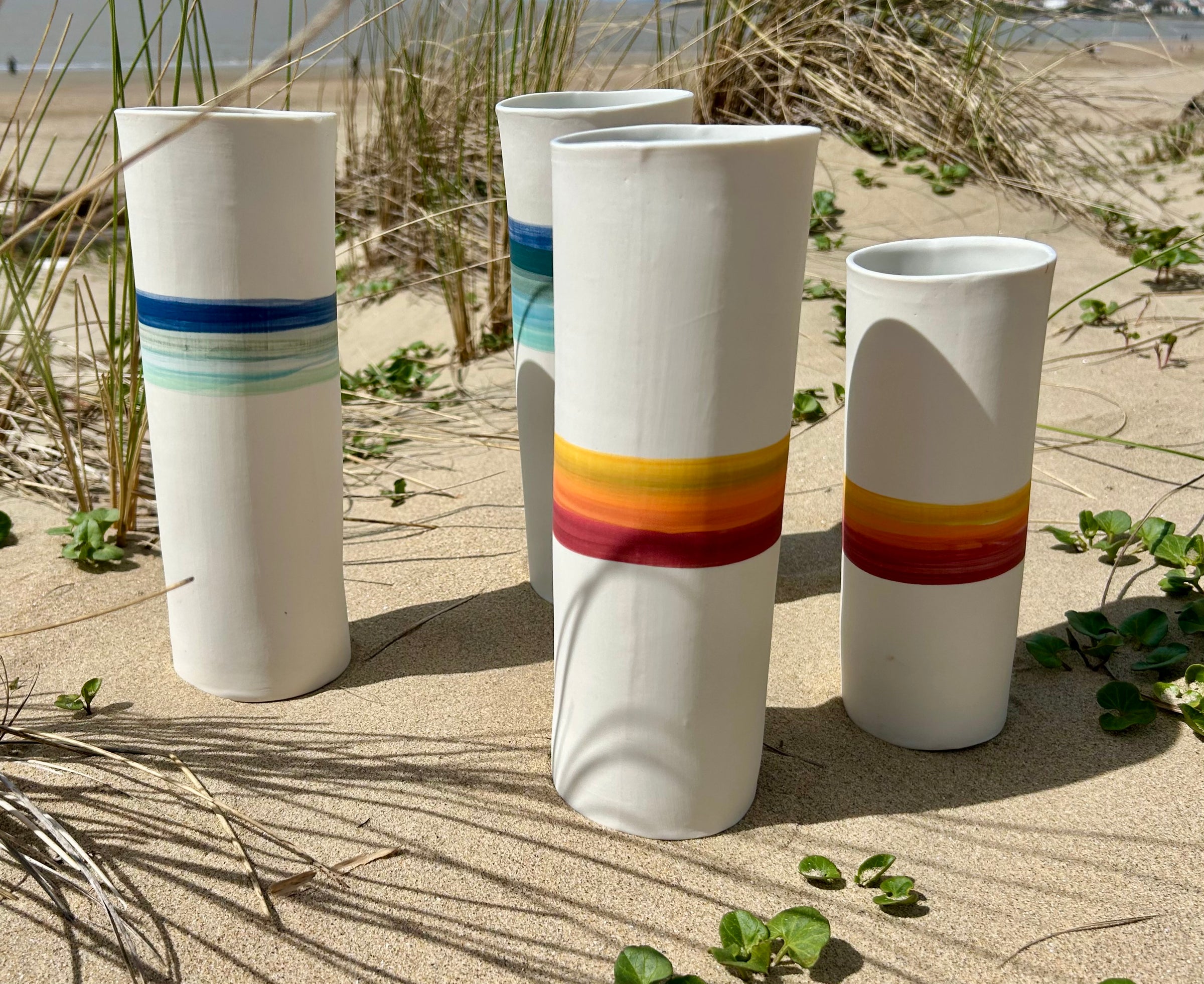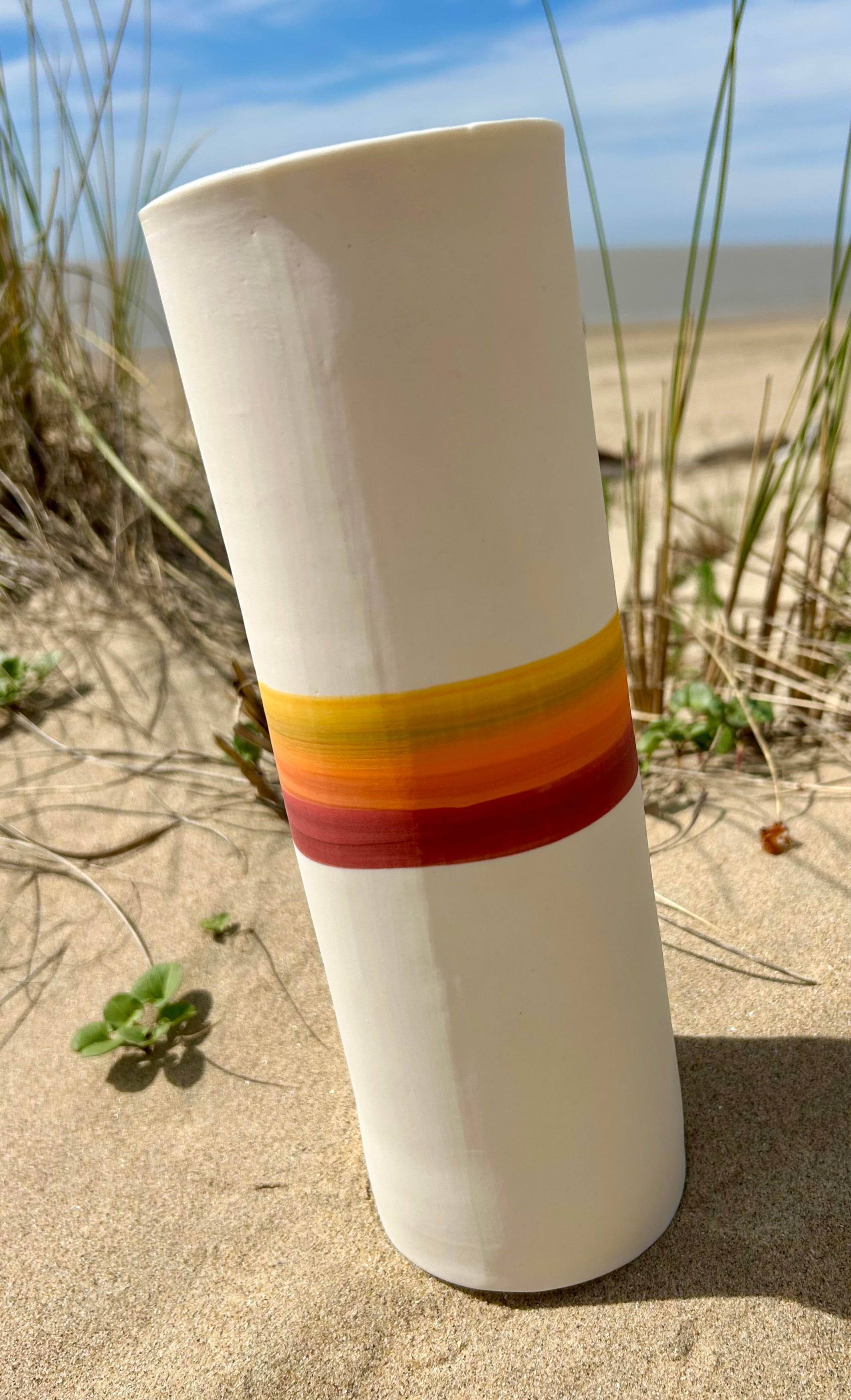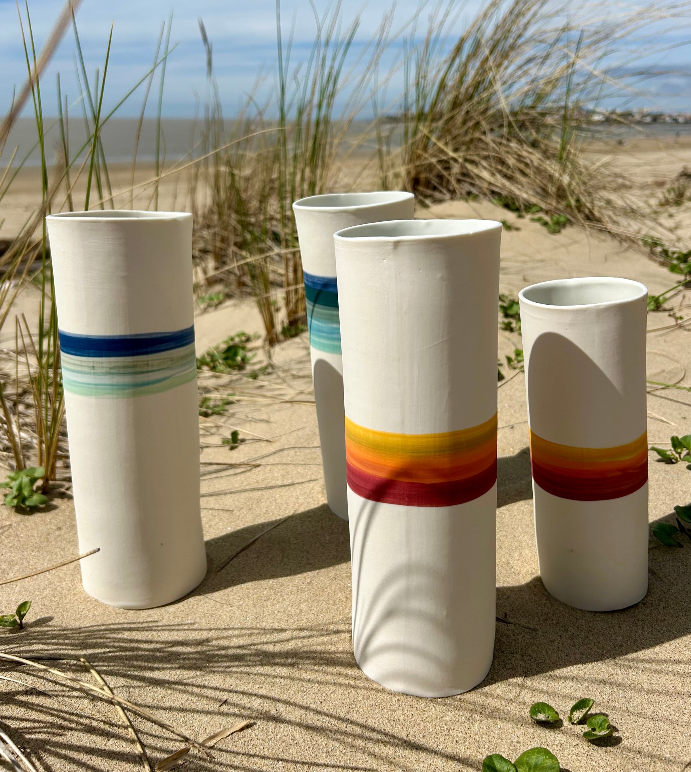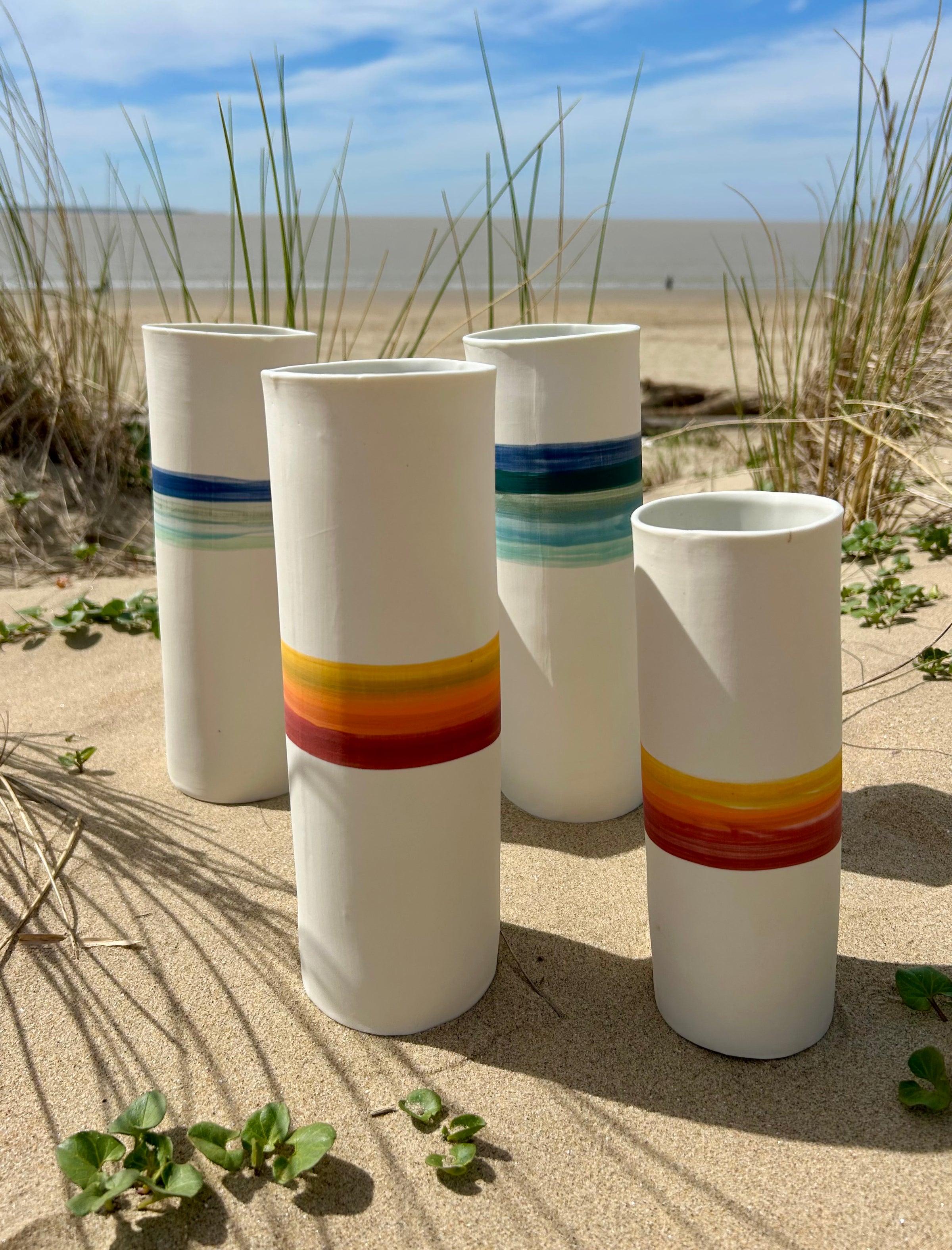 Entièrement façonnés à la main par l’Atelier Terres d’Angely, céramiste en Charente-Maritime, ces vases en porcelaine sont des pièces uniques issues d’un savoir-faire artisanal local. Chaque création reflète l’authenticité du geste et l’inspiration directe des paysages côtiers de la région.