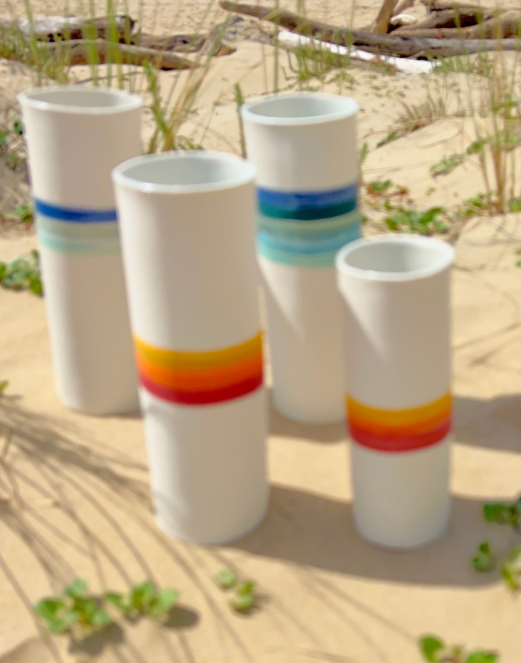 Ces vases peuvent être utilisés seuls comme objets décoratifs ou accueillir des fleurs séchées ou fraîches. Leur finesse et leurs nuances en font des pièces fortes qui subliment un intérieur bord de mer, contemporain ou minimaliste.