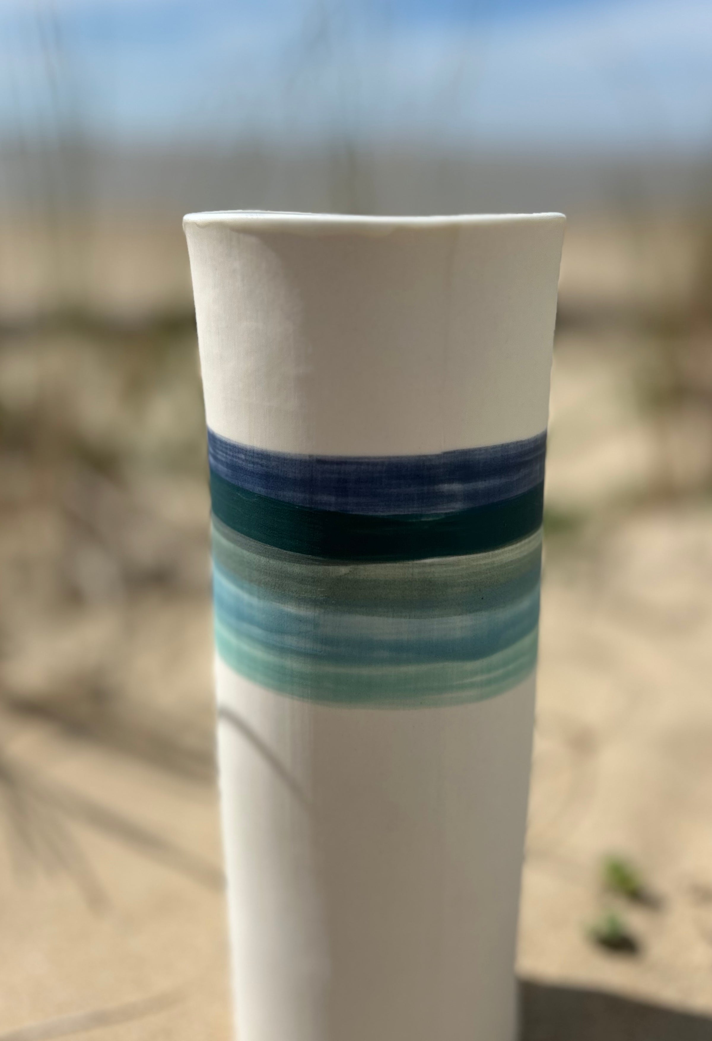 La collection Aube Littorale — Porcelaine du rivage célèbre la douceur des premières lumières sur le littoral. Chaque vase évoque un instant suspendu entre mer et ciel, où les couleurs se fondent avec délicatesse.