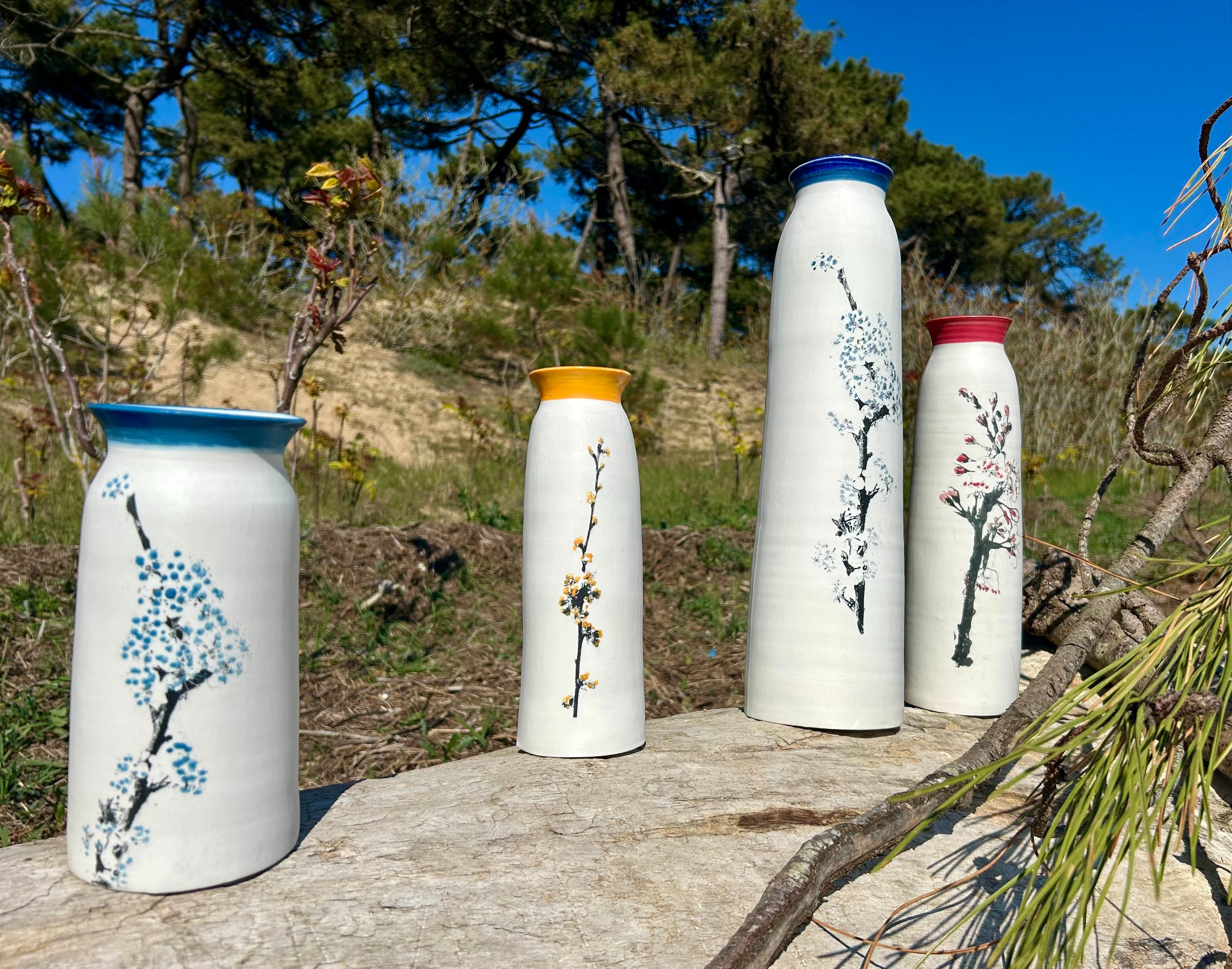 La collection Jardin du Littoral puise son inspiration dans la délicatesse des jardins japonais et la douceur du bord de mer. Chaque vase évoque une branche en fleurs portée par le vent, un instant suspendu entre nature et horizon marin.