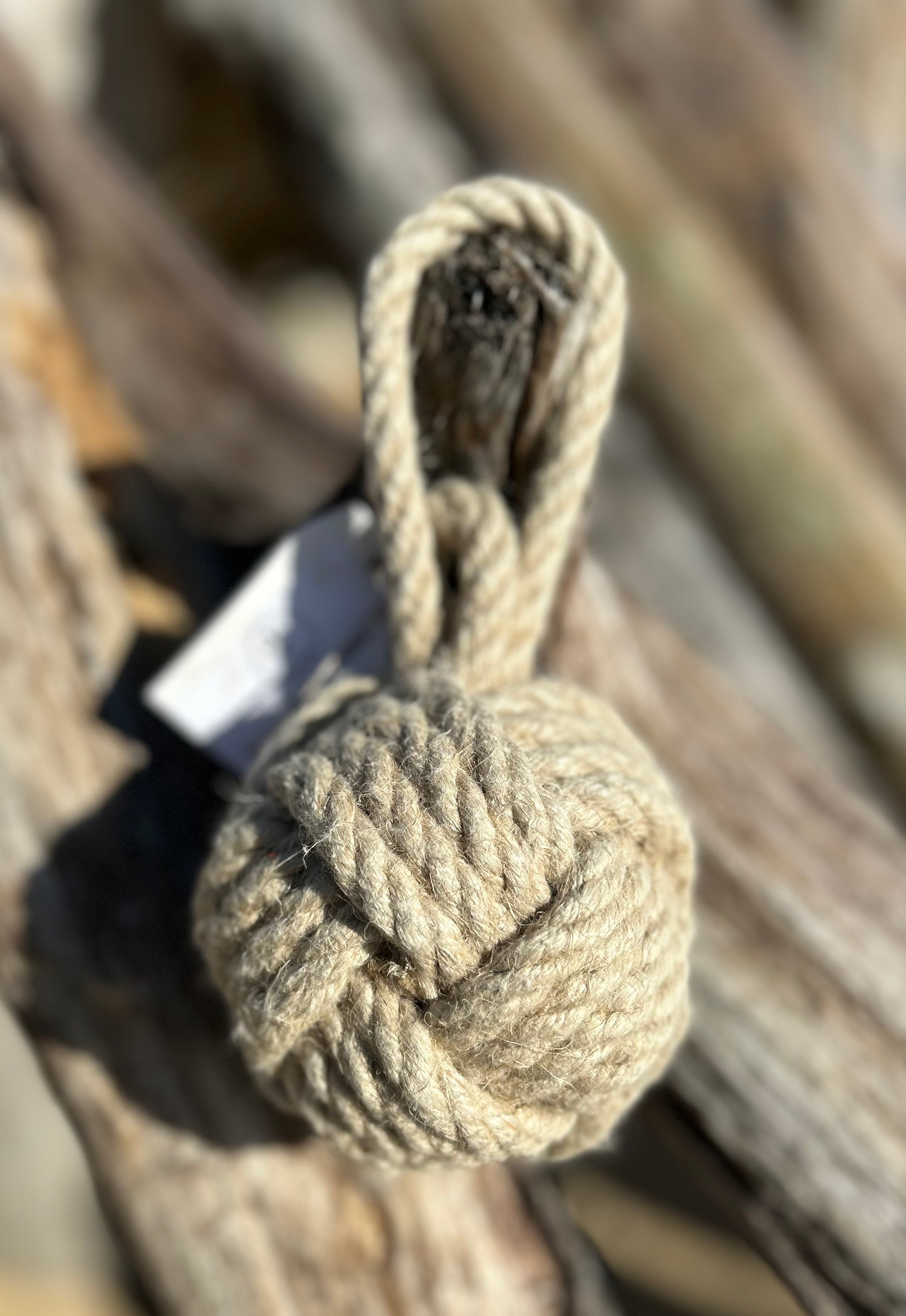 Réalisé en cordage de chanvre de 10 mm issu d’une fabrication artisanale française, ce cale-porte se distingue par sa robustesse et sa durabilité. Son diamètre d’environ 11 cm en fait un accessoire compact, discret et facile à déplacer.