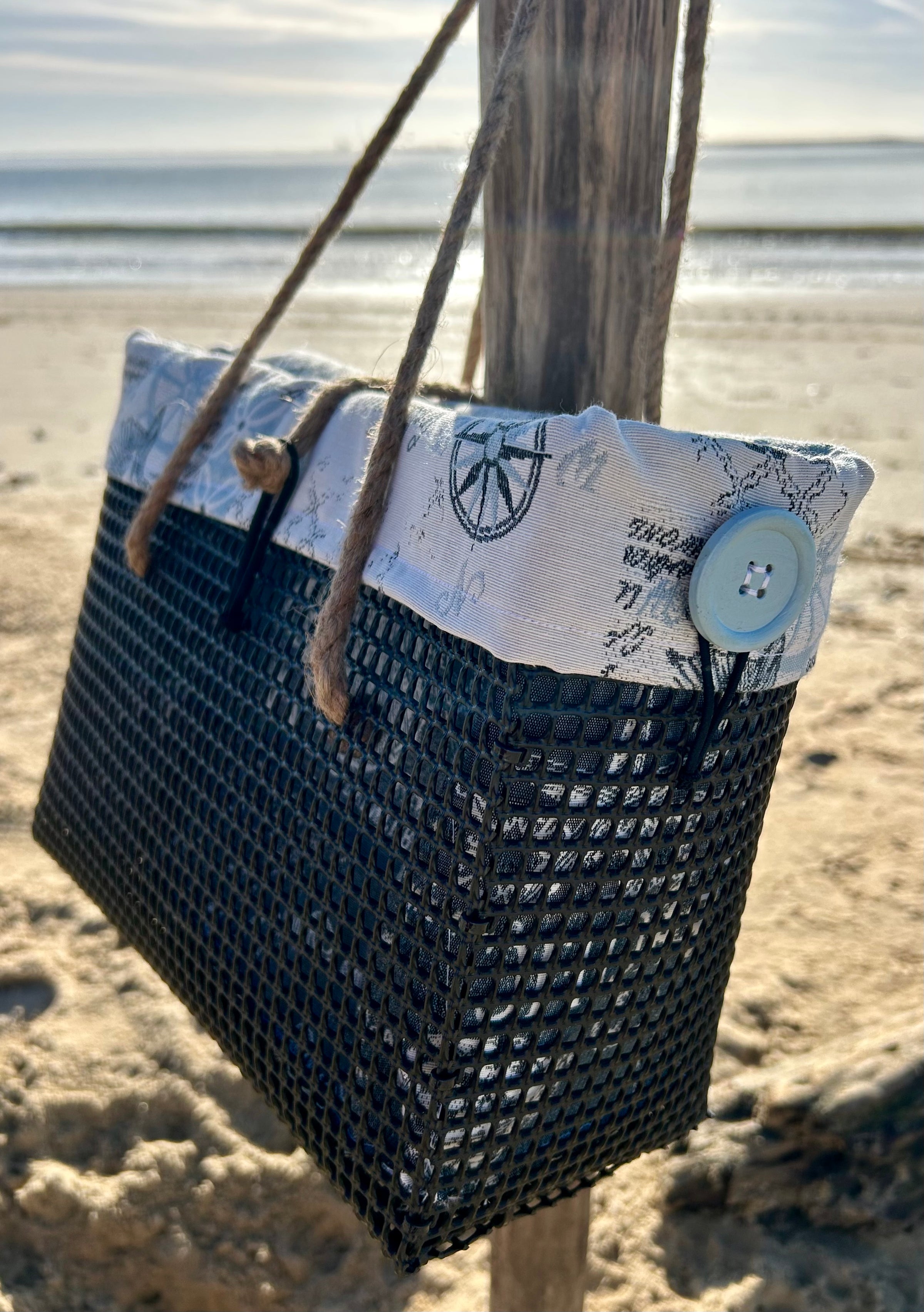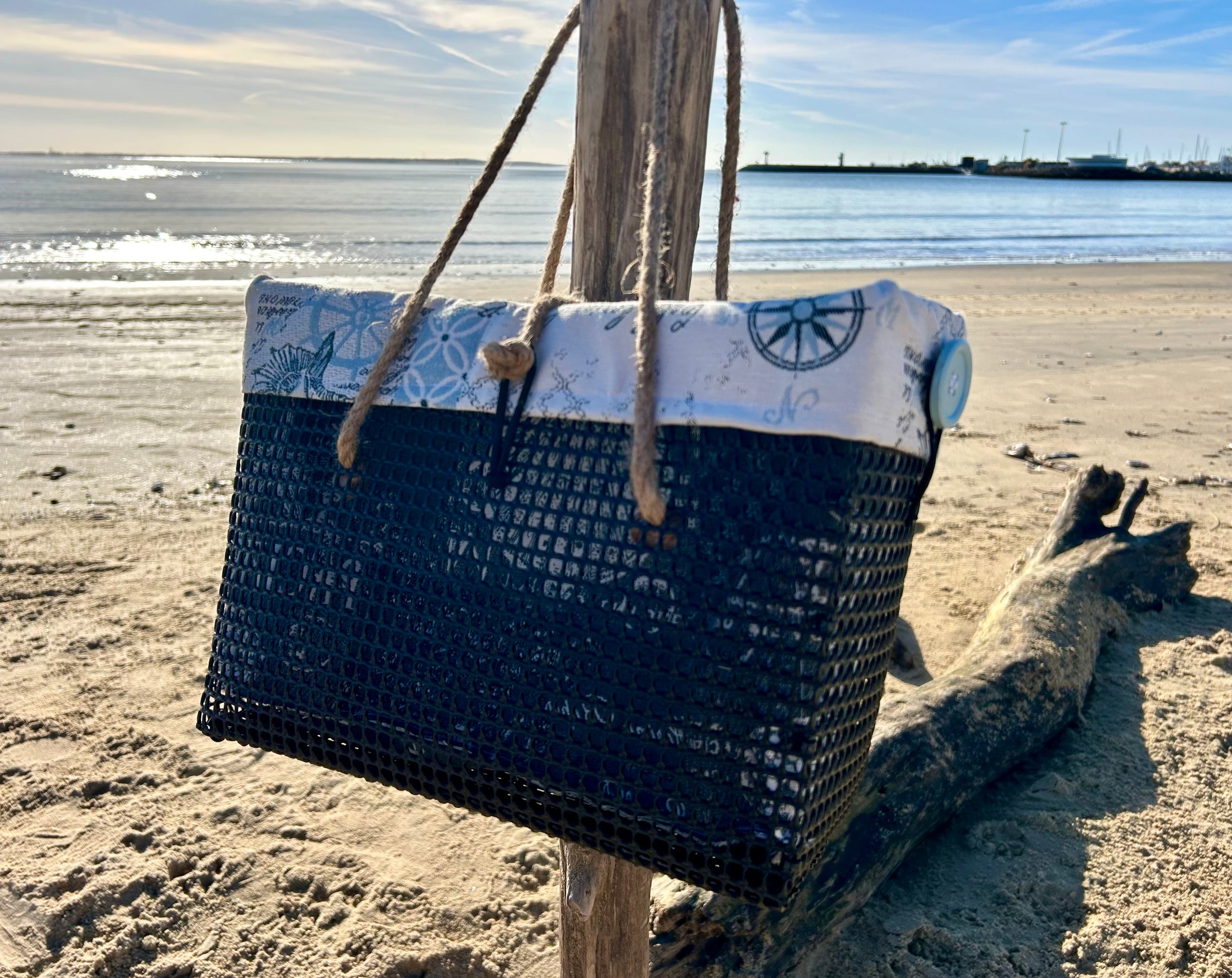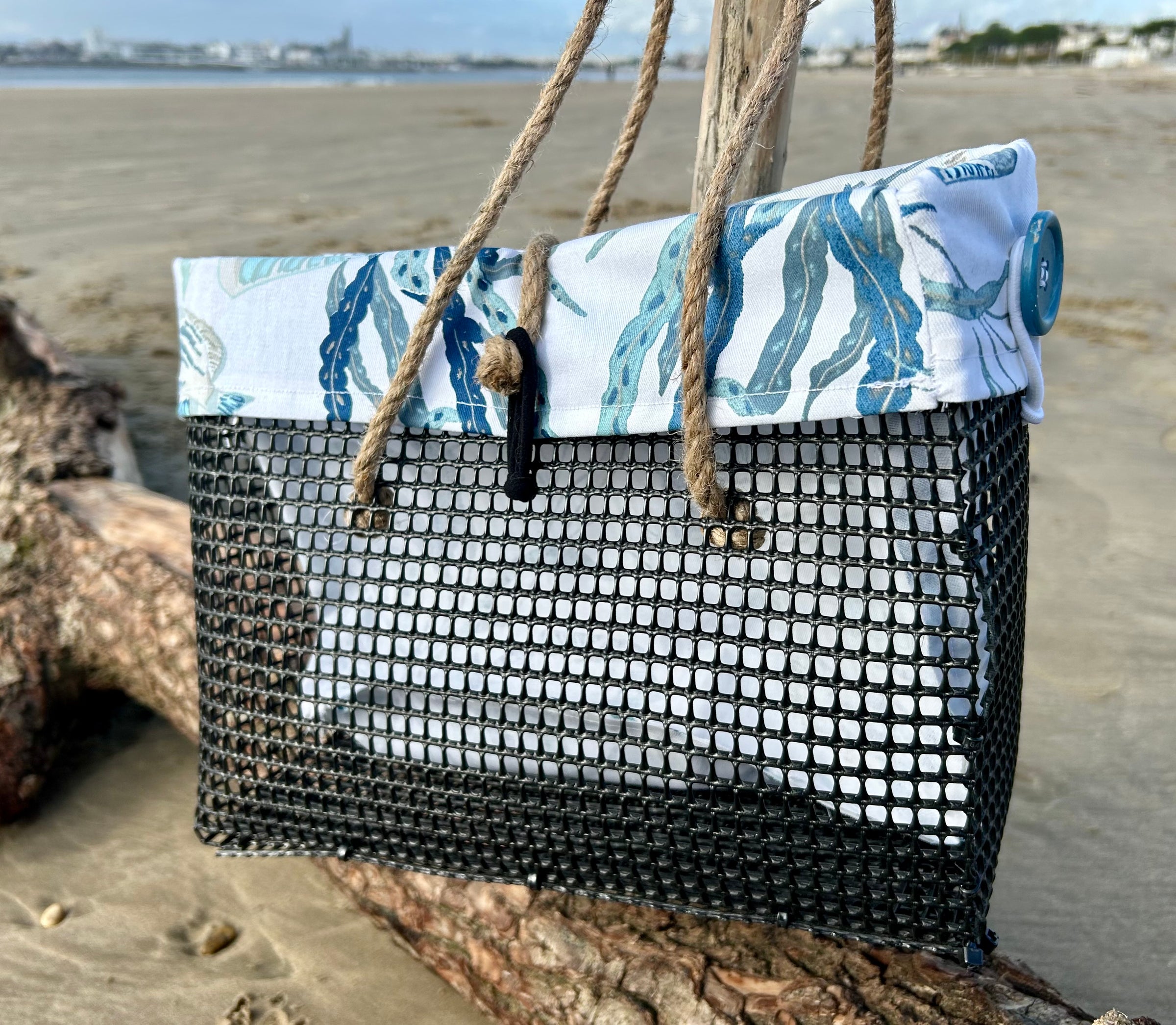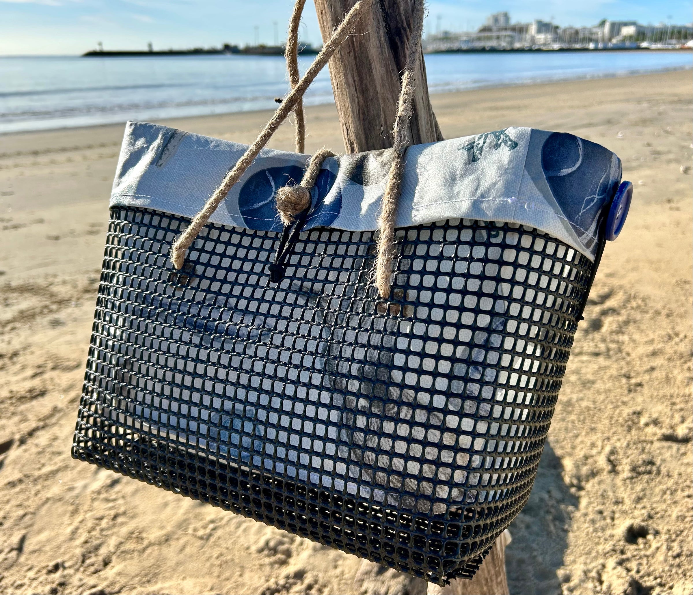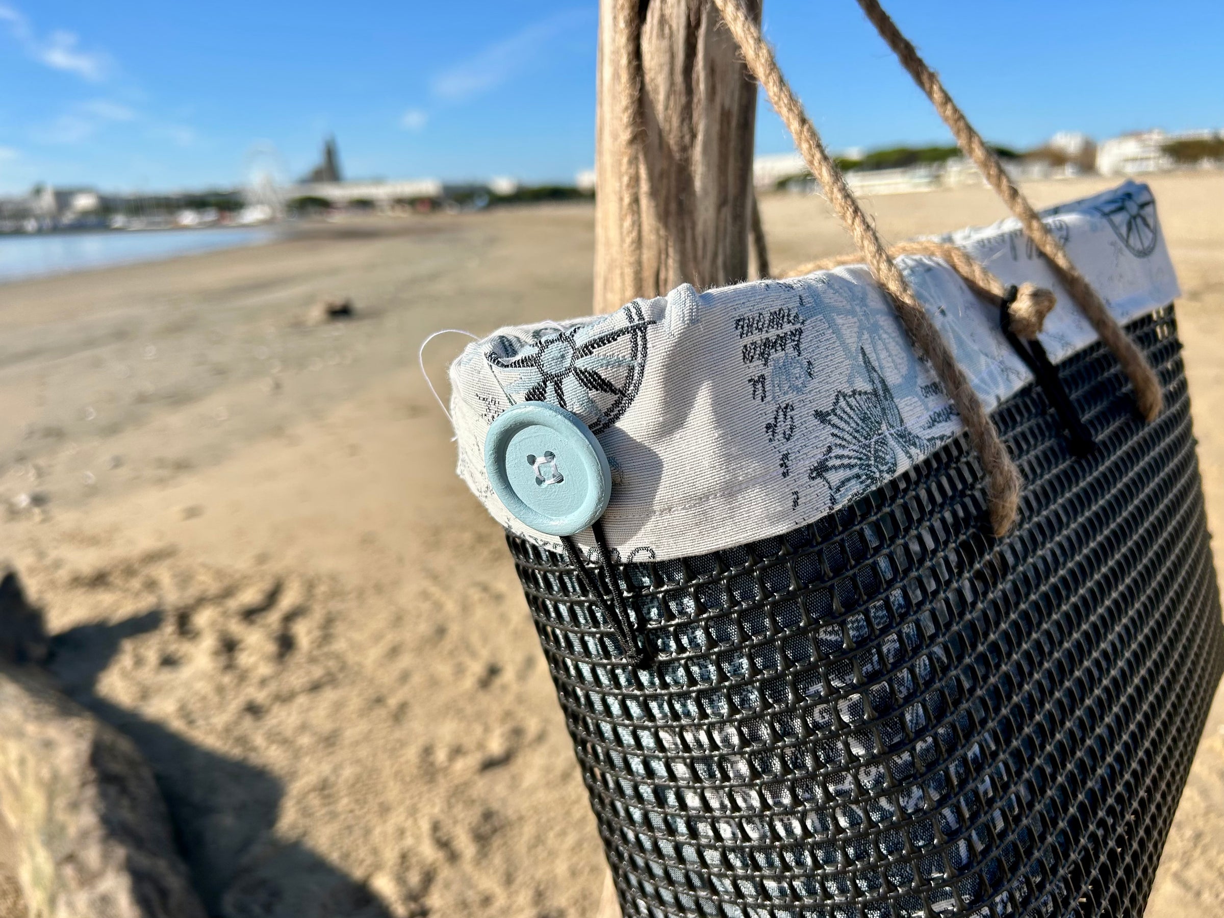 - Matériaux : poche ostréicole recyclée & corde marine naturelle