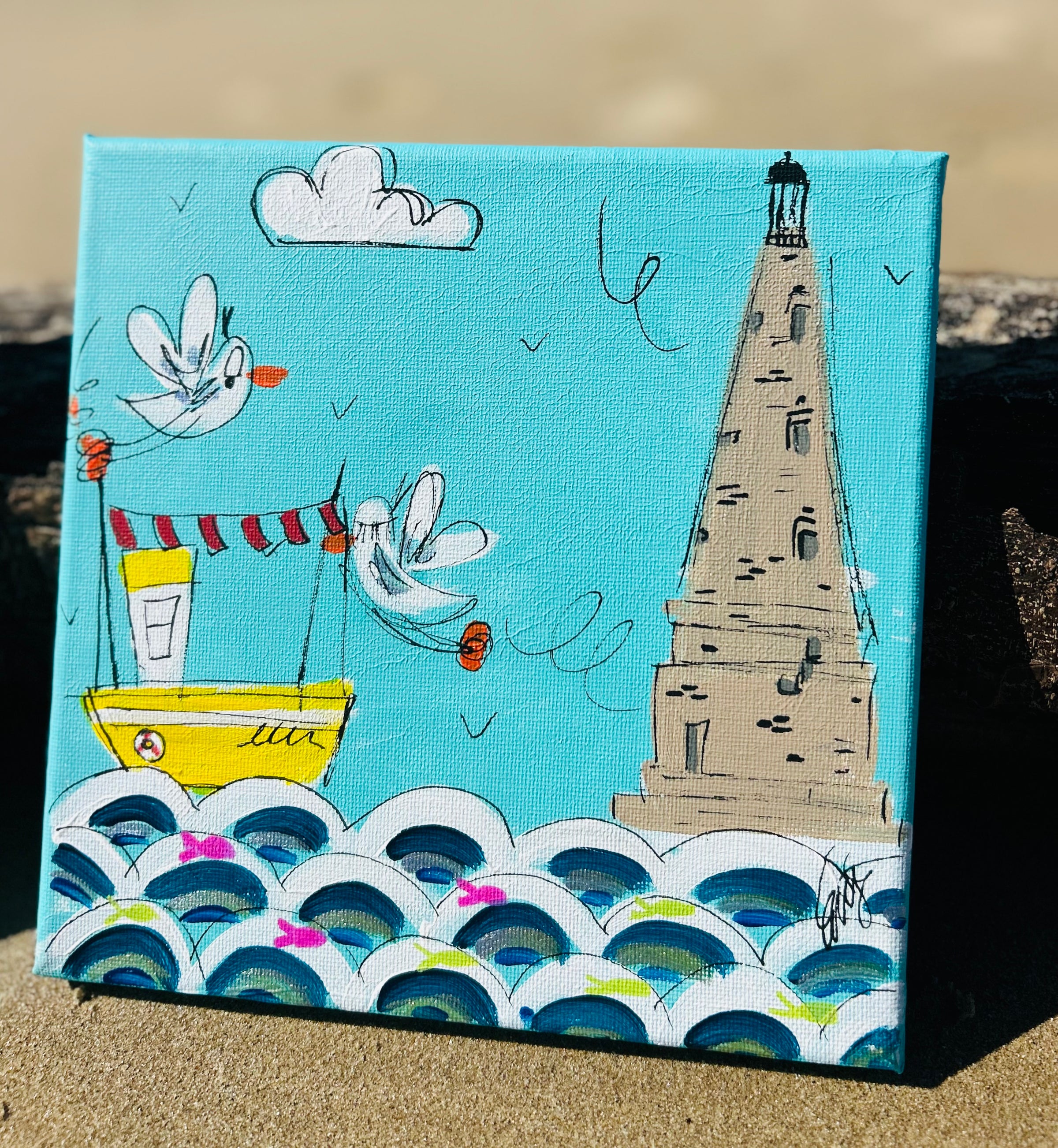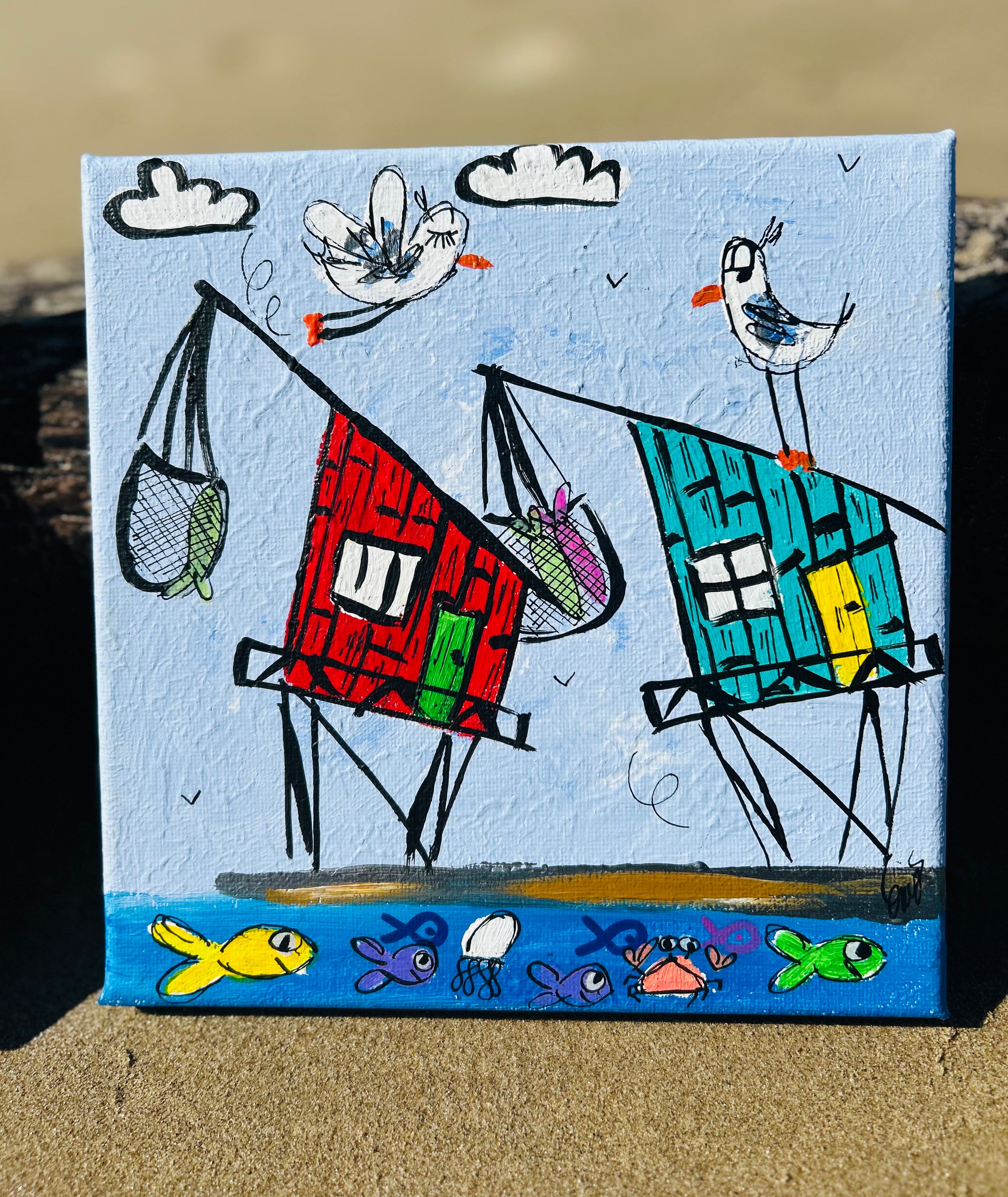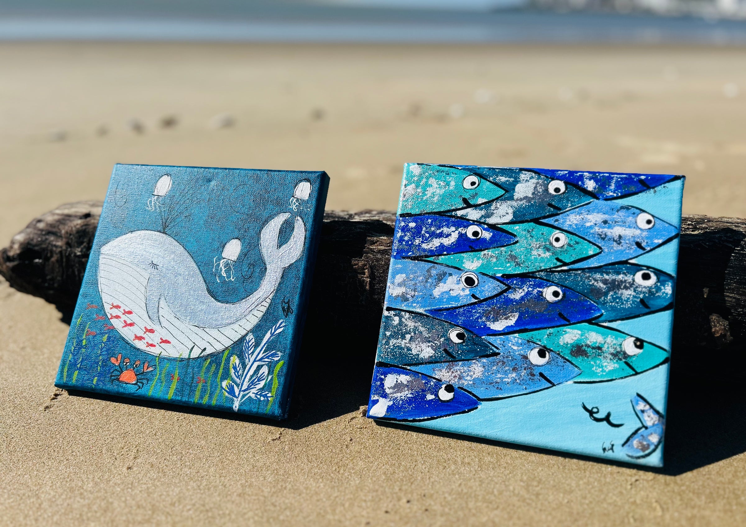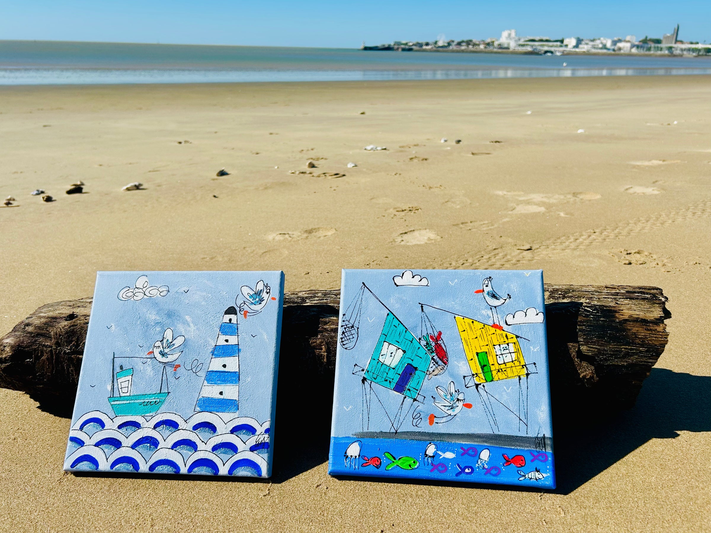 Ses petites toiles, aux motifs naïfs et colorés, trouveront naturellement leur place dans une chambre d'enfant pour créer un espace rempli de joie et de vitalité pour les plus petits.