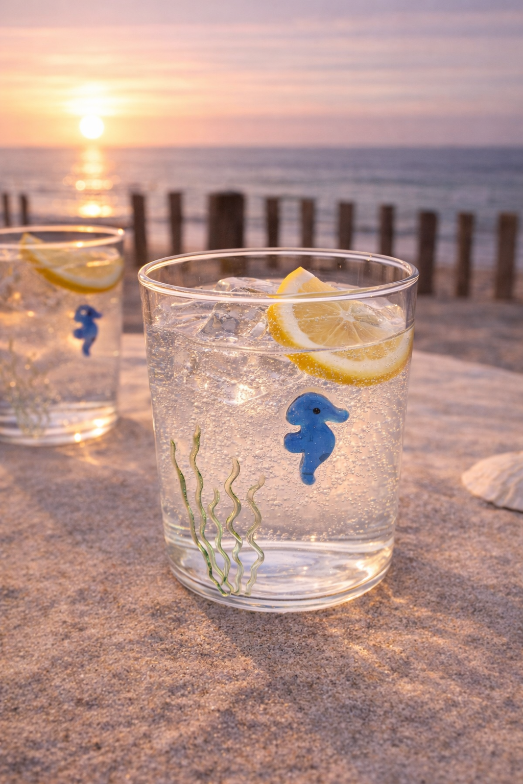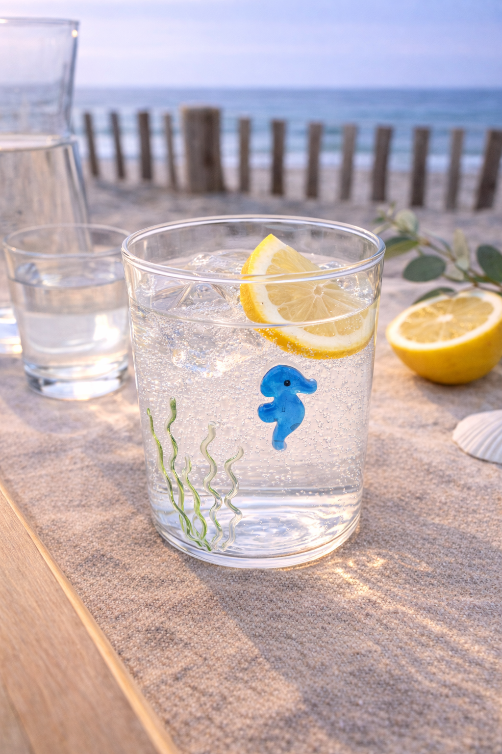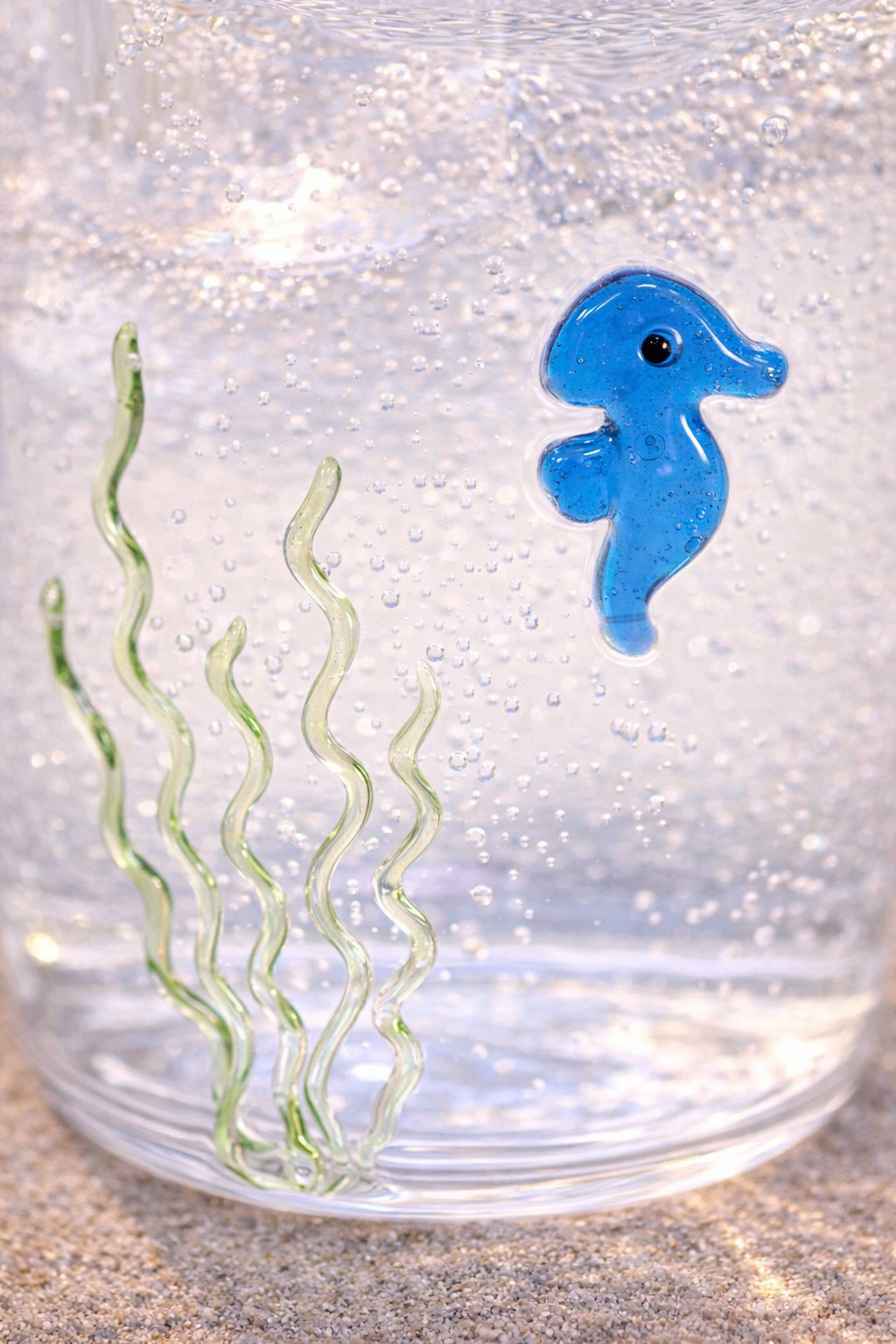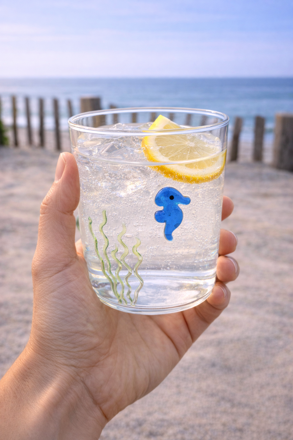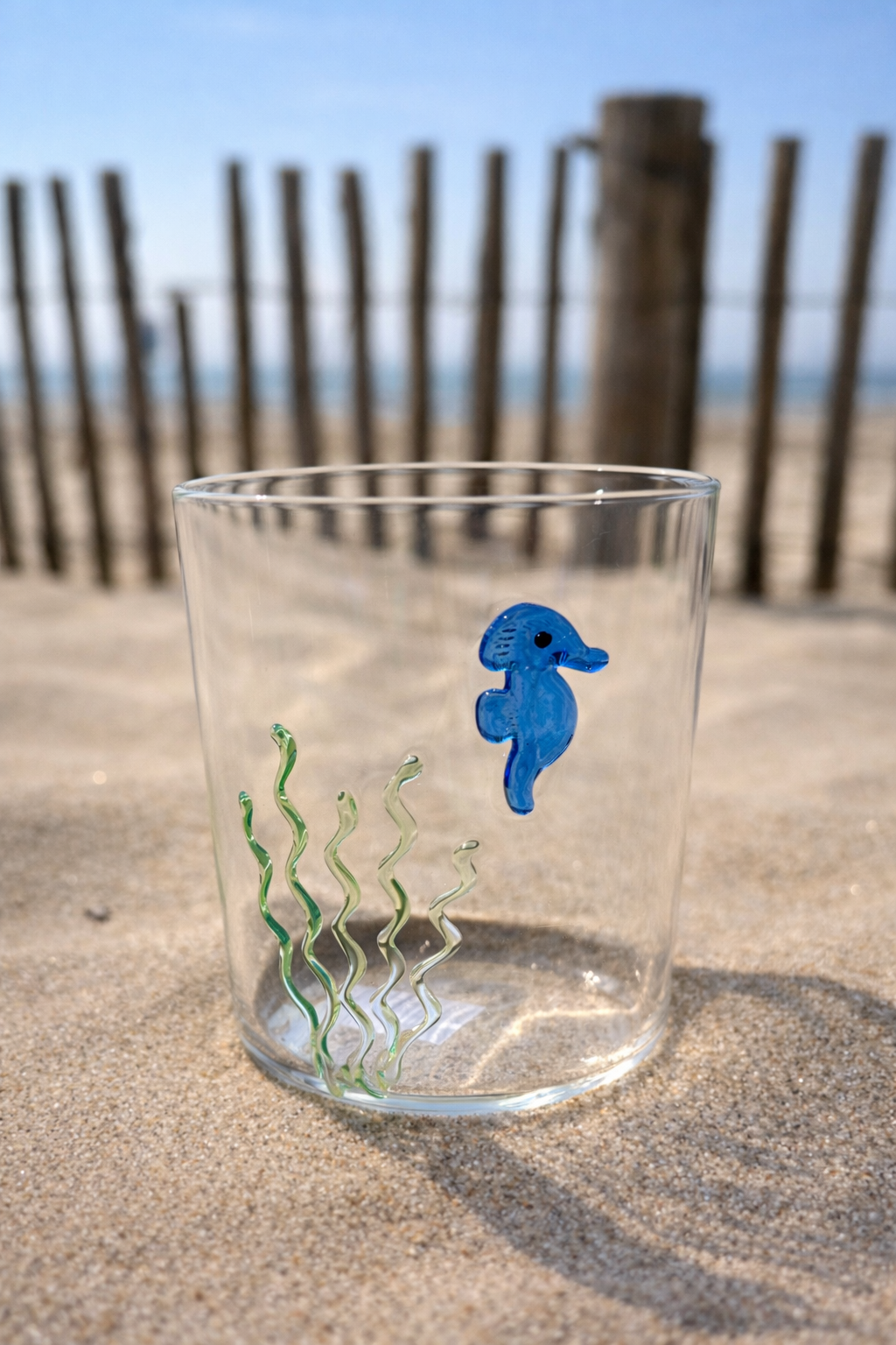 Apportez une élégante touche marine à votre table avec ce gobelet en verre borosilicate décoré d’un hippocampe en verre coloré. À la fois raffiné et original, il évoque instantanément l’univers du bord de mer chic.