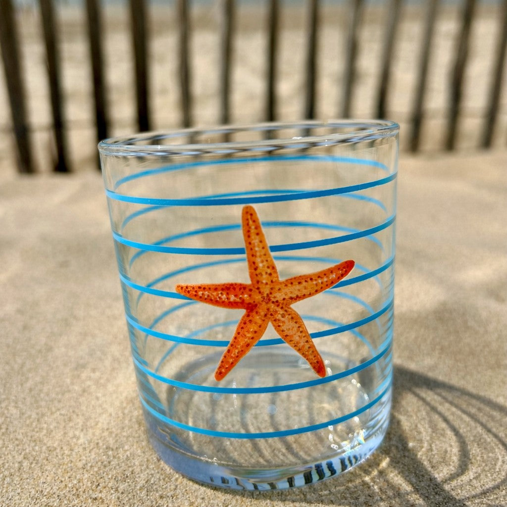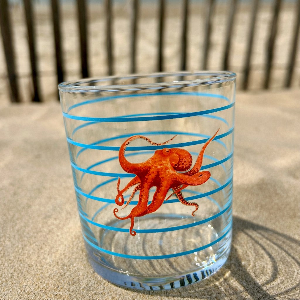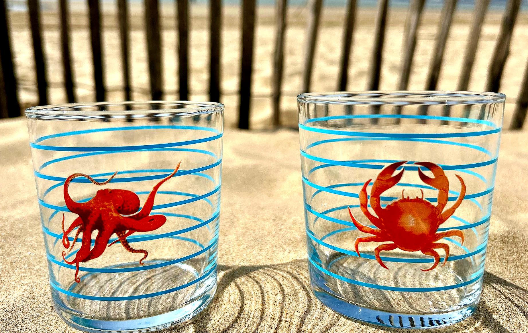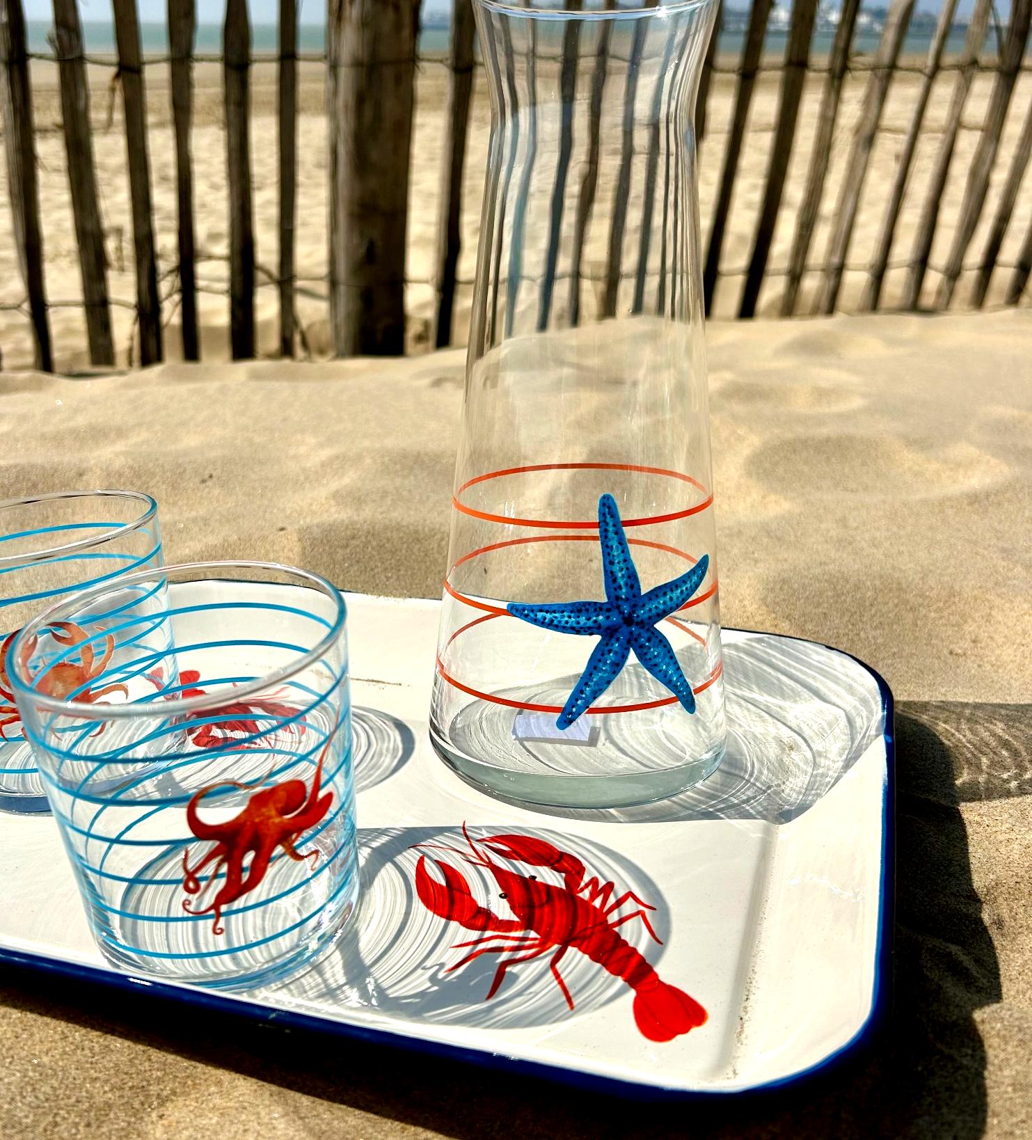 Chaque verre est sublimé par une illustration marine (étoile de mer, crabe, homard et poulpe), pour une table estivale pleine de charme et de fraîcheur.