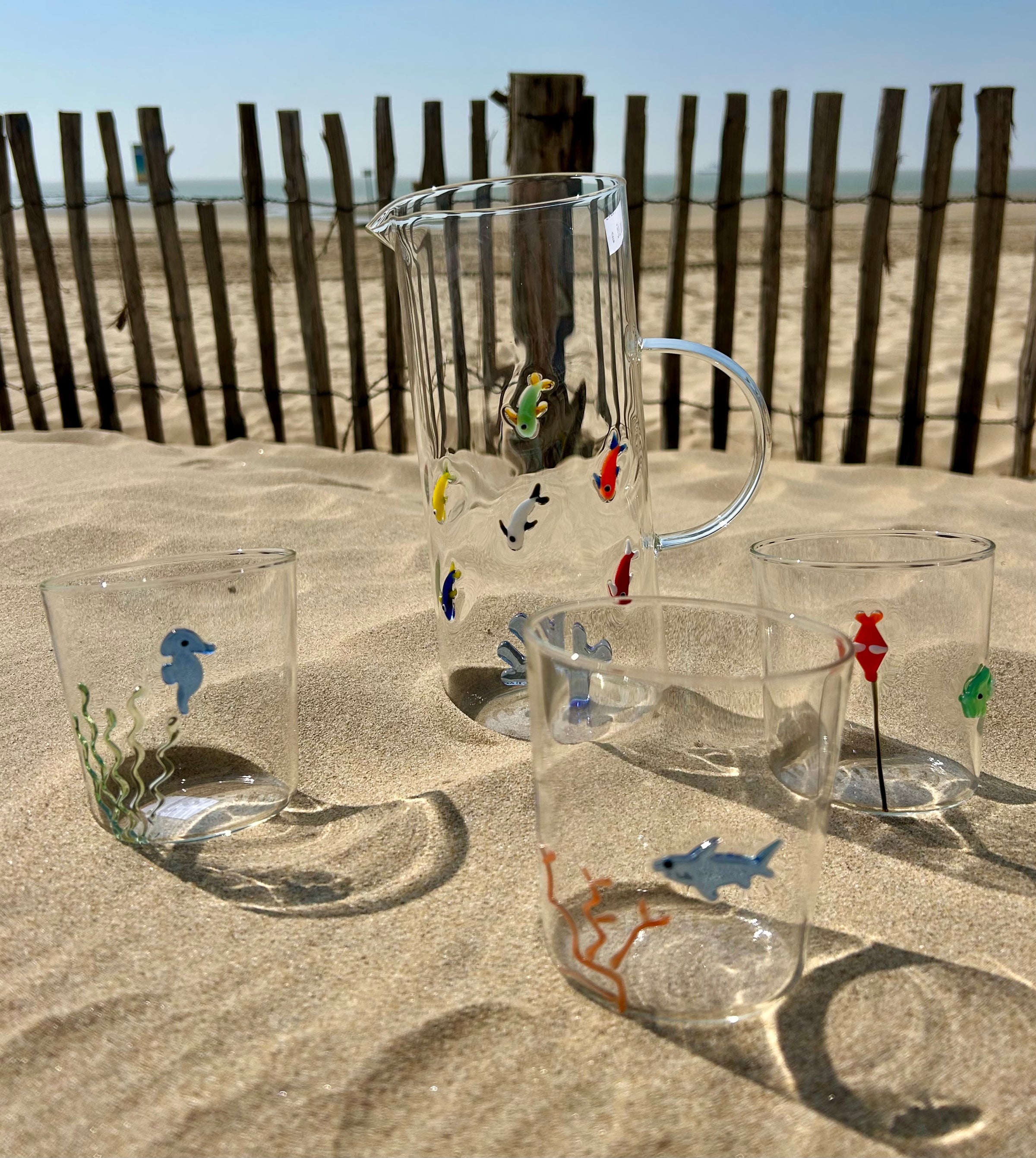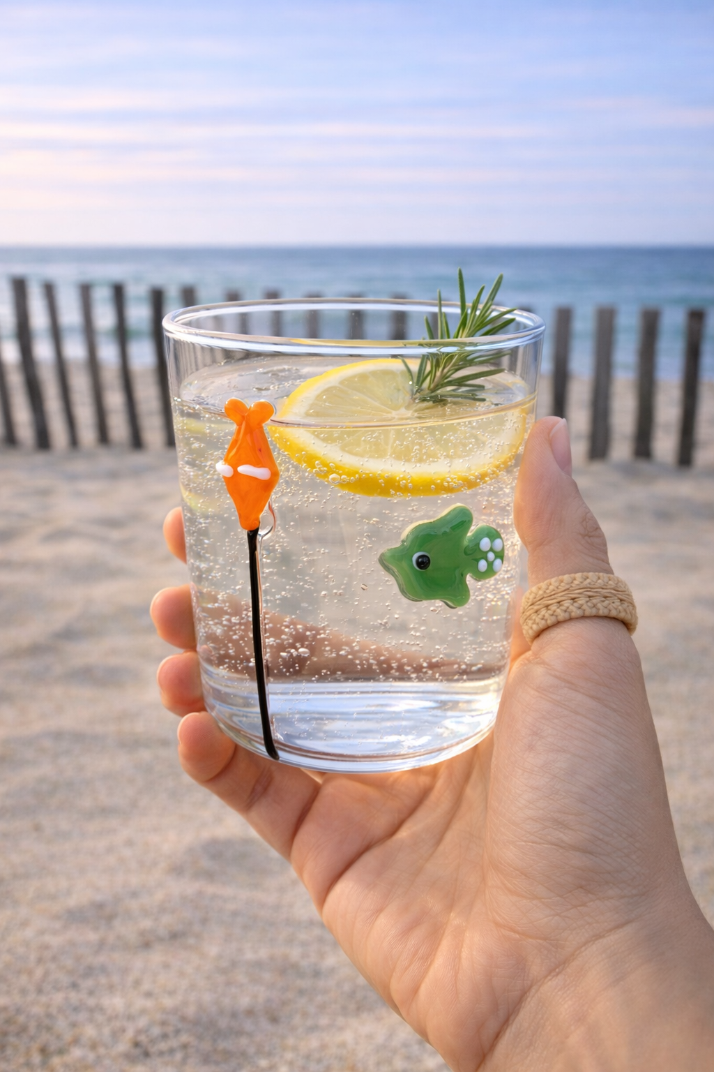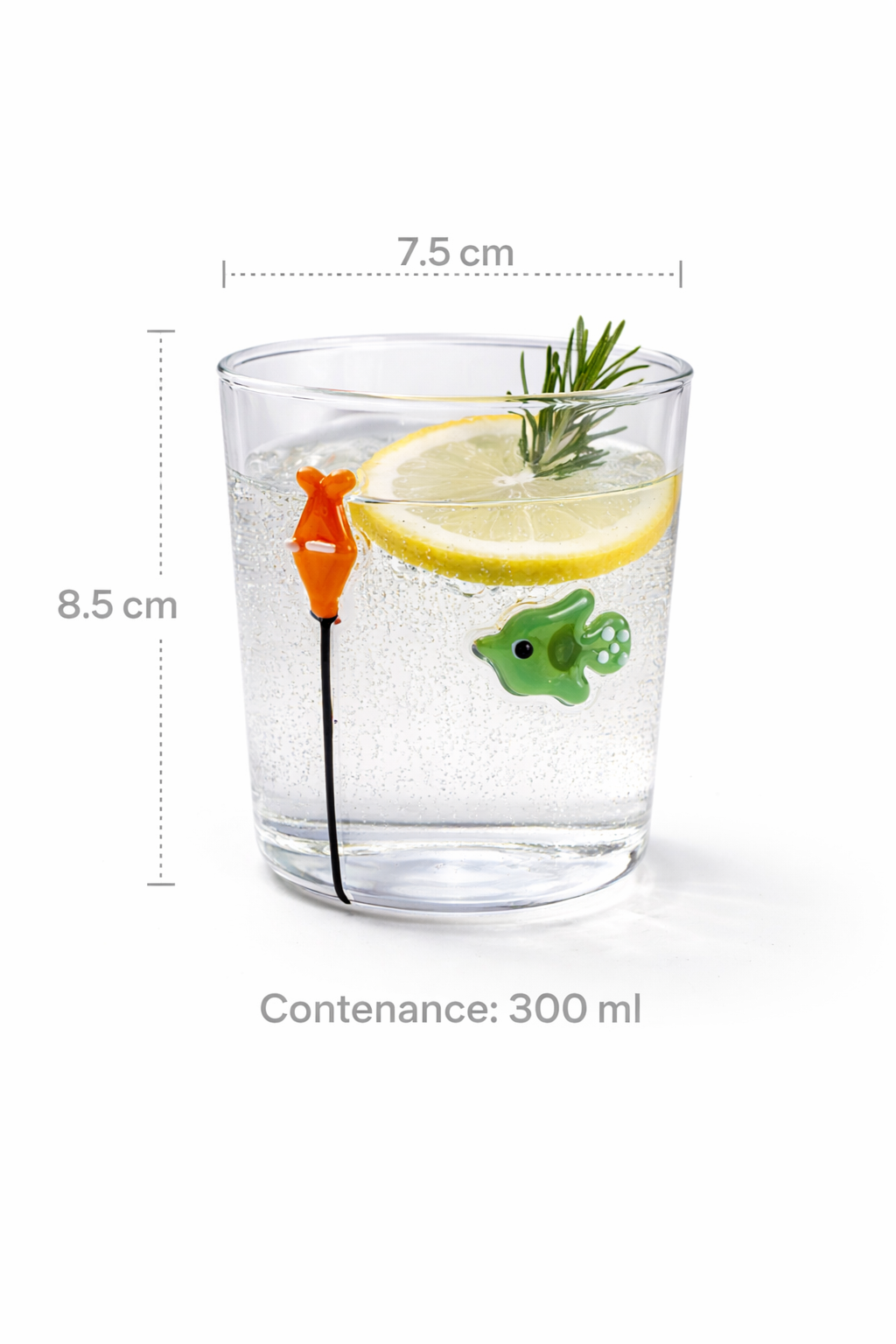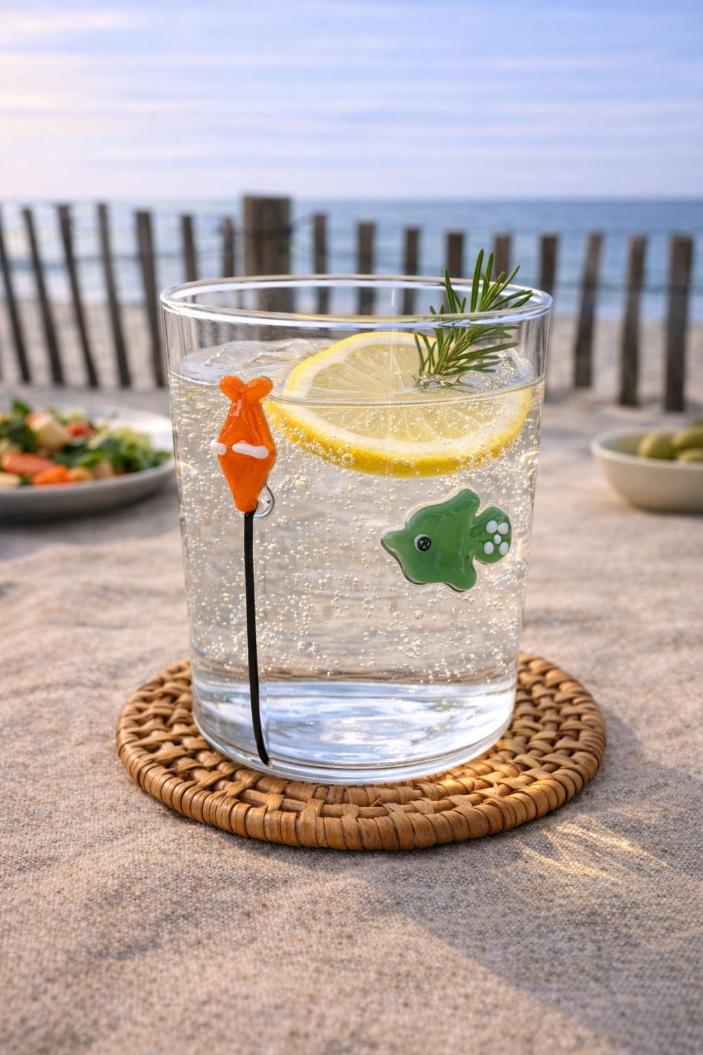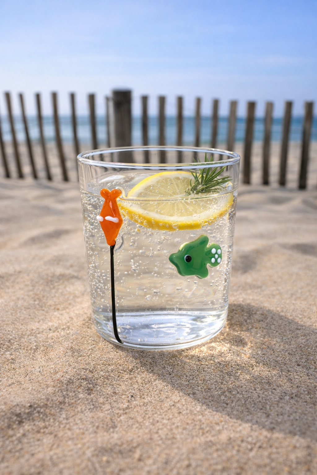 Apportez une élégante touche marine à votre table avec ce gobelet en verre borosilicate décoré d’un poisson avec bouée en verre coloré. À la fois raffiné et original, il évoque instantanément l’univers du bord de mer chic.