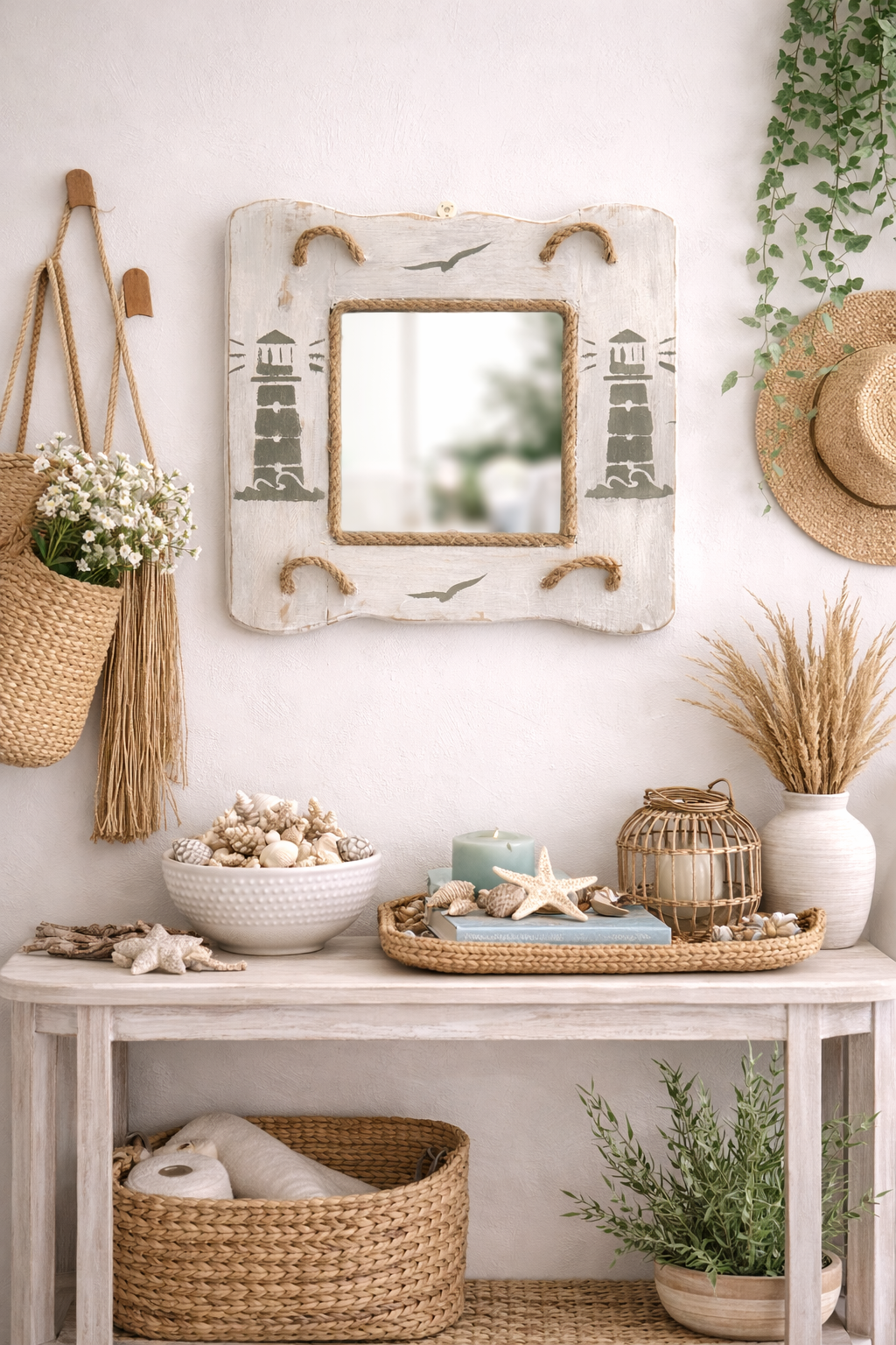 ✨ En composition murale avec fibres naturelles, paniers et objets marins