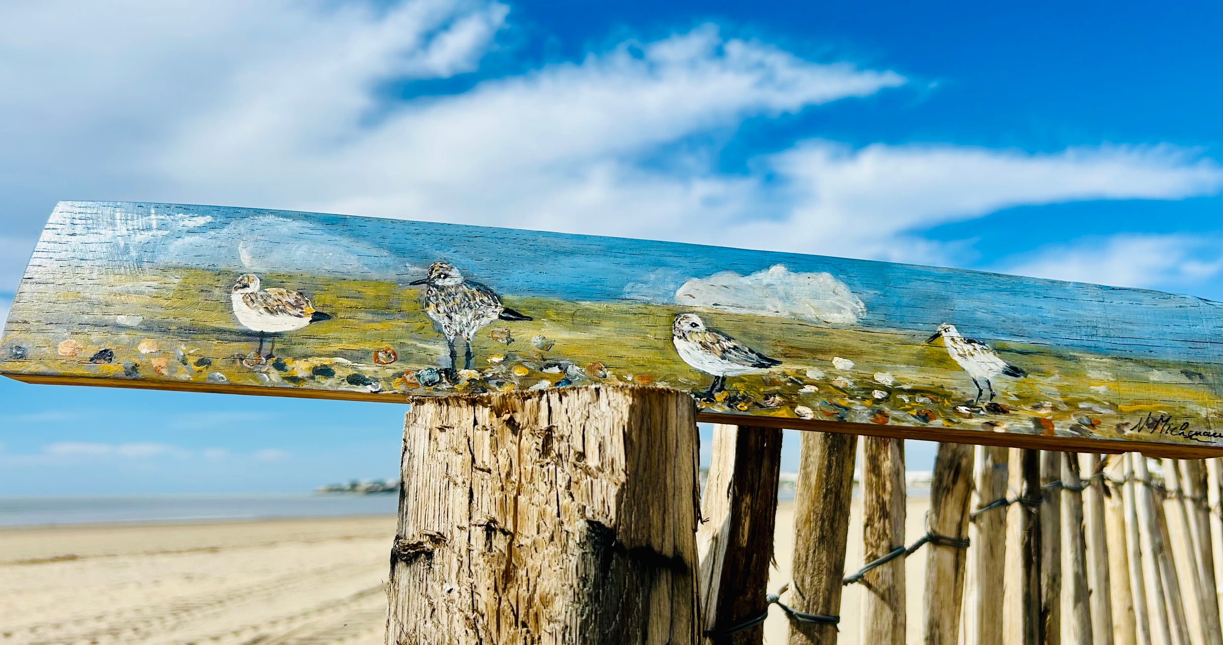 Peinture acrylique sur une demi douelle, signée par l'artiste peintre Nicole Michenaud