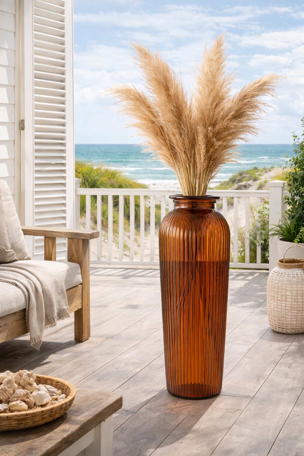 Placez-le au sol avec quelques tiges de pampas ou d’eucalyptus pour créer une composition élégante et naturelle.
